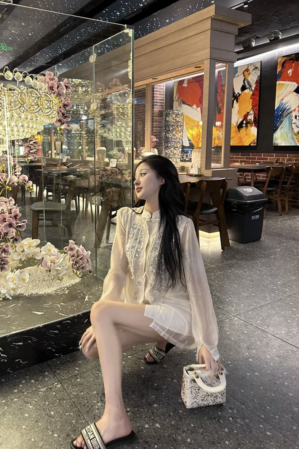 網紅重工新中式國風旗袍襯衫女設計感小眾春裝新款洋派小衫上衣潮