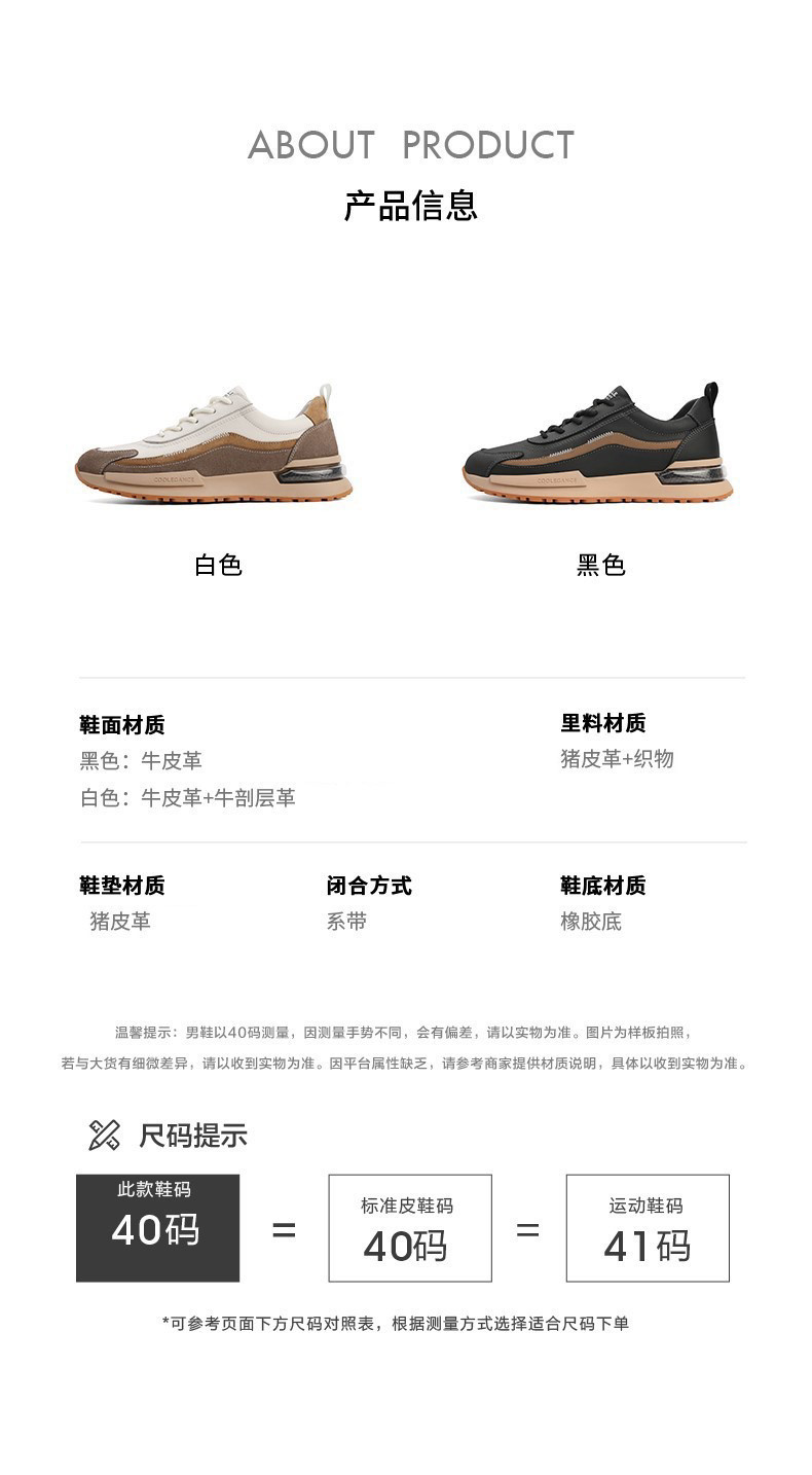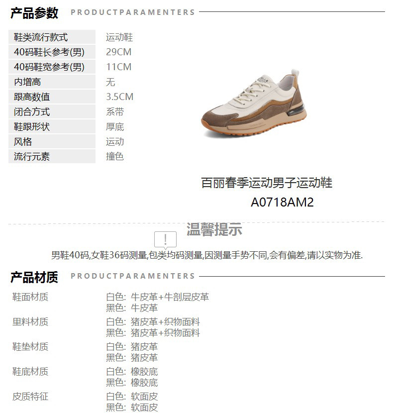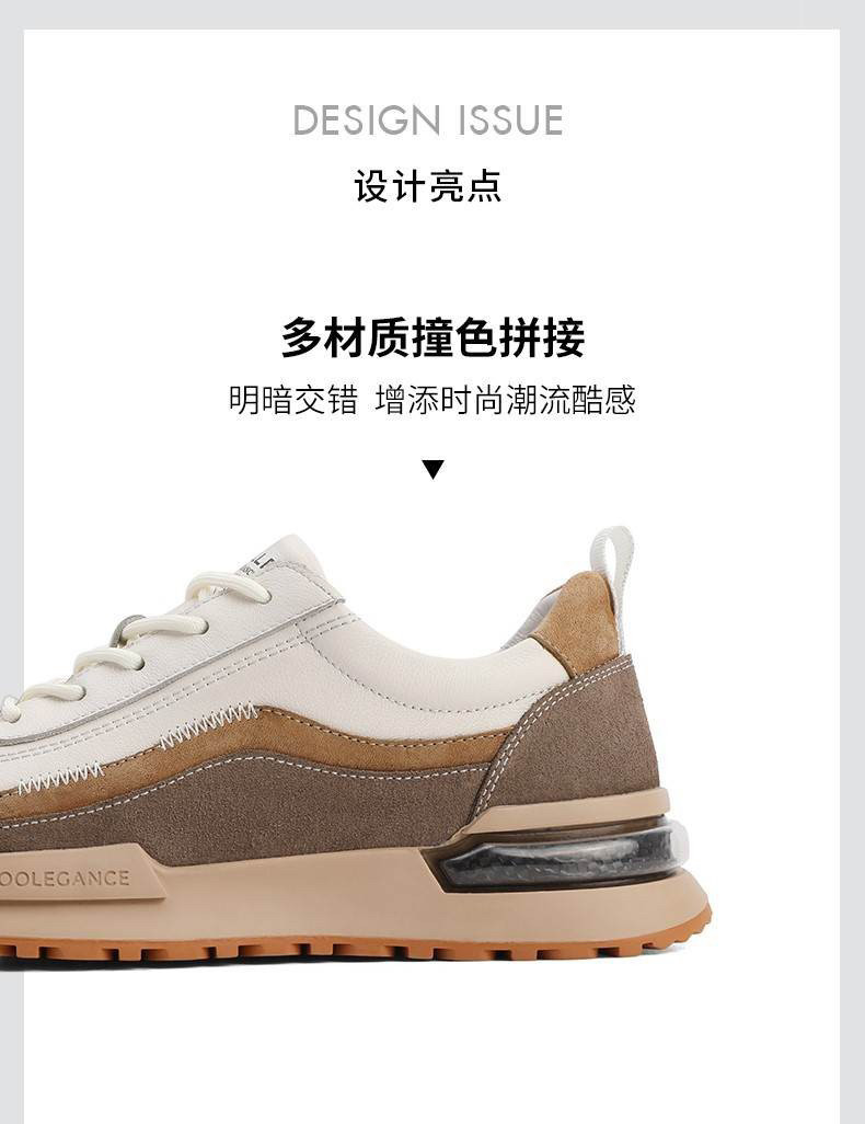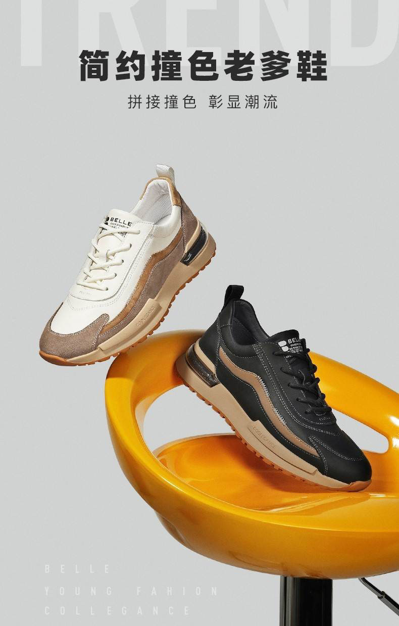 百麗男鞋春秋新款牛皮厚底休閒鞋老爹鞋時尚軟底運動鞋A0718AM2