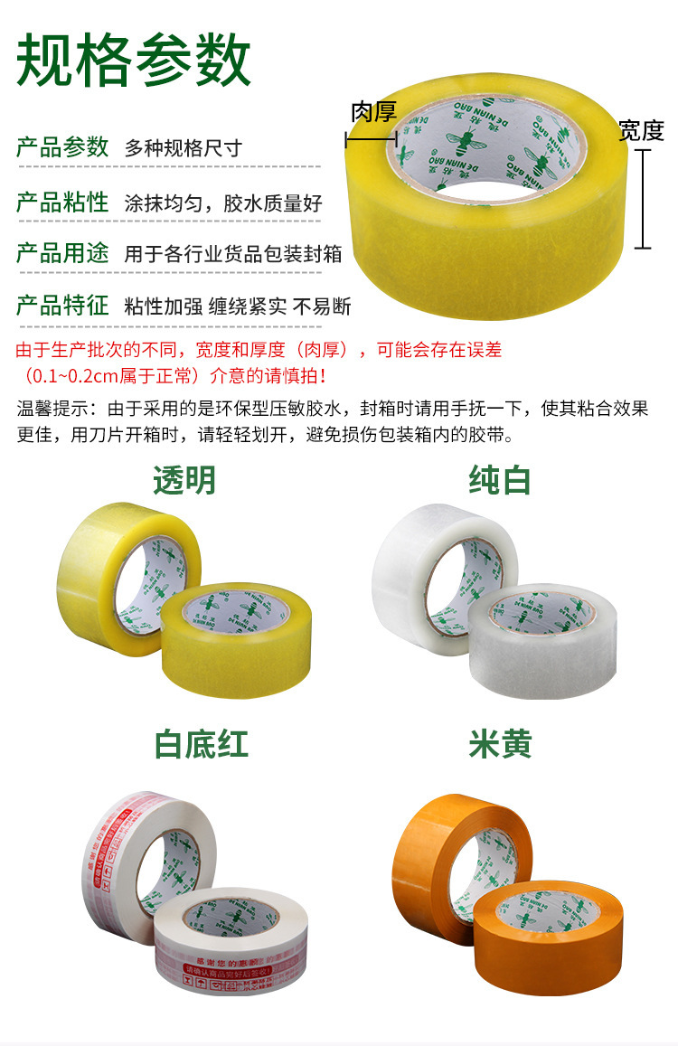 规格 宽45*1.05CM厚长50(透明)整箱144卷,宽45*1.2CM厚长60(透明)整箱144卷,宽45*1.5CM厚长75(透明)整箱144卷,宽45*1.8CM厚长100(透明)整箱120卷,宽45*2.3CM厚长130(透明)整箱90卷,宽45*0.85CM厚长38整箱180卷,宽45*3.2CM厚长220(透明)整箱72卷,宽42*3.2CM厚长220(透明)整箱72卷,宽45*3.8CM厚长300(透明)整箱60卷,宽45*4.1CM厚长350(透明)整箱48卷,宽42*3.5CM厚长260(透明)整箱36卷,宽55*1.8CM厚长100(透明)整箱100卷,宽55*2.3CM厚长130(透明)整箱85卷,宽55*2.3CM厚长130(米黄)整箱85卷,宽55*3.0CM厚长190(透明)整箱60卷,宽55*3.0CM厚长190(米黄)整箱60卷,宽45*3.2CM厚长220(米黄)整箱72卷,宽45*2.8CM厚长170(透明)整箱80卷