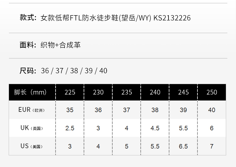 凱樂石防水徒步鞋男女戶外運動低幫FLT防水登山鞋 望嶽 KS2242333