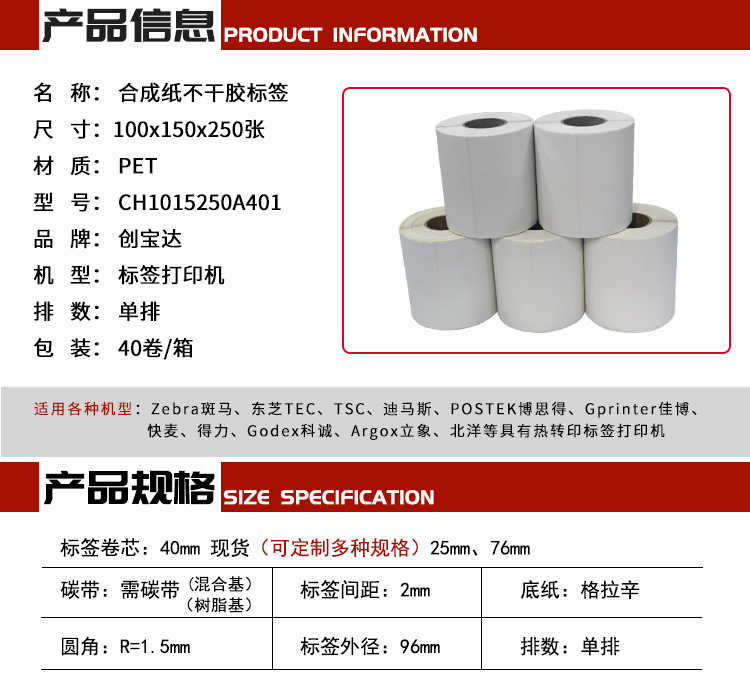型号 合成纸不干胶