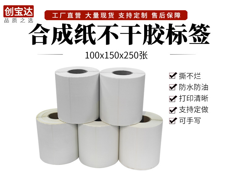 合成纸不干胶20-100x150x90x80x70防水标签 撕不烂 PET合成纸标签