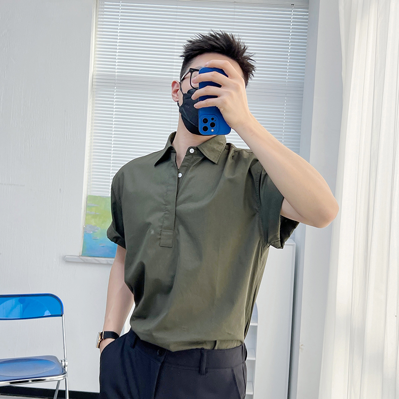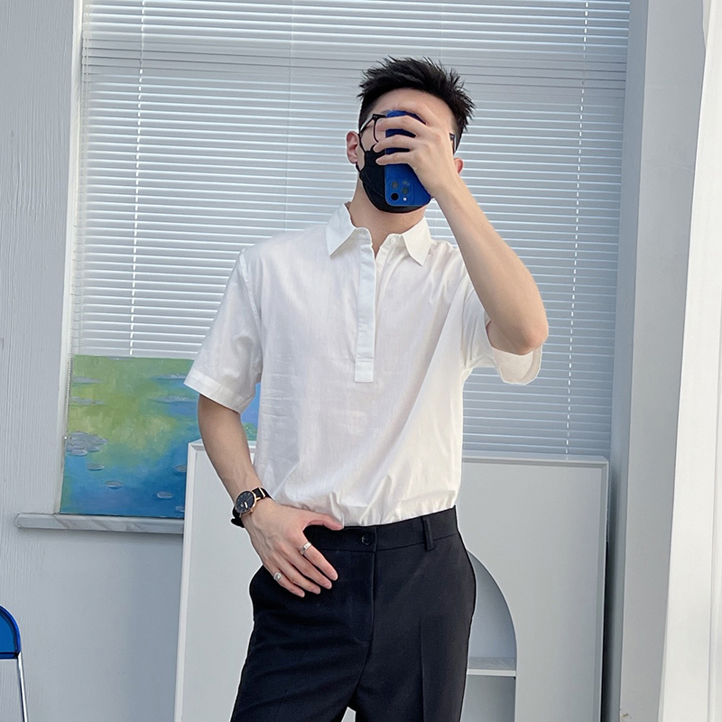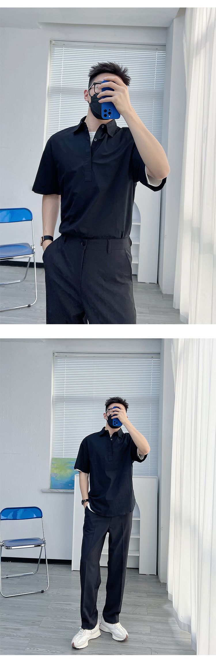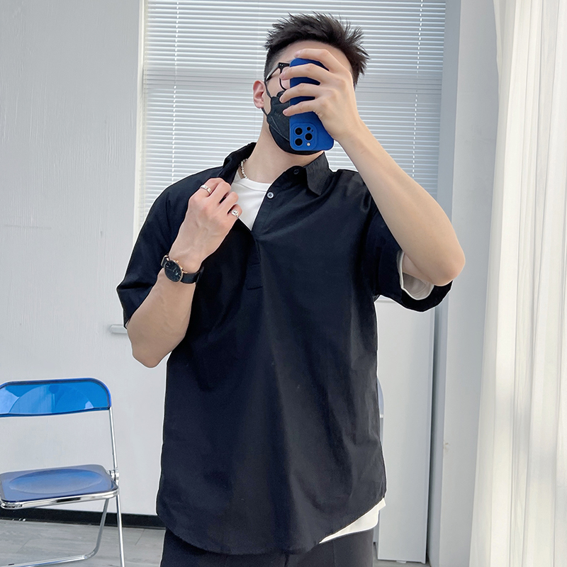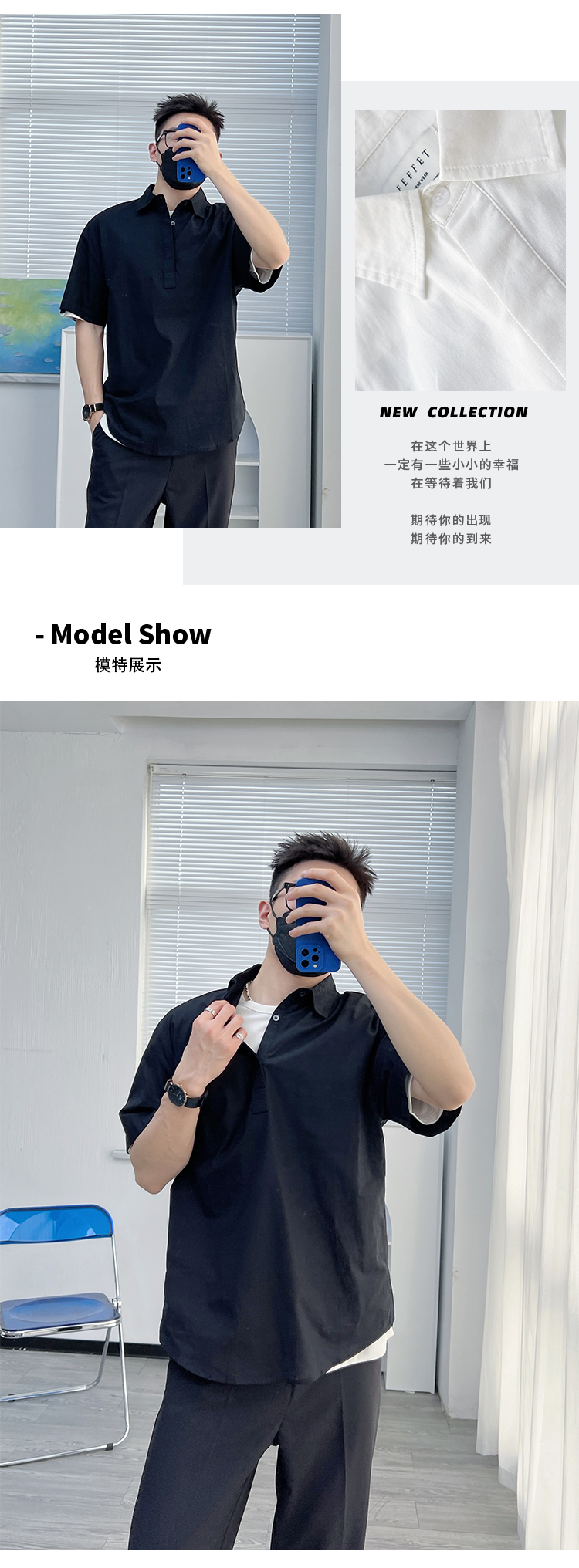 渣渣鹿 夏季潮牌短袖polo衫男士翻領薄款T恤寬鬆休閒氣質純色上衣
