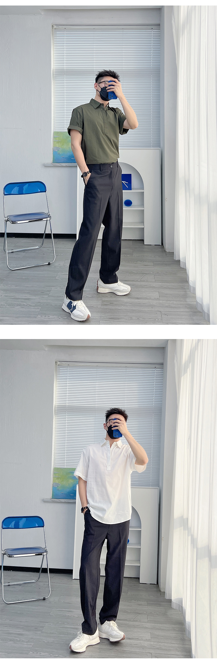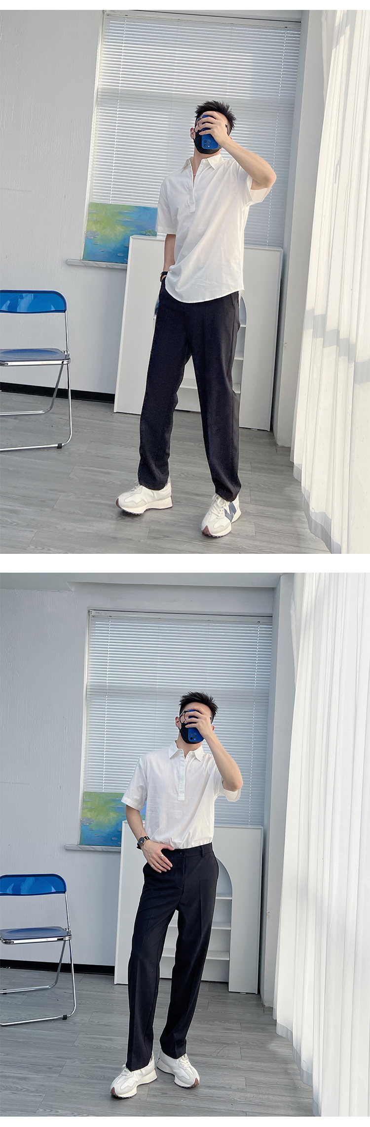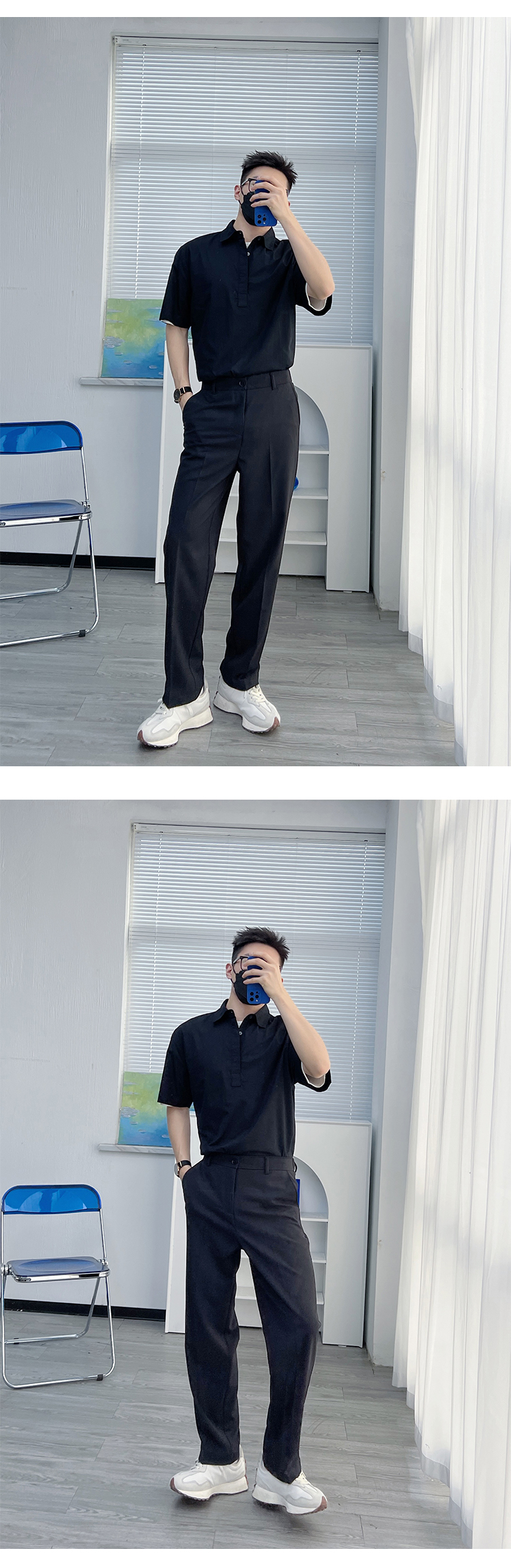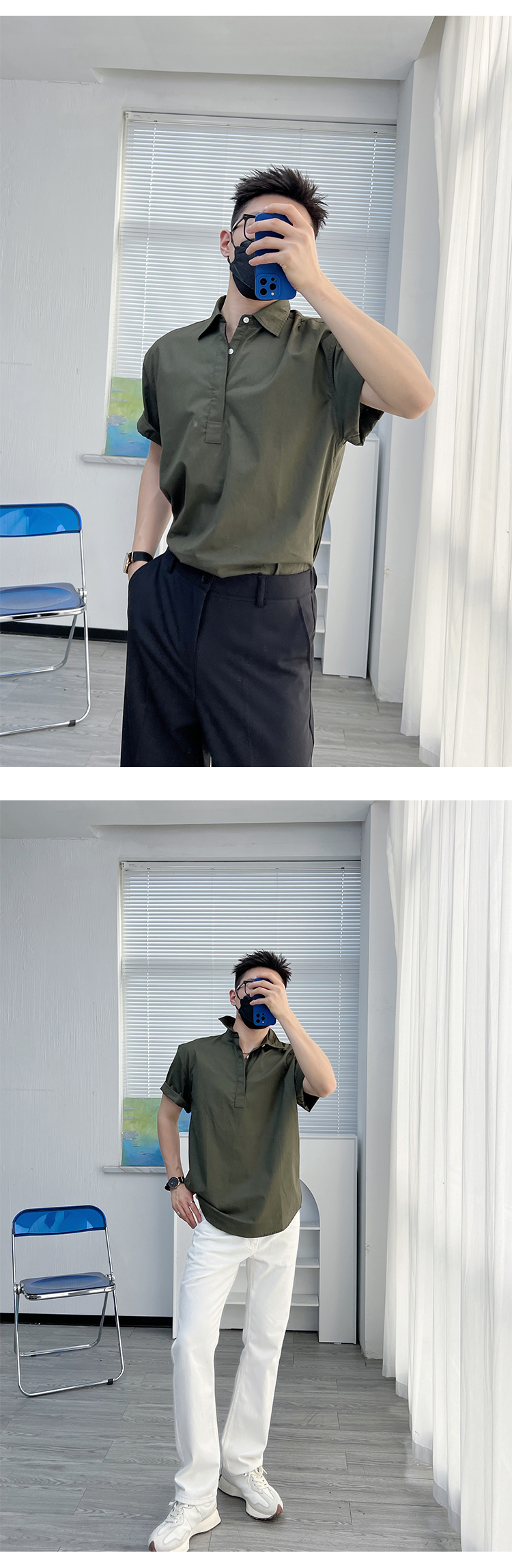 渣渣鹿 夏季潮牌短袖polo衫男士翻領薄款T恤寬鬆休閒氣質純色上衣