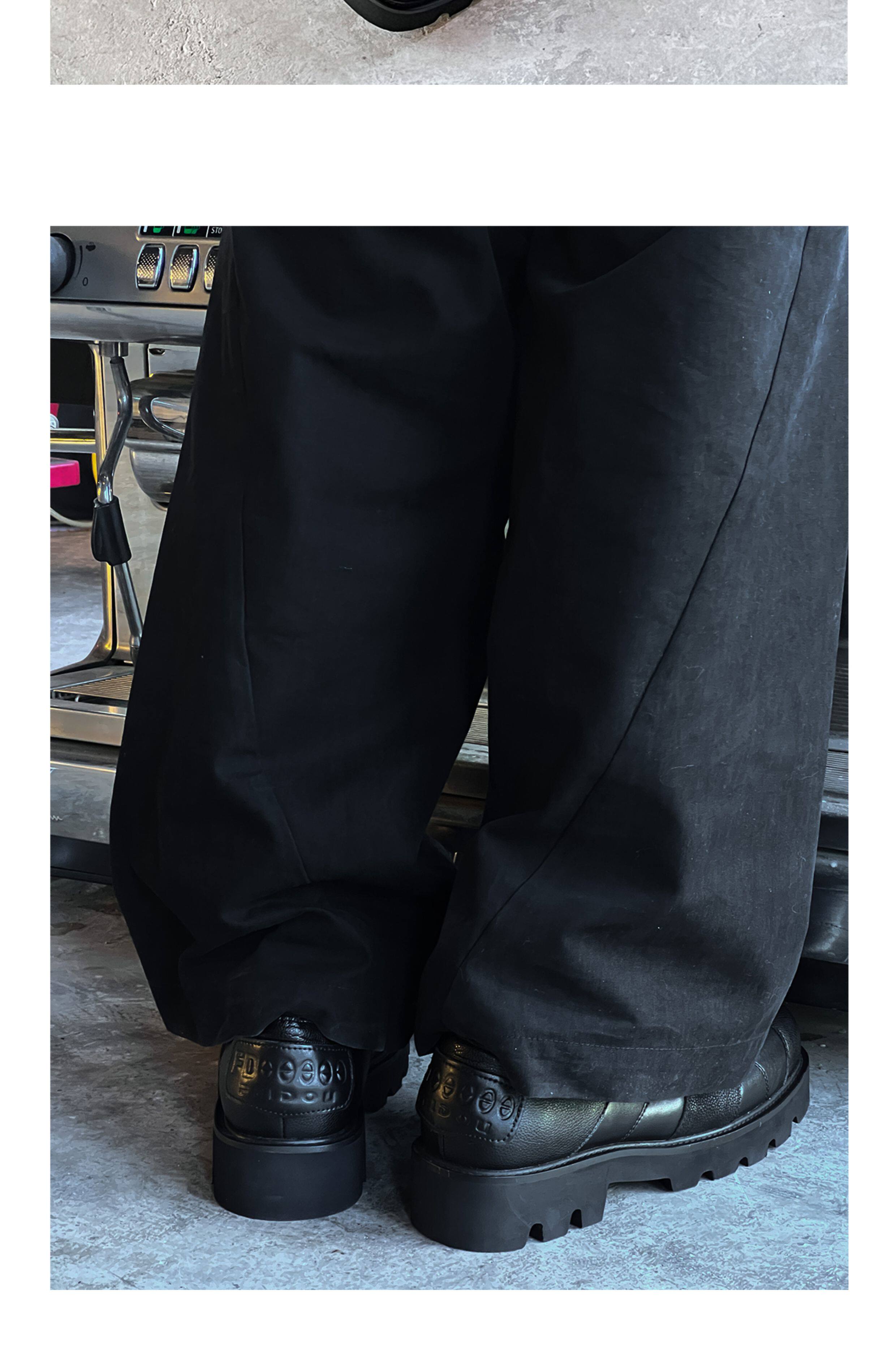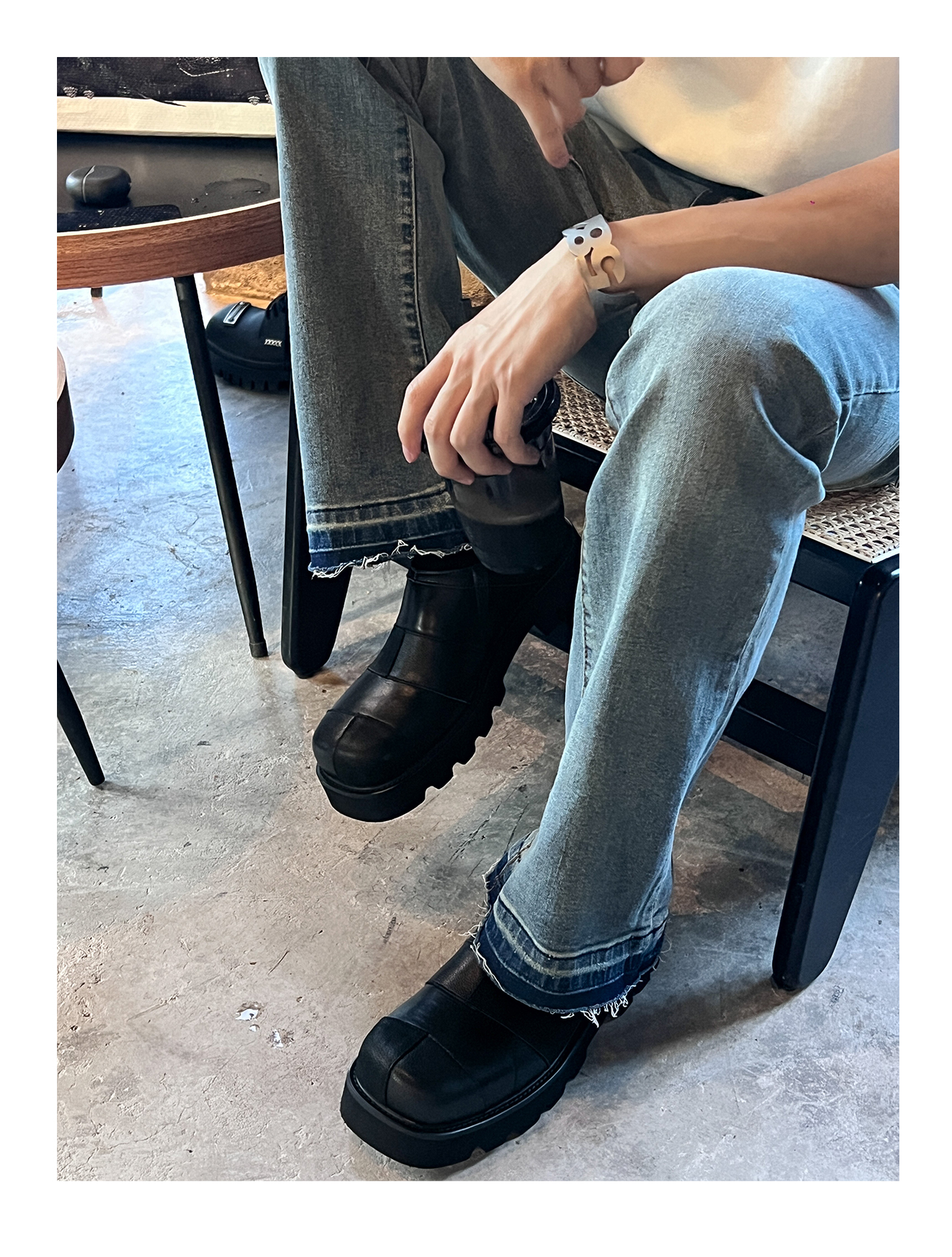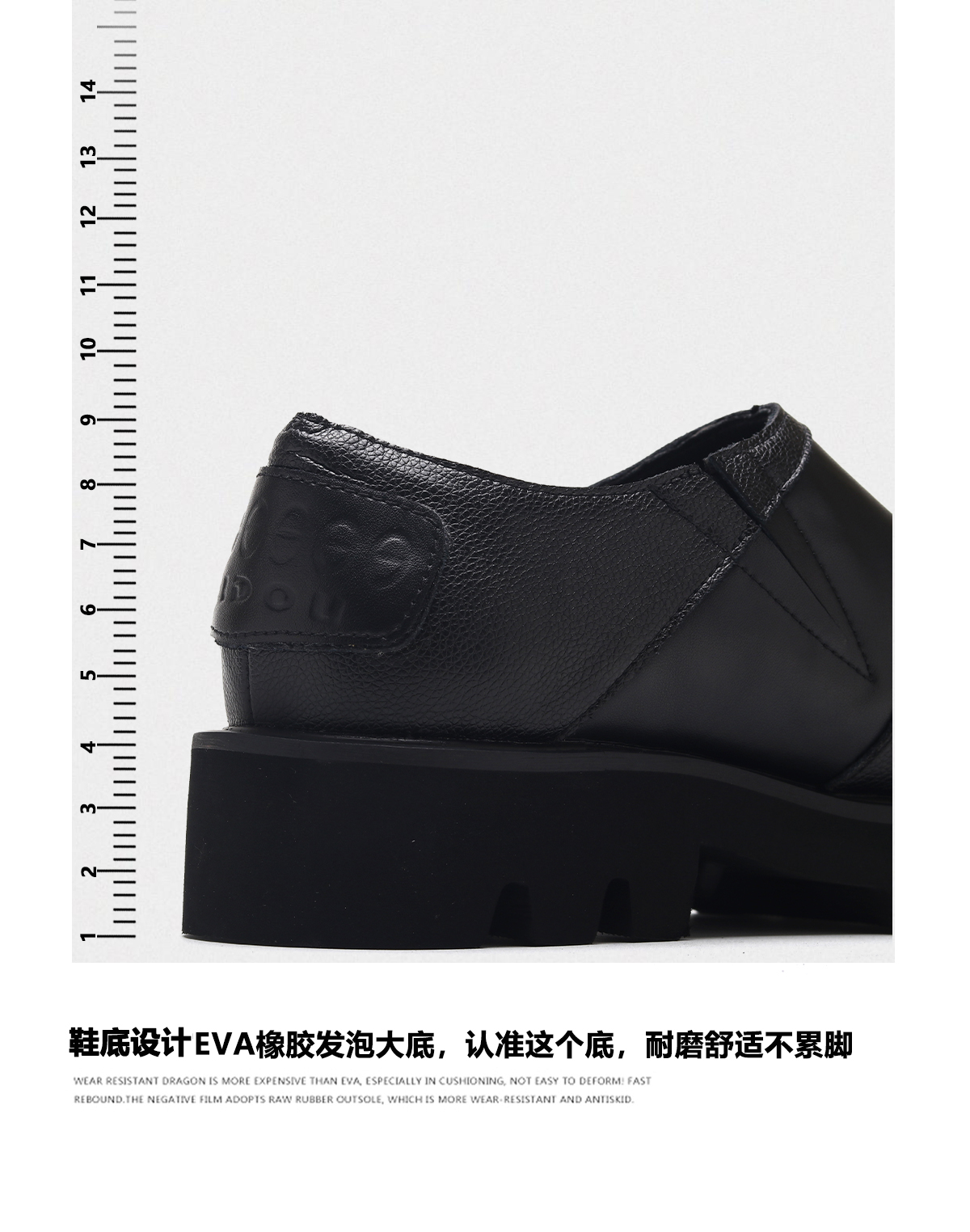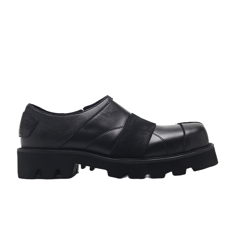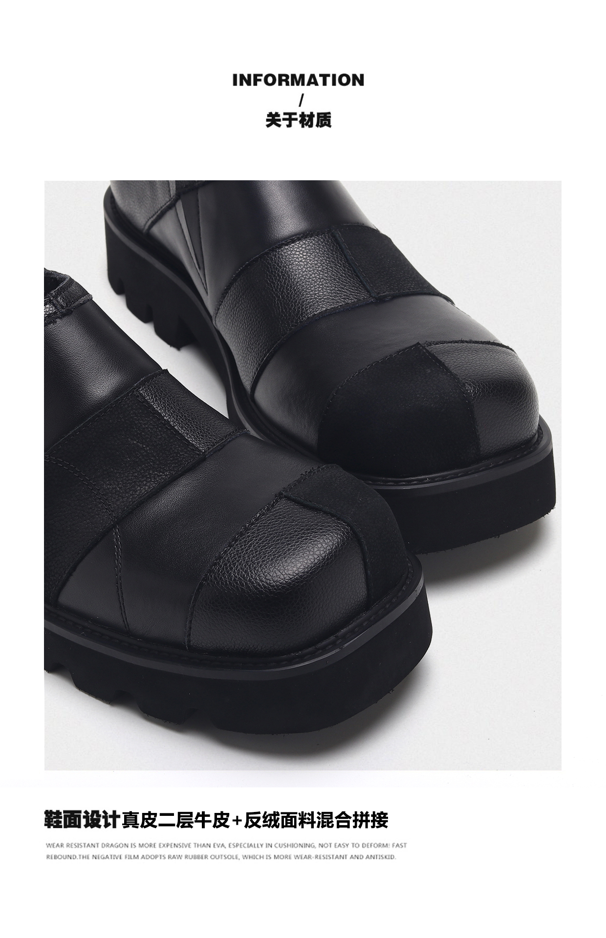 廢都潮品 厚底方頭德比皮鞋男小眾拼接縫製設計復古一腳蹬樂福鞋