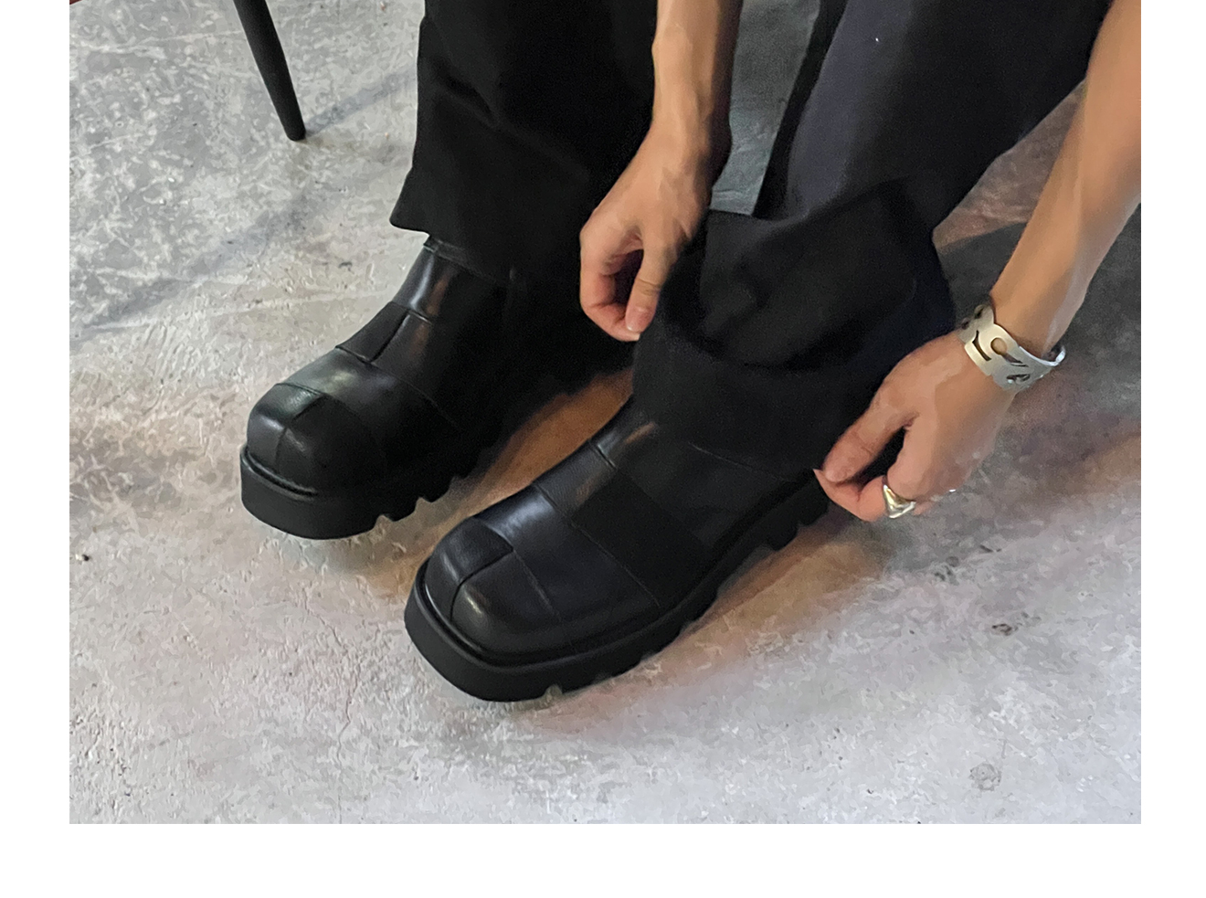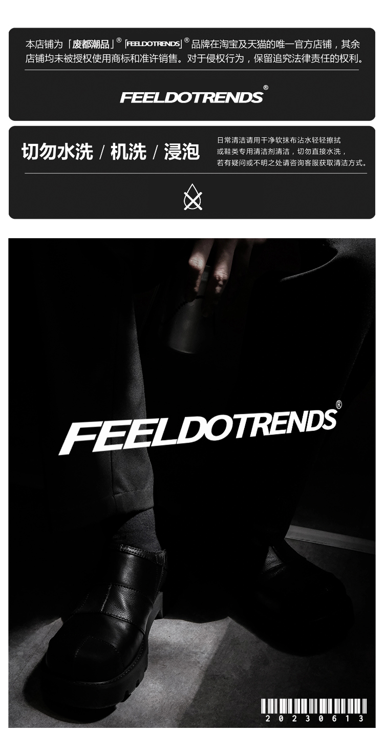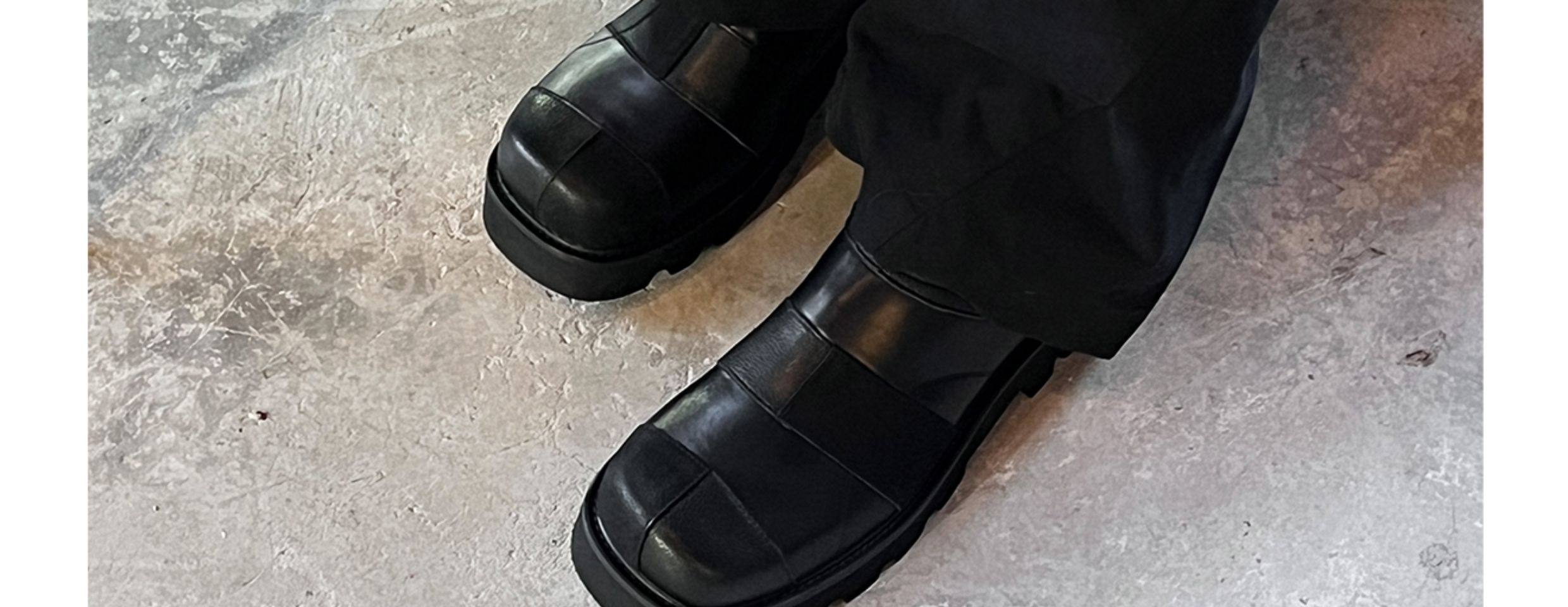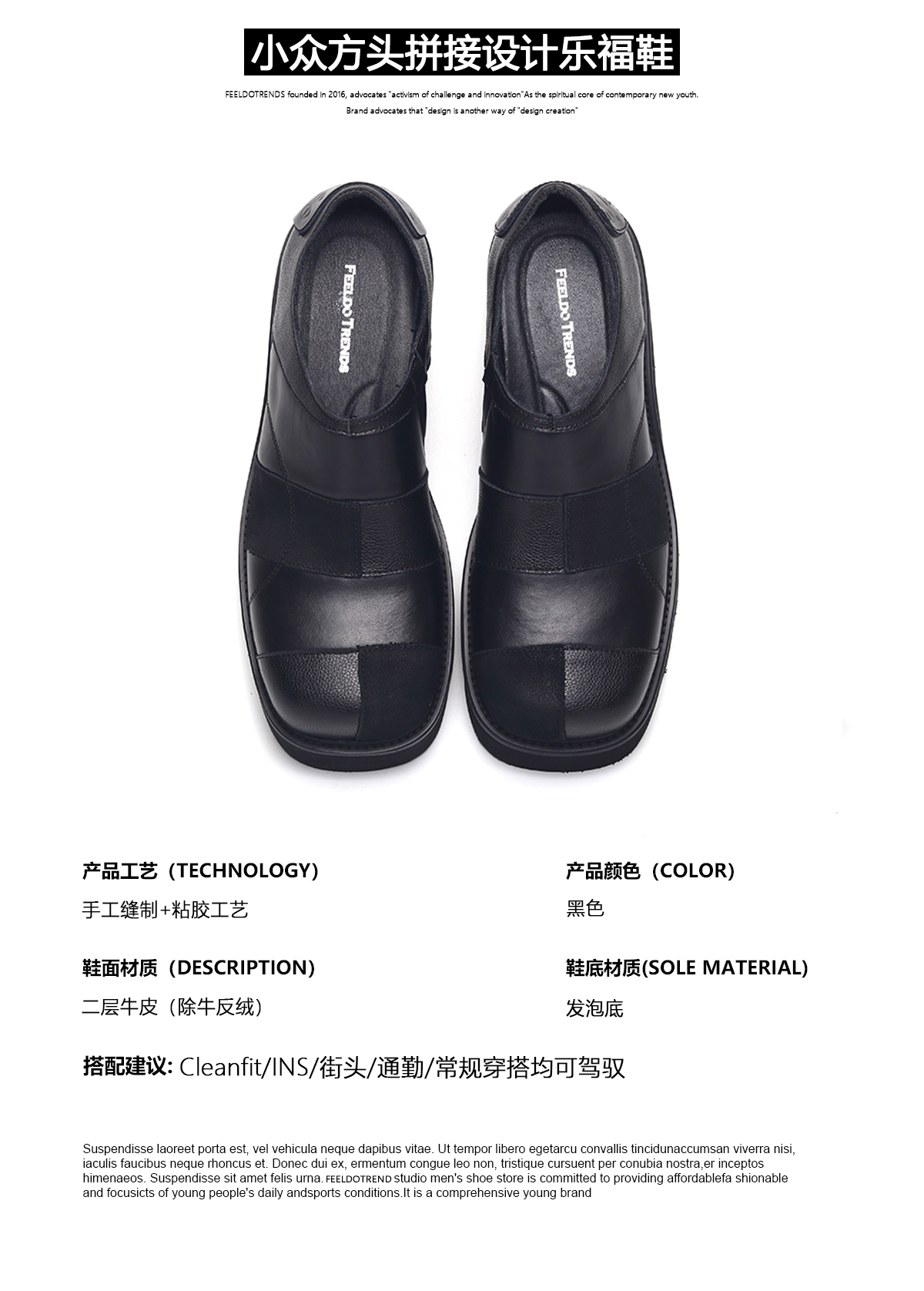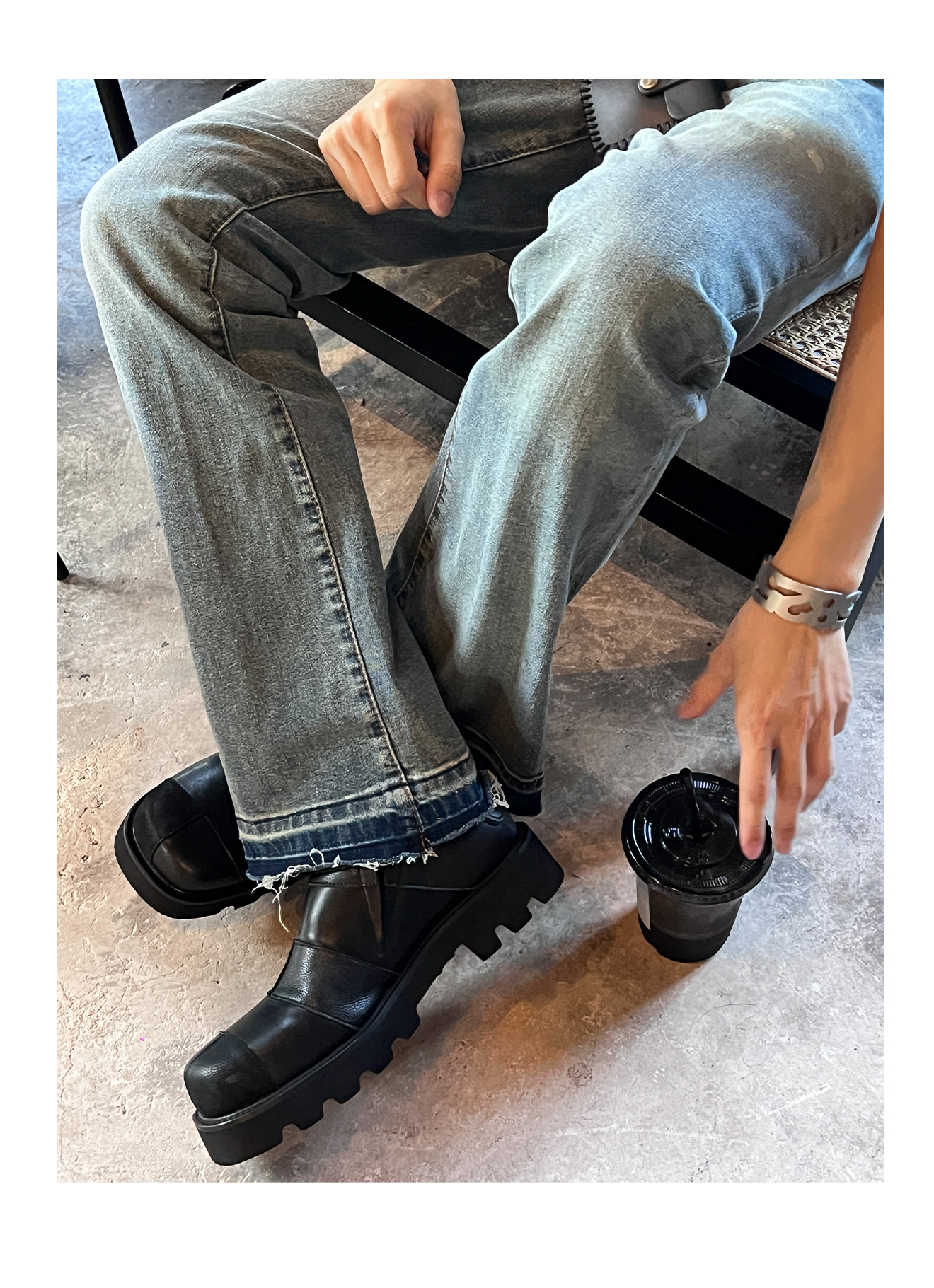 廢都潮品 厚底方頭德比皮鞋男小眾拼接縫製設計復古一腳蹬樂福鞋