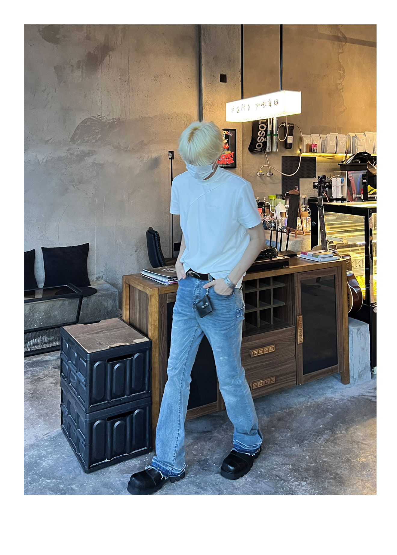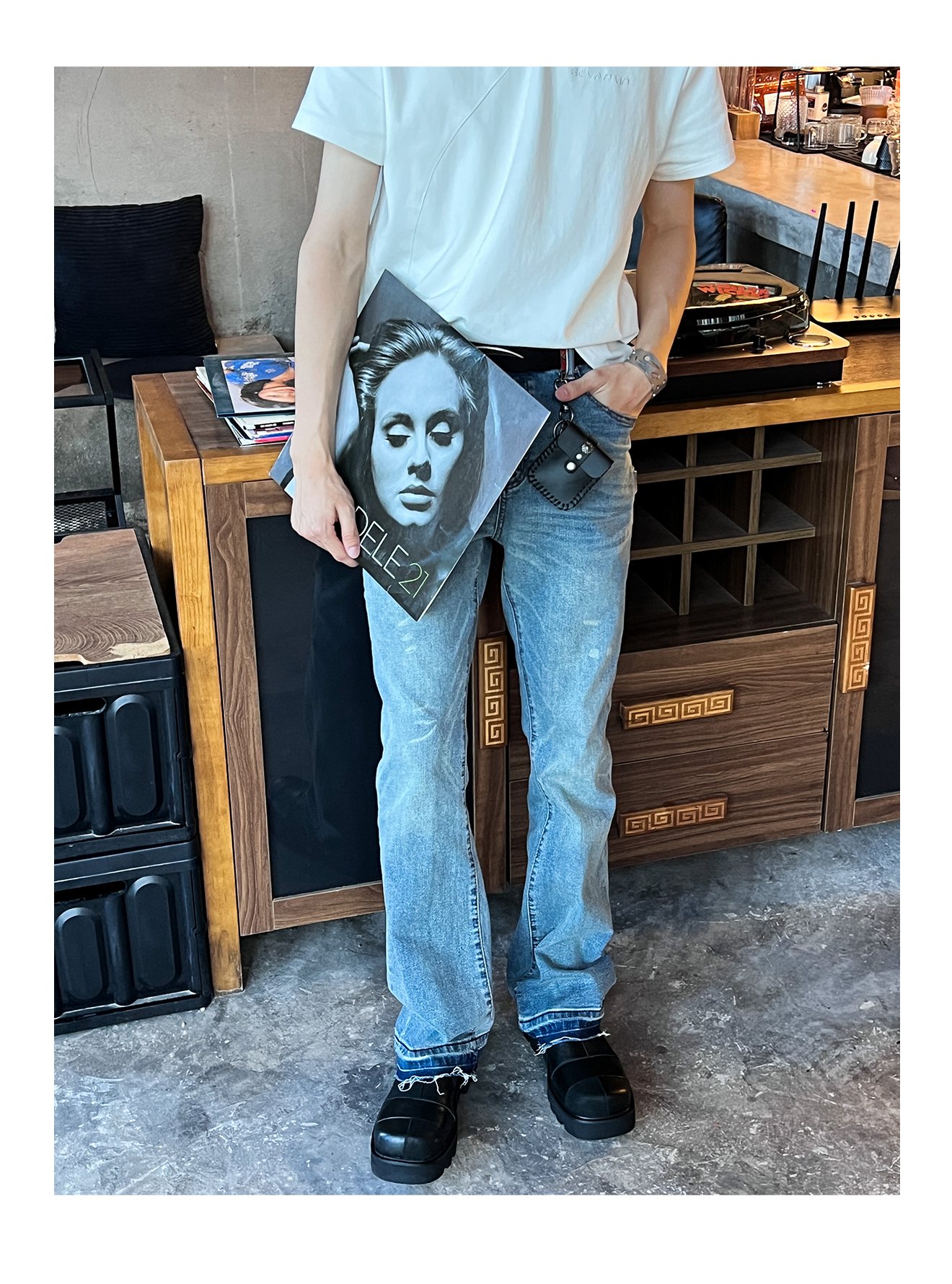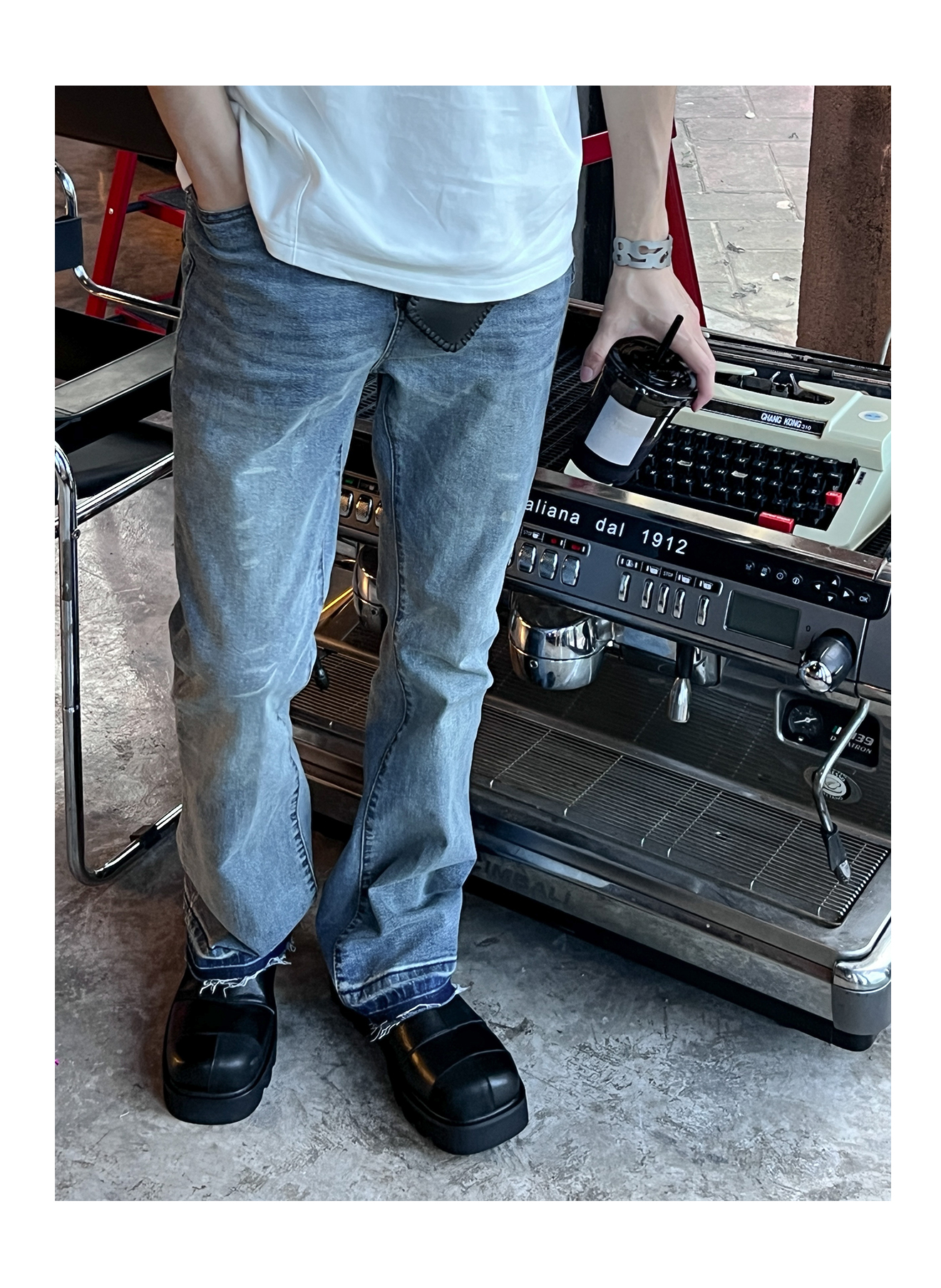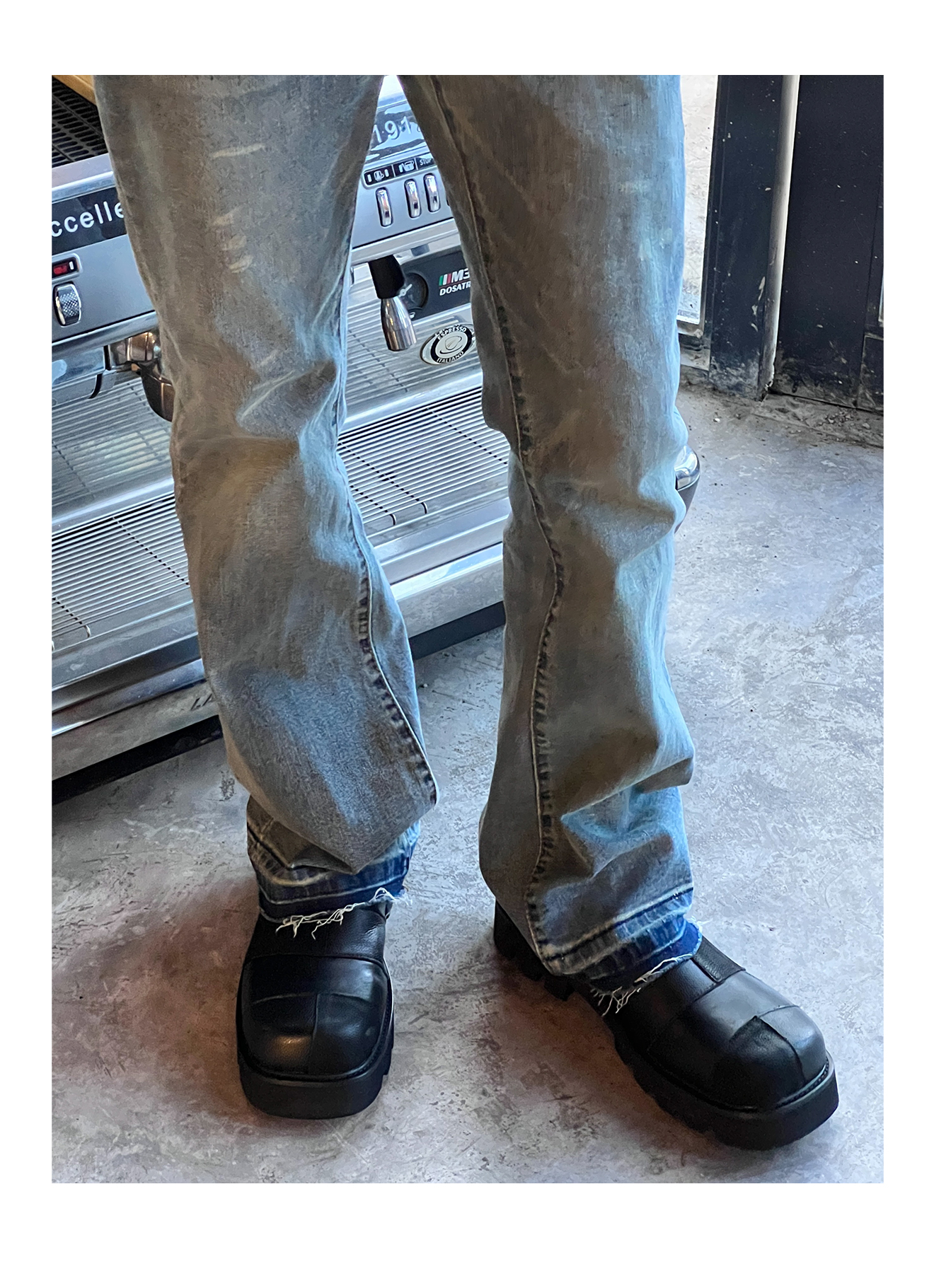 廢都潮品 厚底方頭德比皮鞋男小眾拼接縫製設計復古一腳蹬樂福鞋