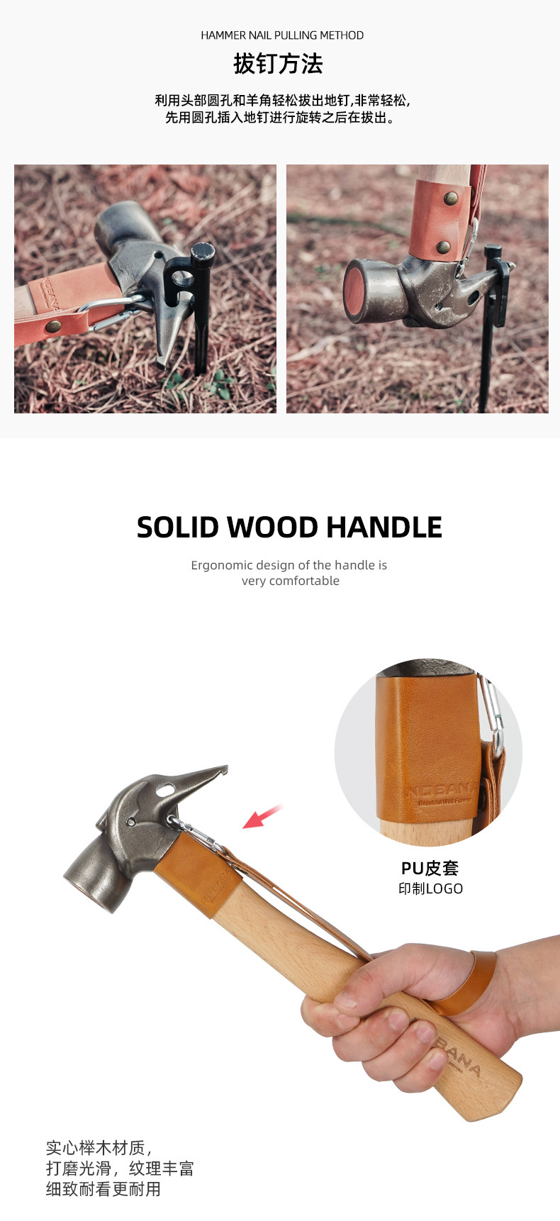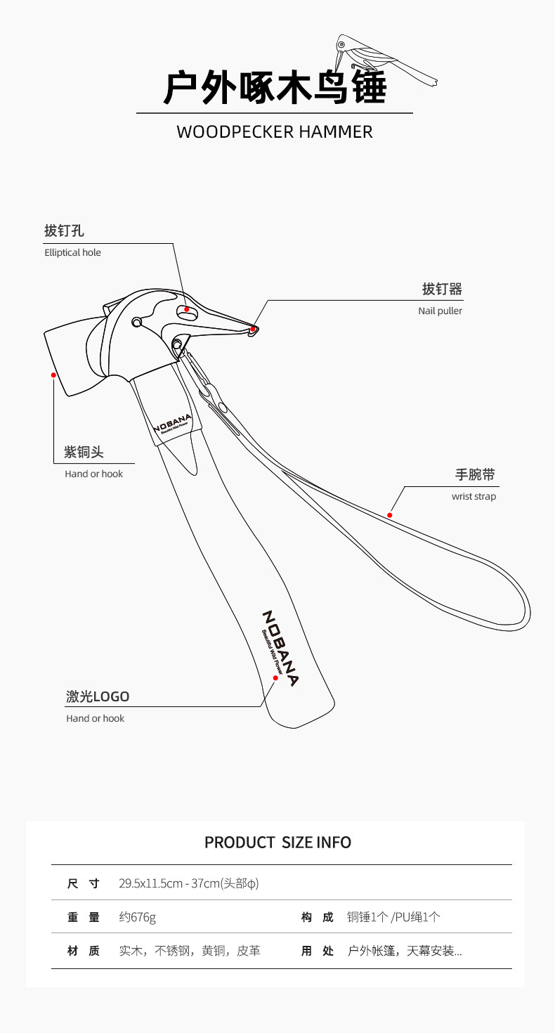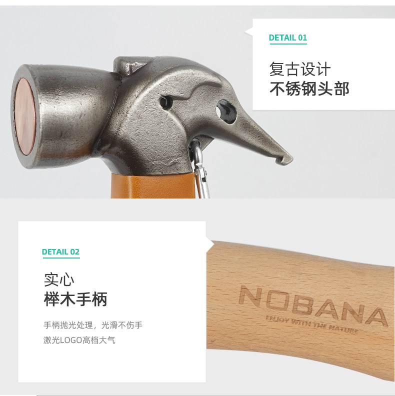 NOBANA新款戶外露營不鏽鋼錘黃銅頭多功能帳篷天幕地釘錘野營榔頭