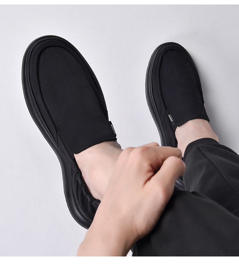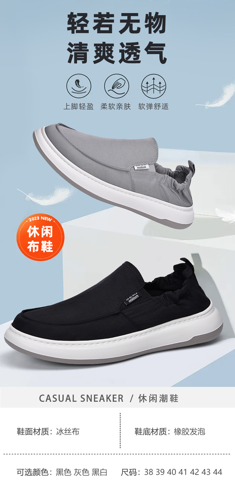 HBLK布鞋男2023新款潮流秋季透氣一腳蹬冰絲鞋子男士輕便休閒鞋