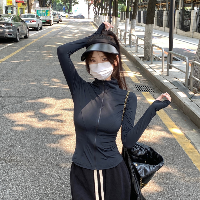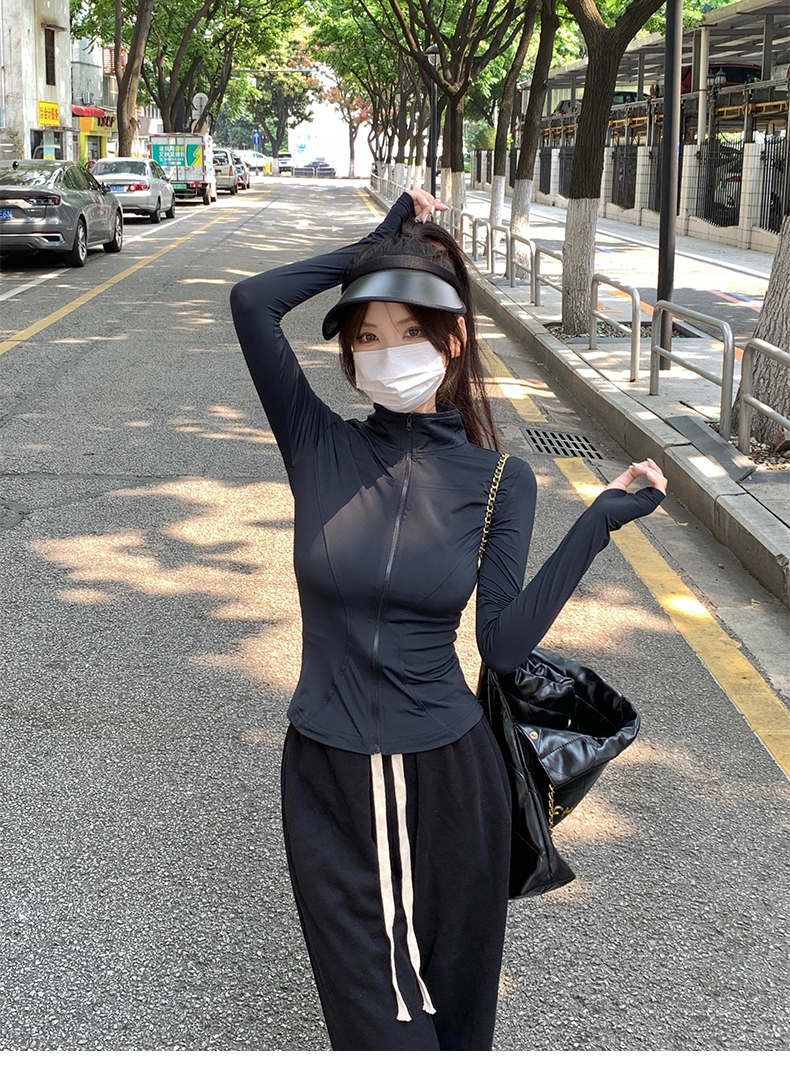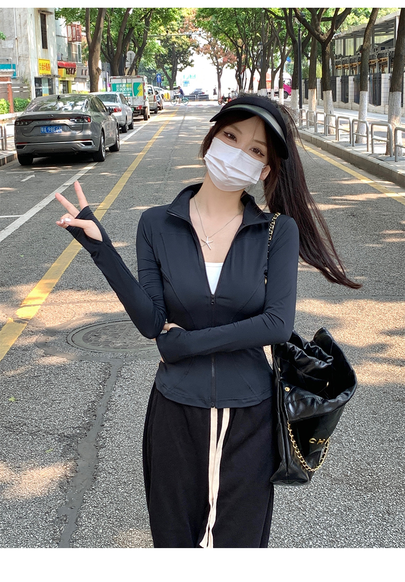 立領防曬衣女款2023新款女孩冰絲透氣修身防曬服夏季薄款緊身外套