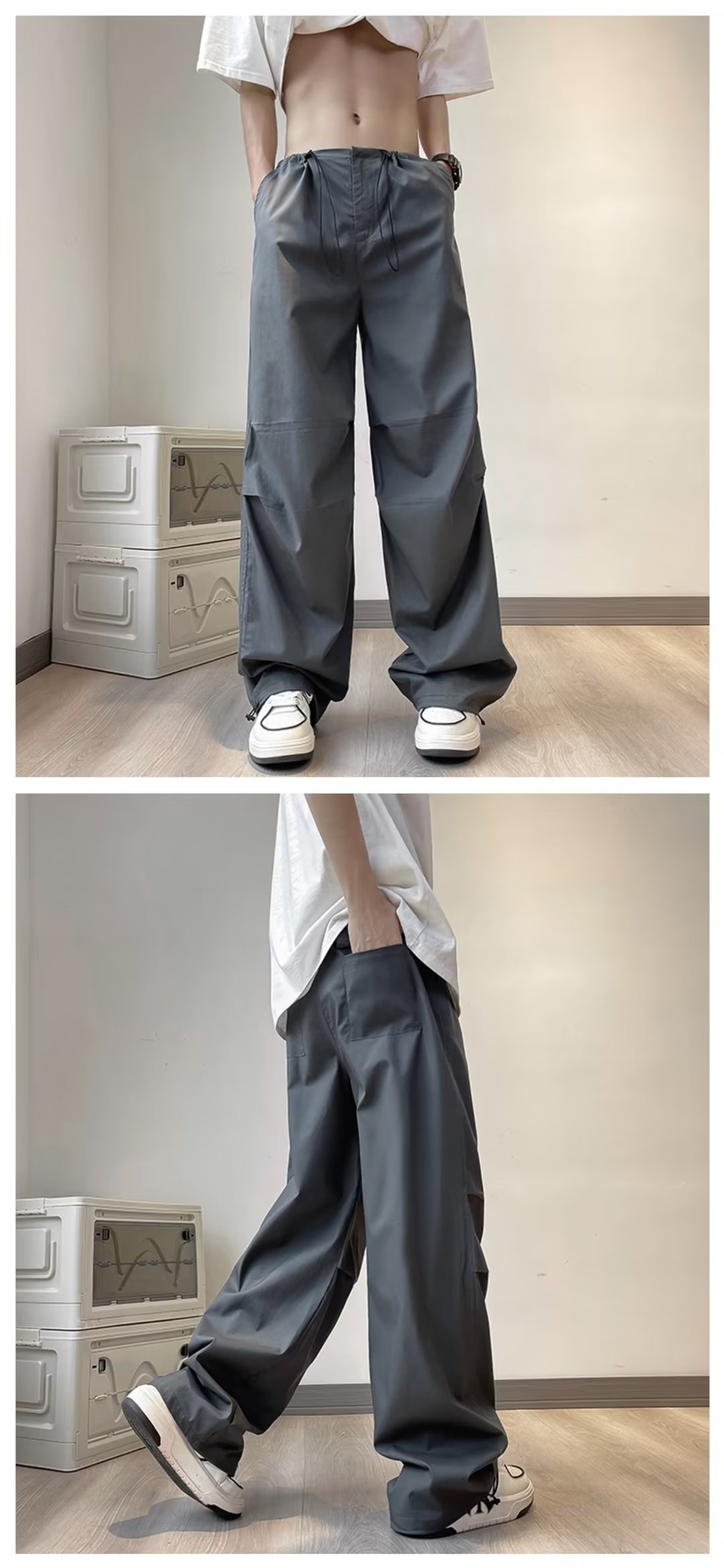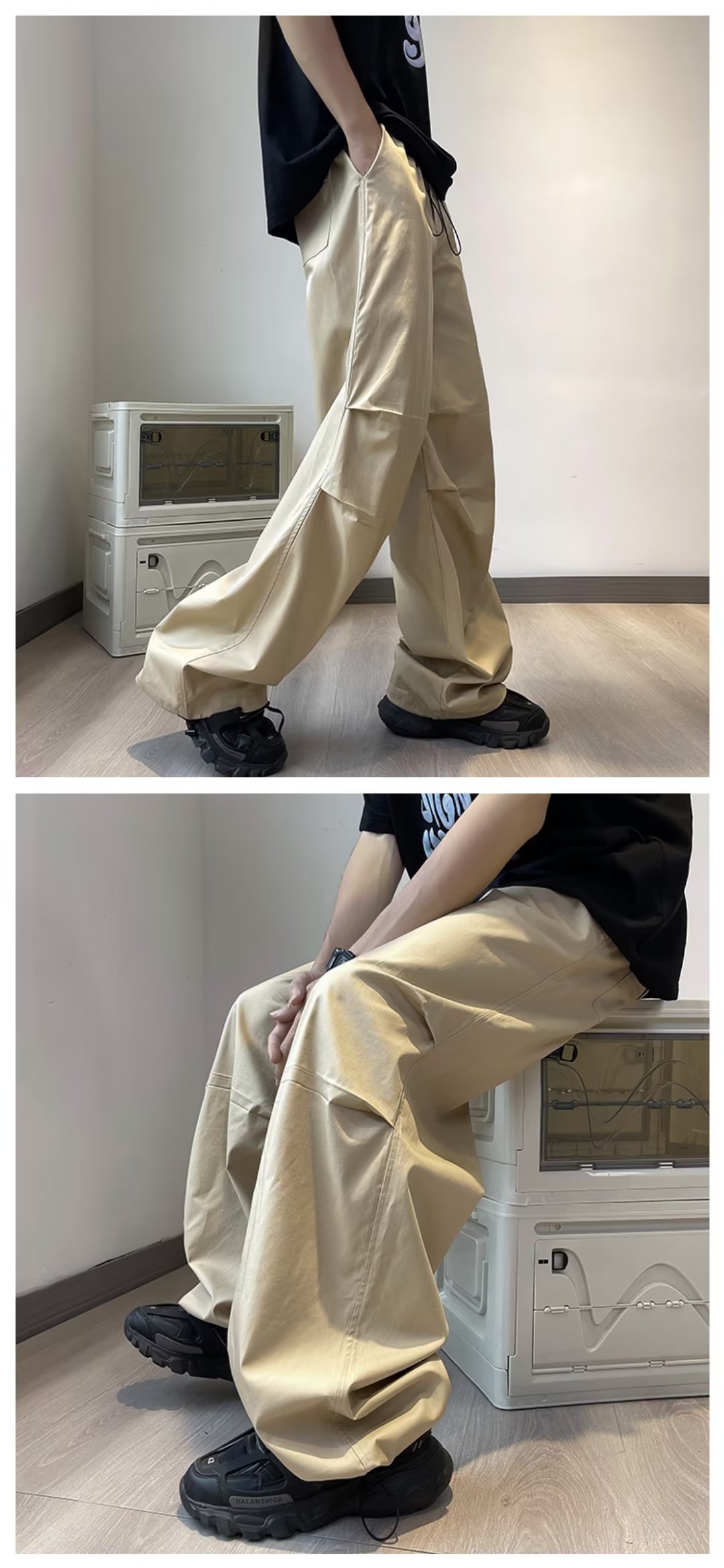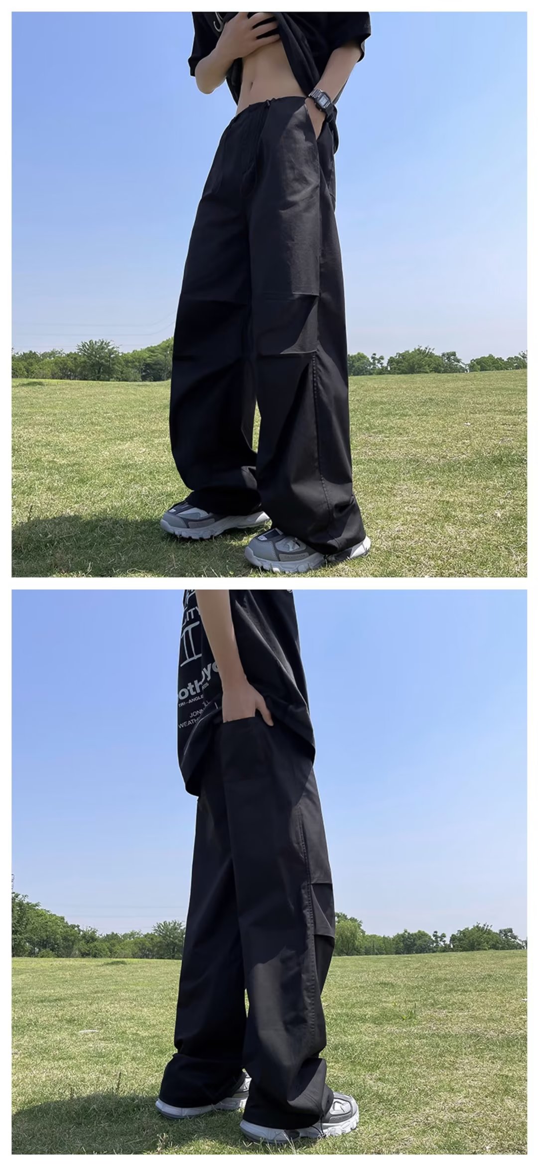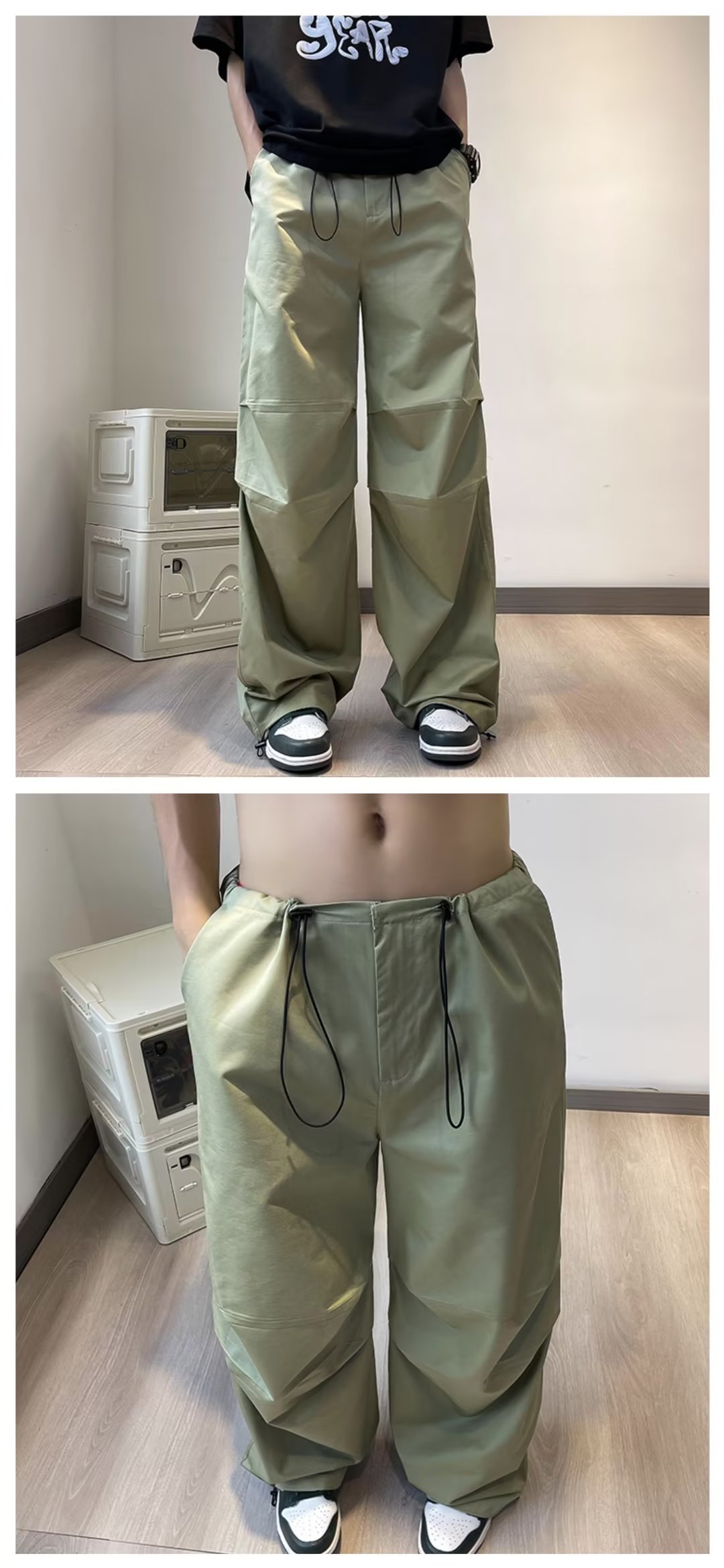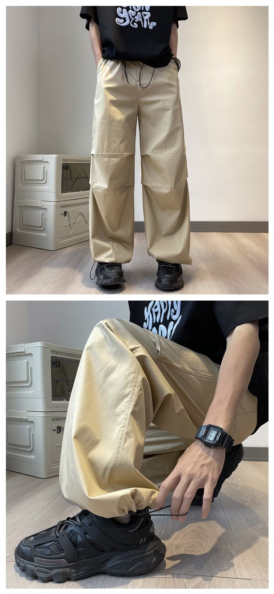 美式復古伐木衝鋒褲夏季薄款褶皺降落傘兵褲機能風冰絲速乾闊腿褲