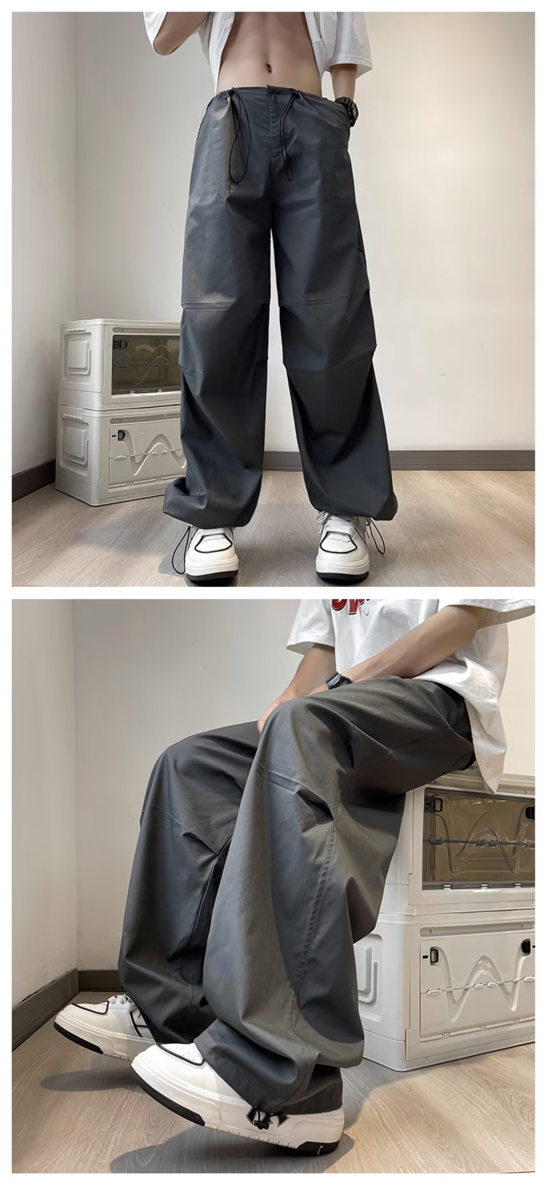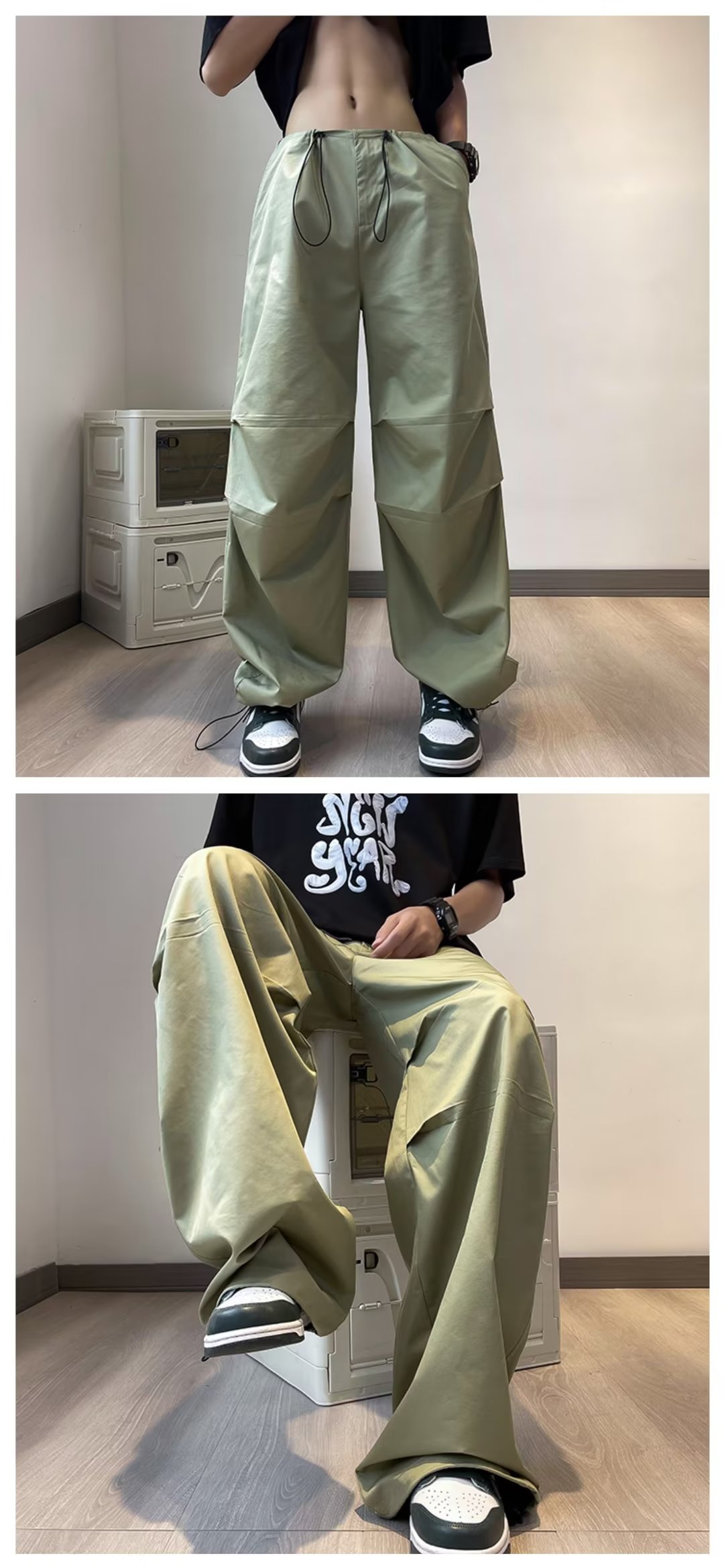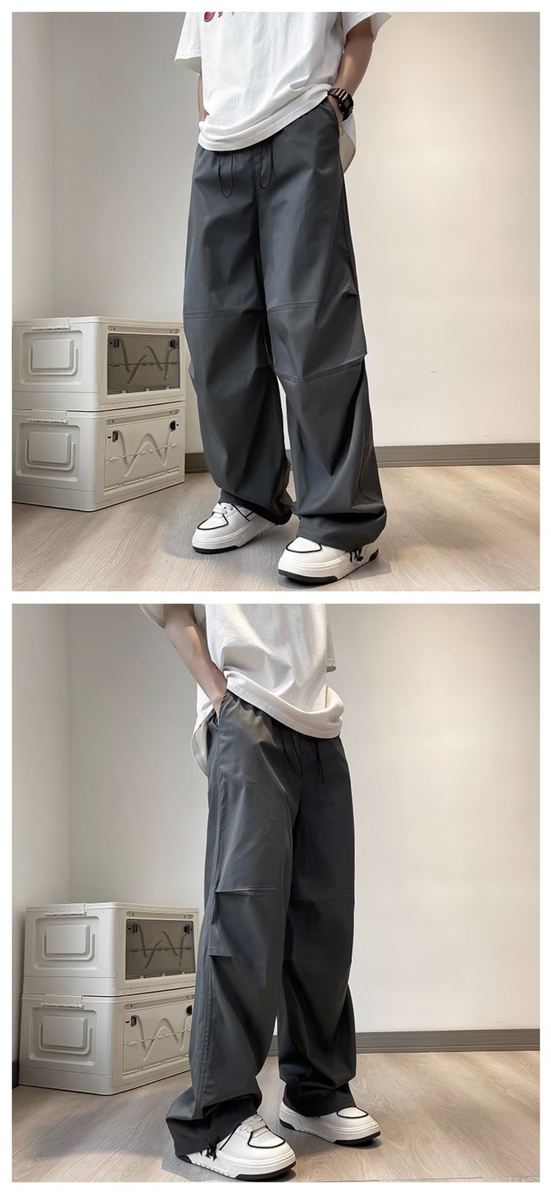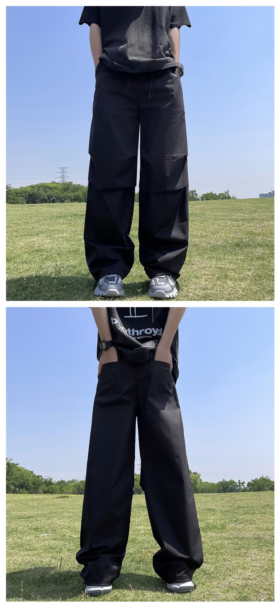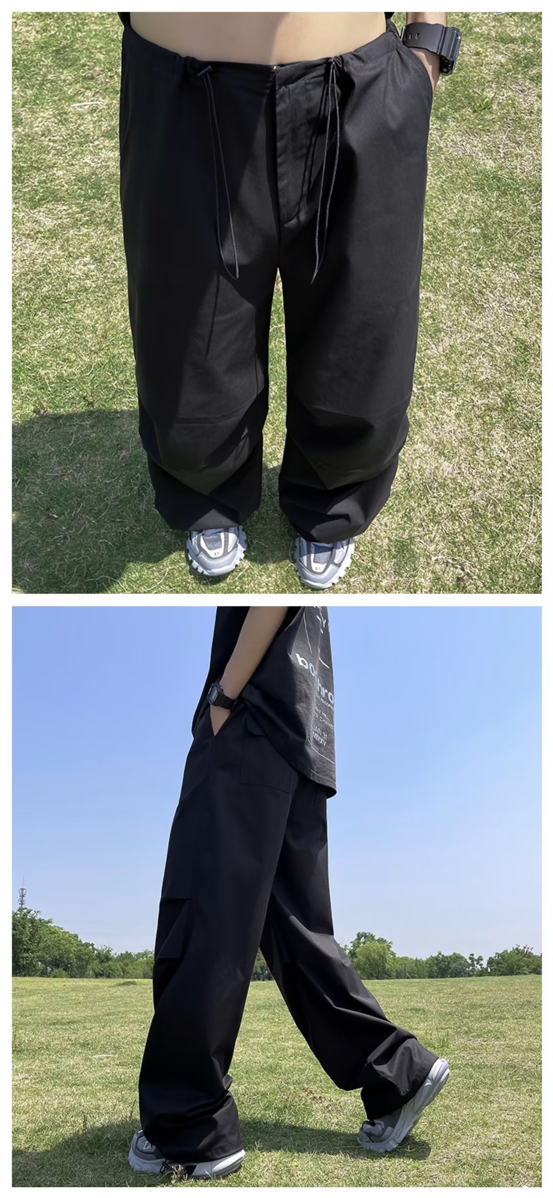 美式復古伐木衝鋒褲夏季薄款褶皺降落傘兵褲機能風冰絲速乾闊腿褲