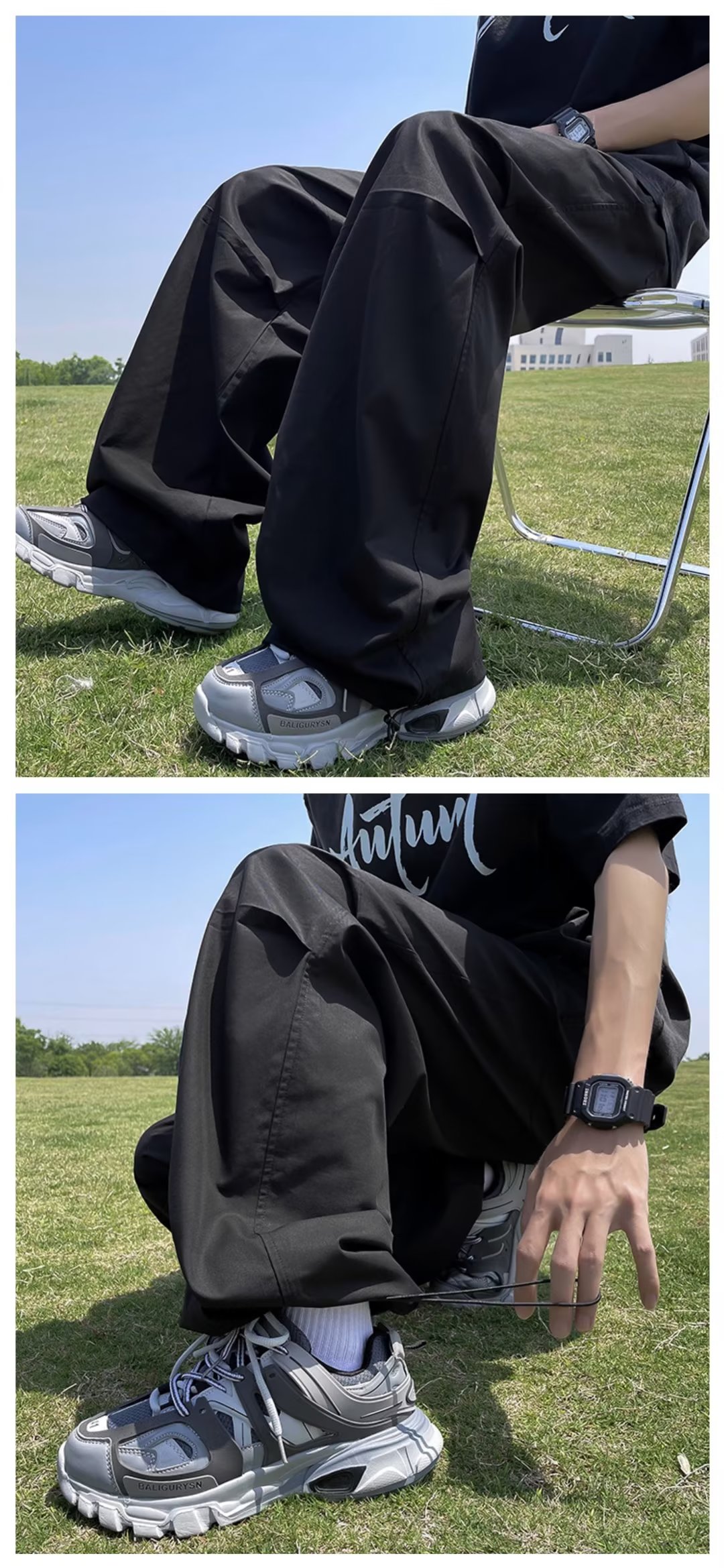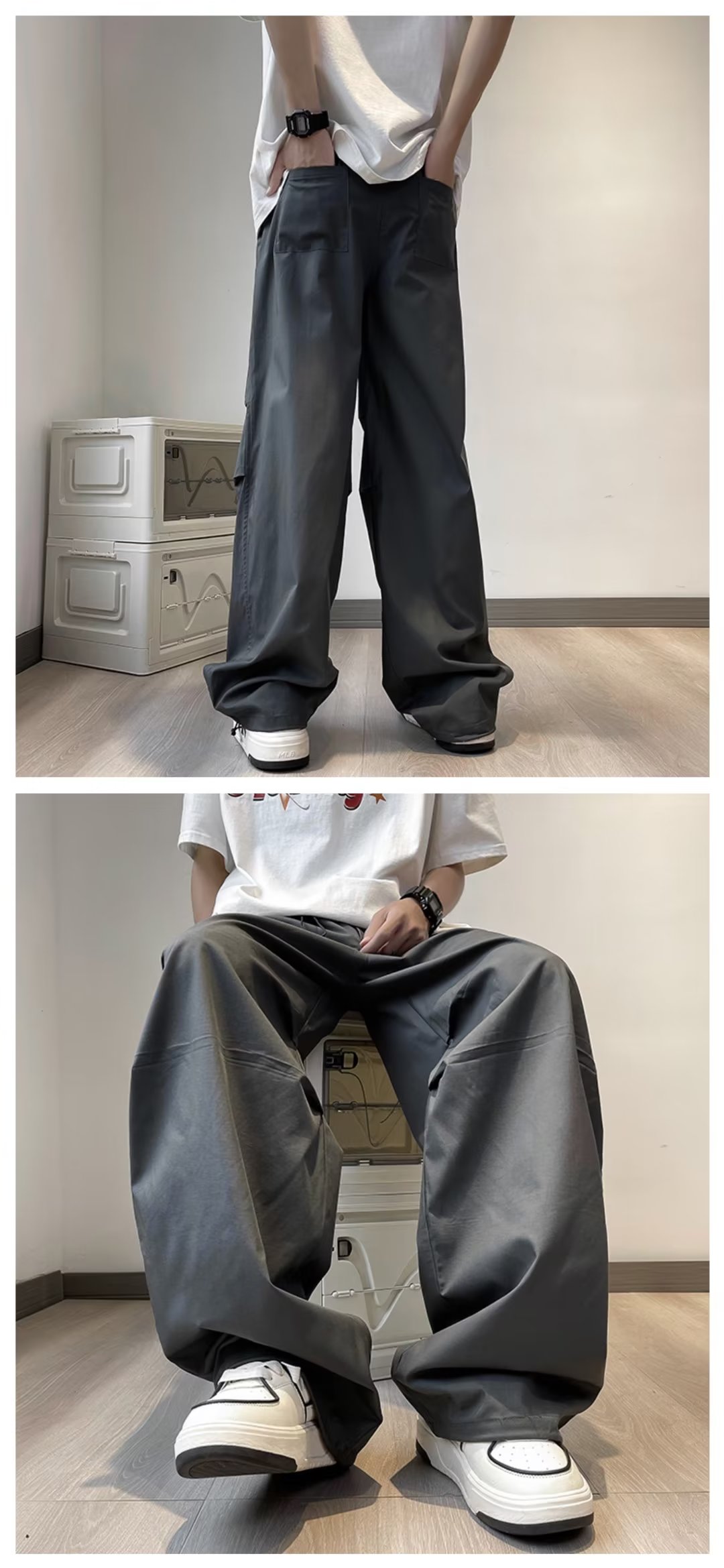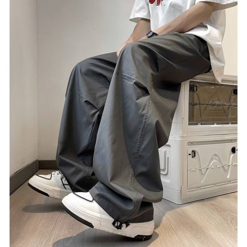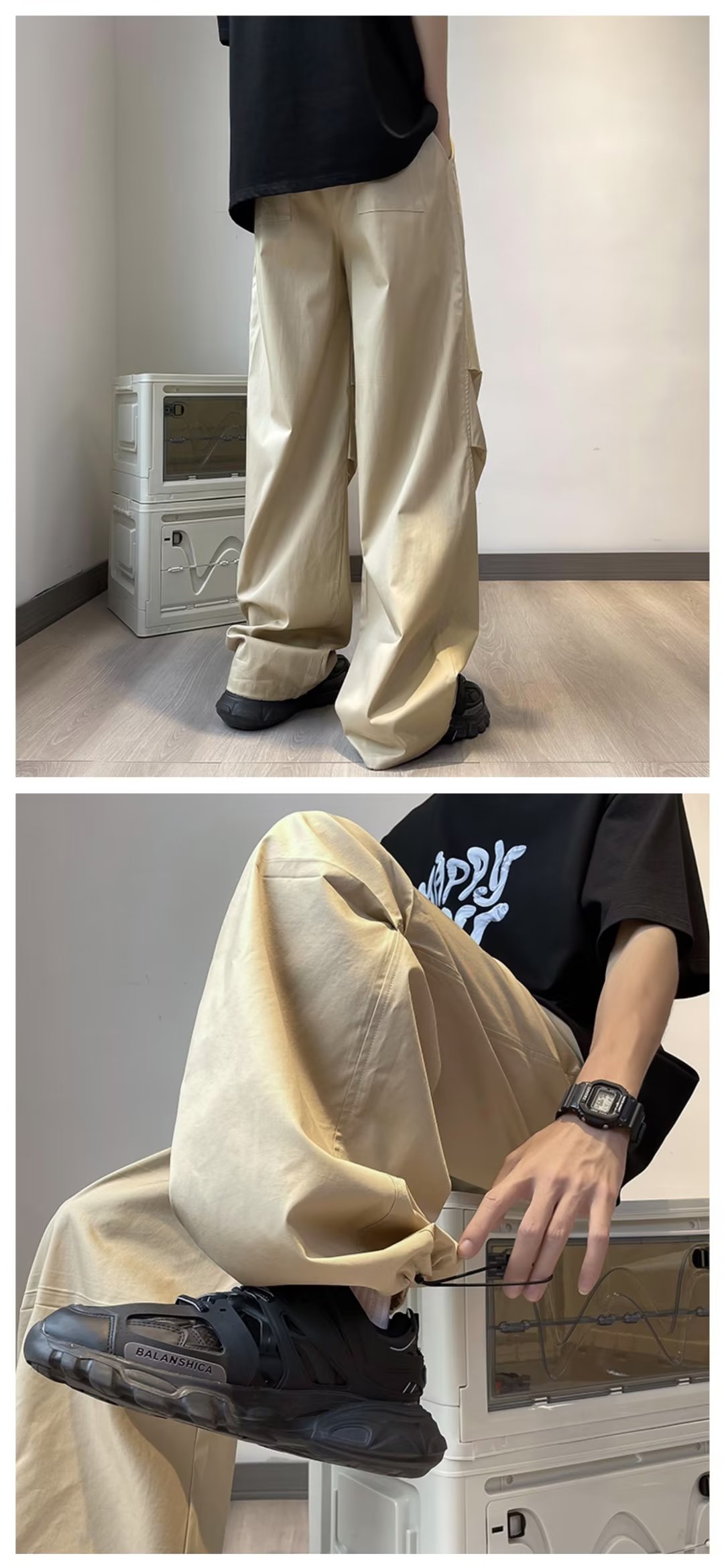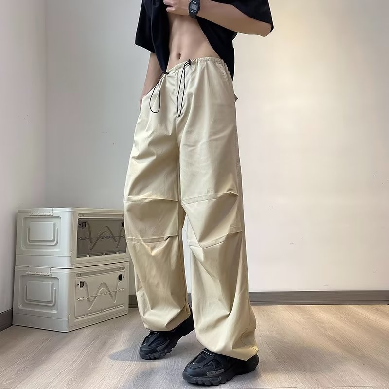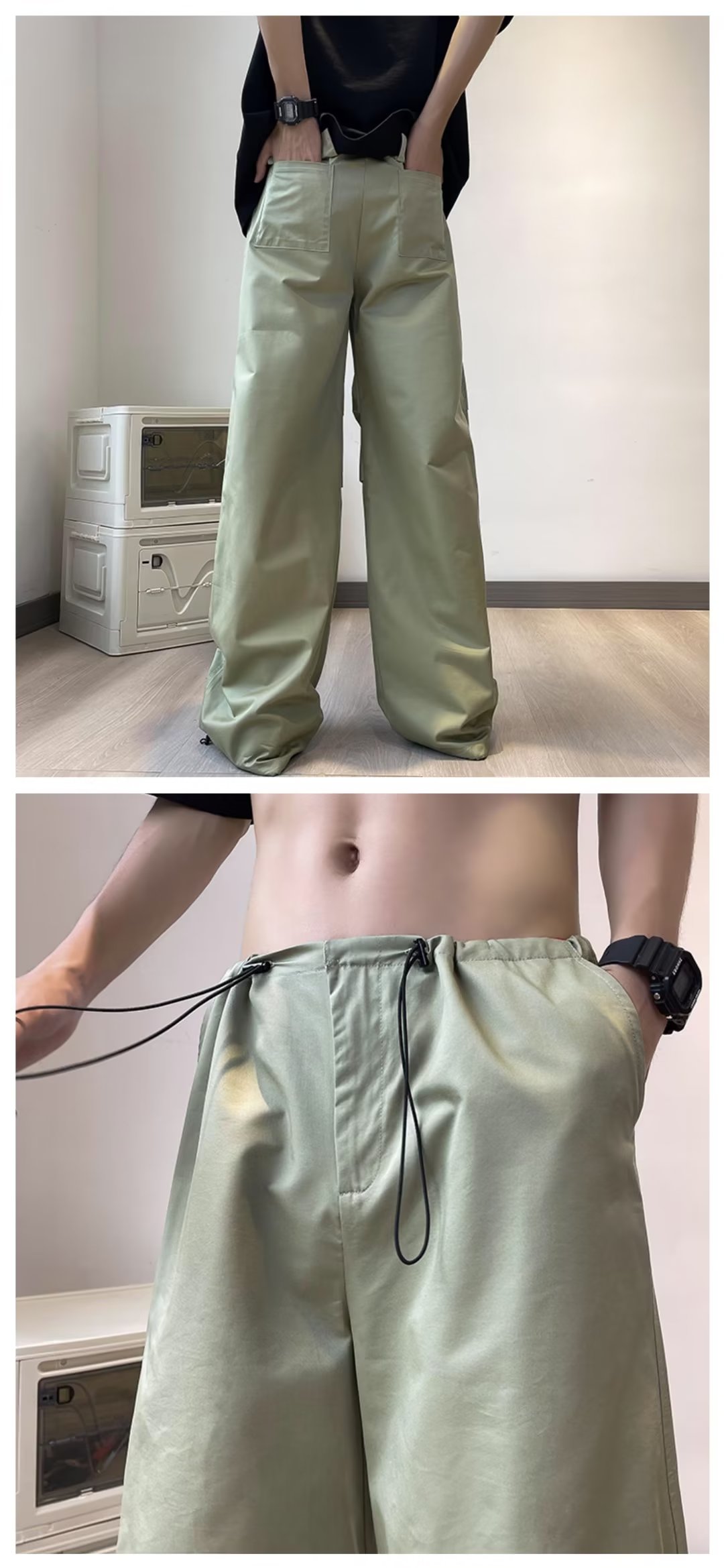 美式復古伐木衝鋒褲夏季薄款褶皺降落傘兵褲機能風冰絲速乾闊腿褲