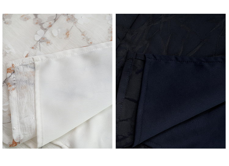 内衬材质是缎面雪纺的,亲肤舒适