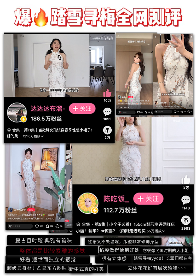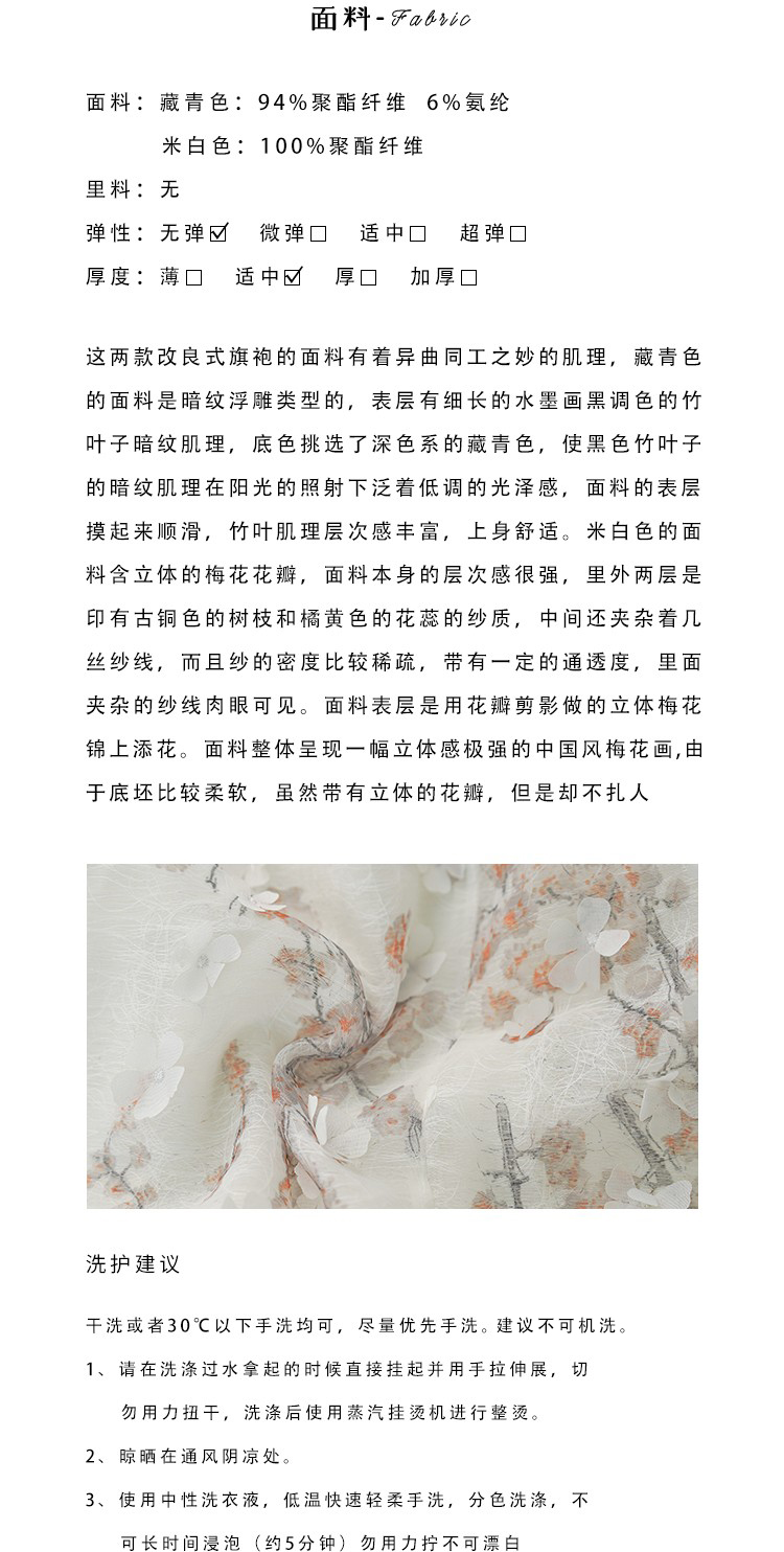 店主尺码建议:这款改良式旗袍是比较修身的版型x对于三围的尺寸要求比较比较高,腰围比小丽一般的裙子尺码刻意窄了2cm,建议按照三围的尺寸来挑选码数。