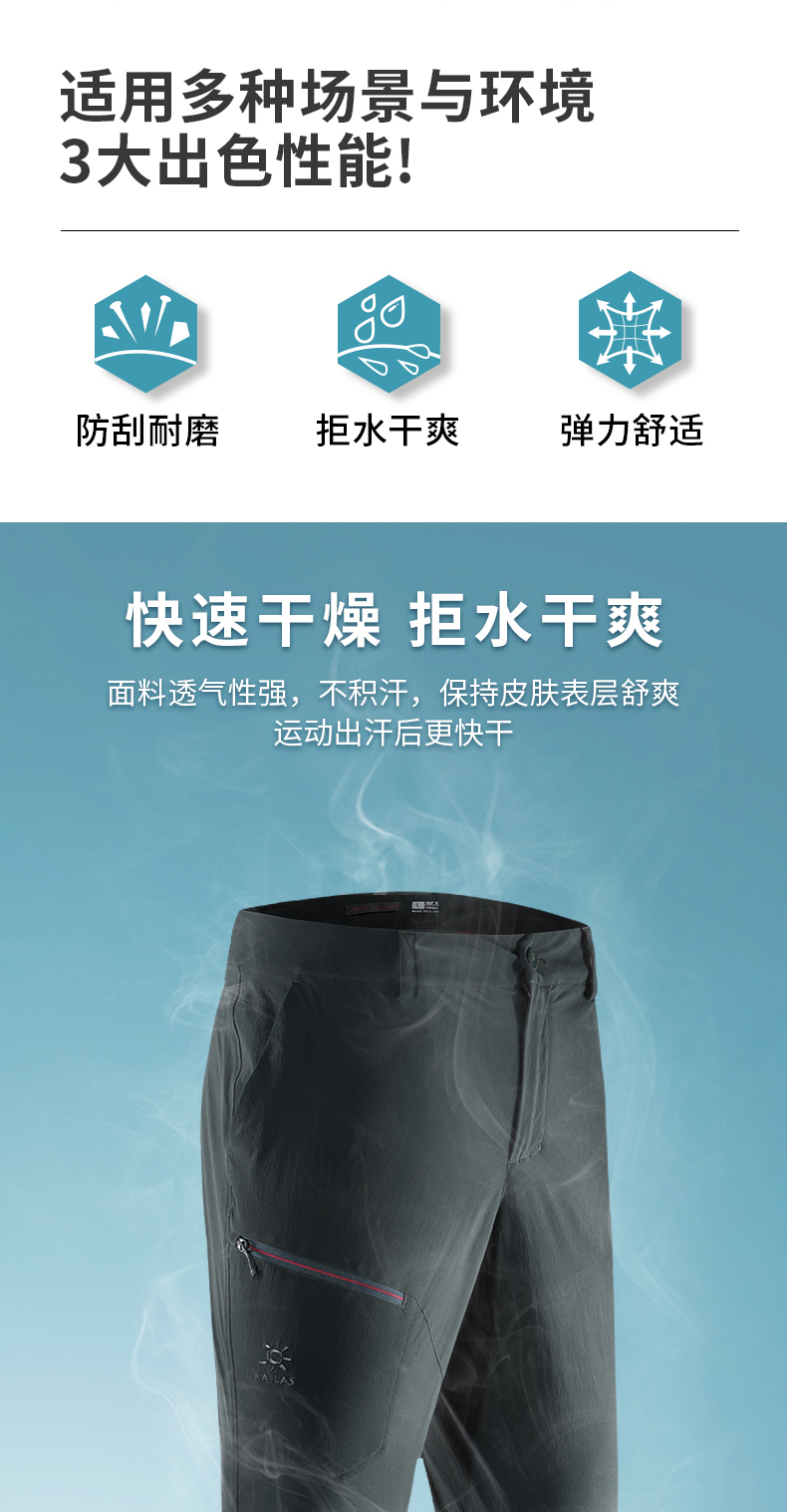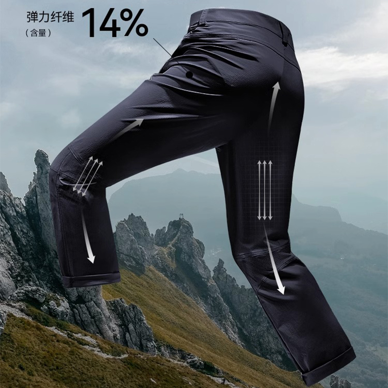 凱樂石褲子男衝鋒褲夏季彈力軟殼褲戶外長褲登山防潑水徒步速乾褲