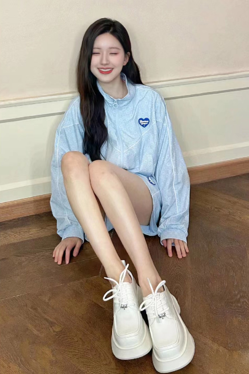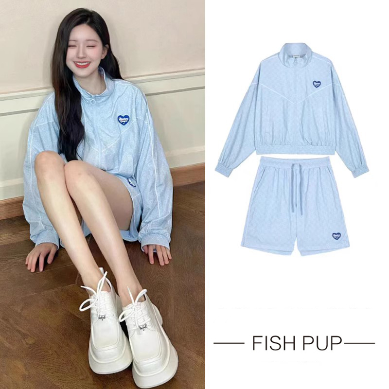 趙露思同款藍色薄跑步運動套裝女2023年新款小個子速乾防曬休閒服