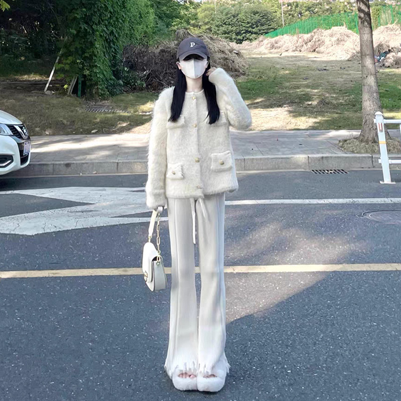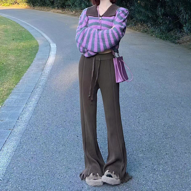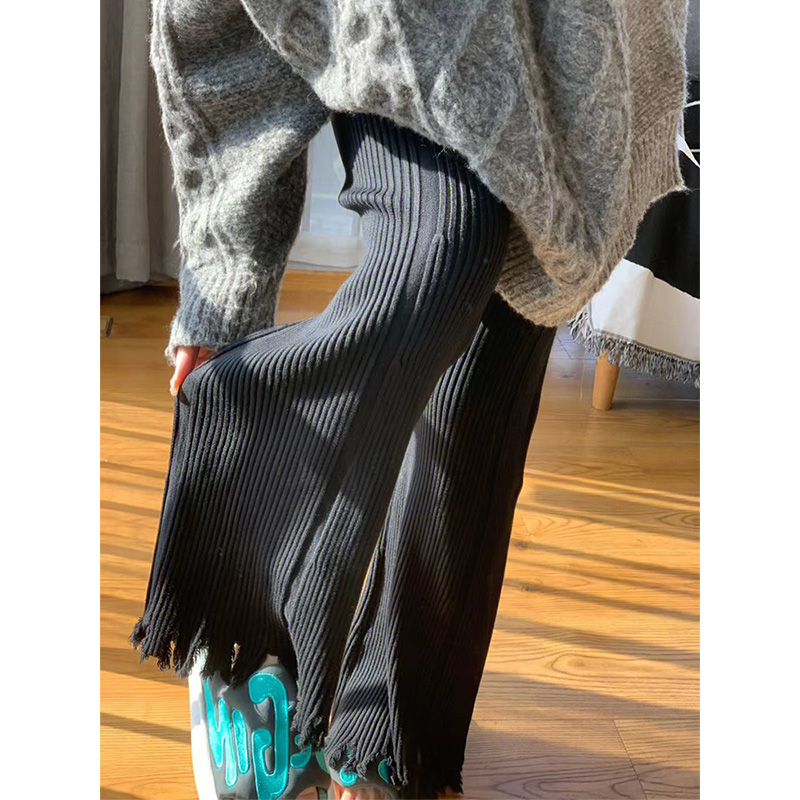 2023春秋季新款高腰喇叭拖地長褲顯瘦流蘇針織直筒褲子休閒褲女男