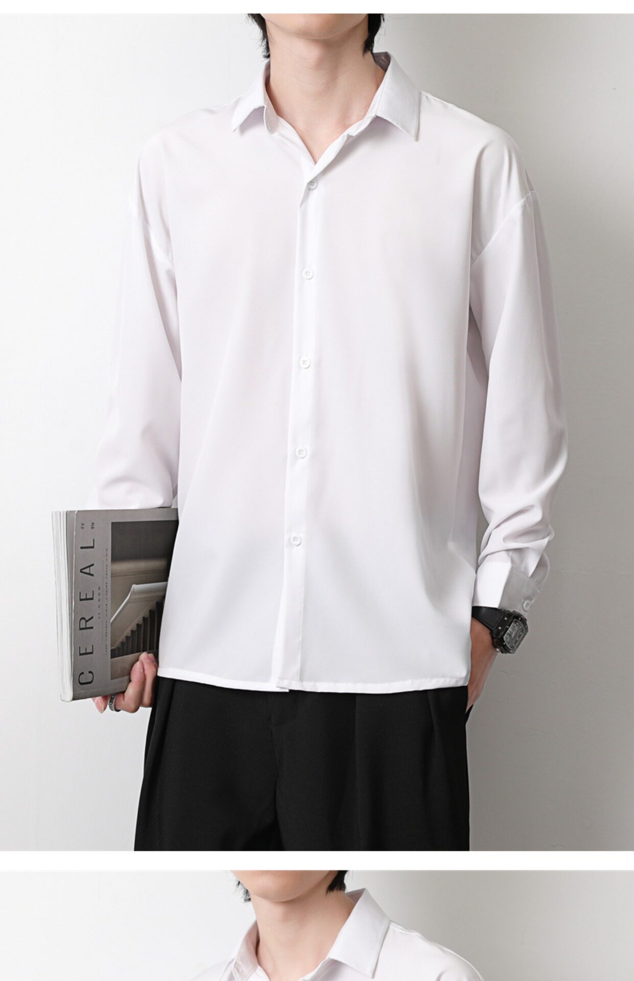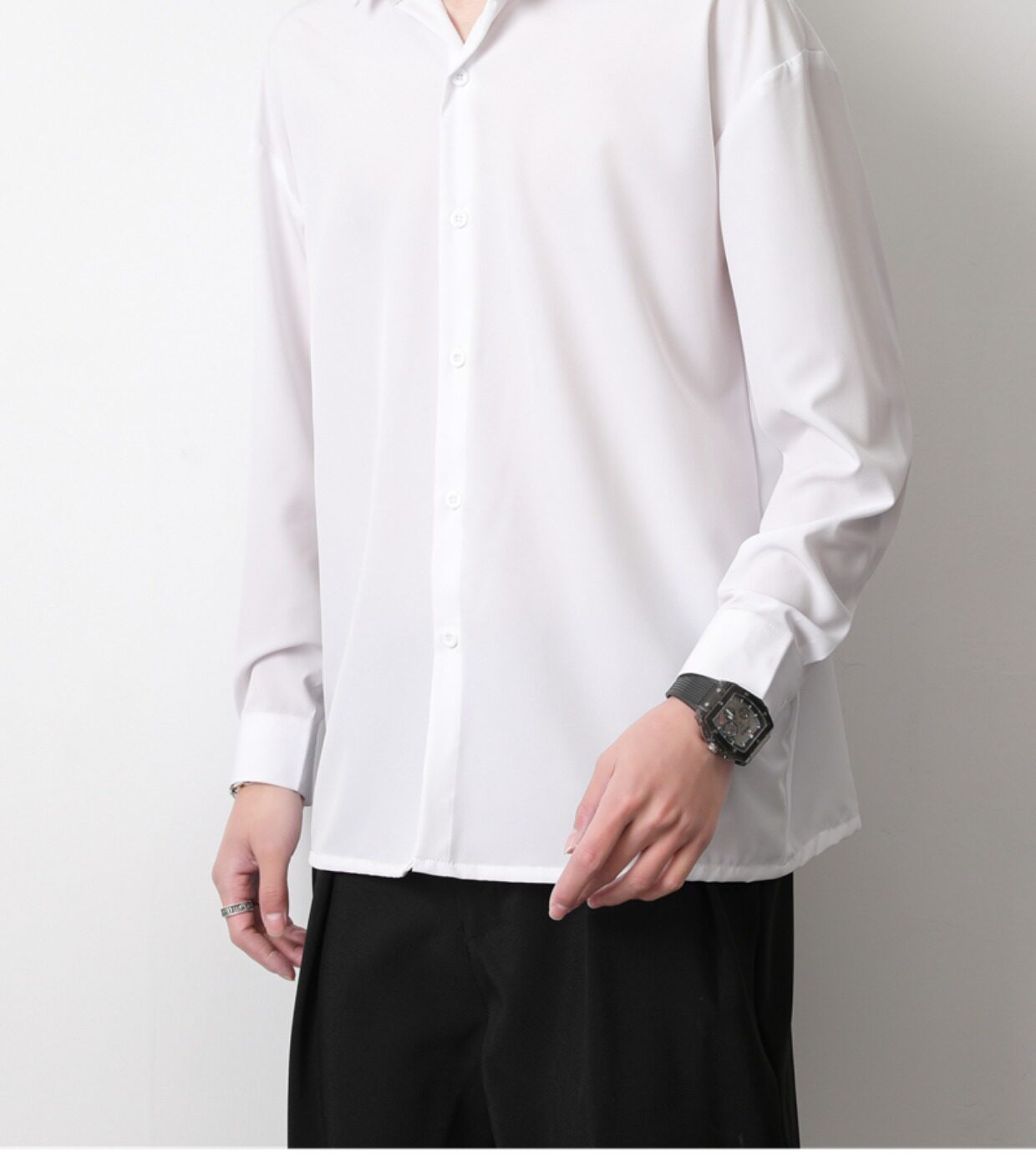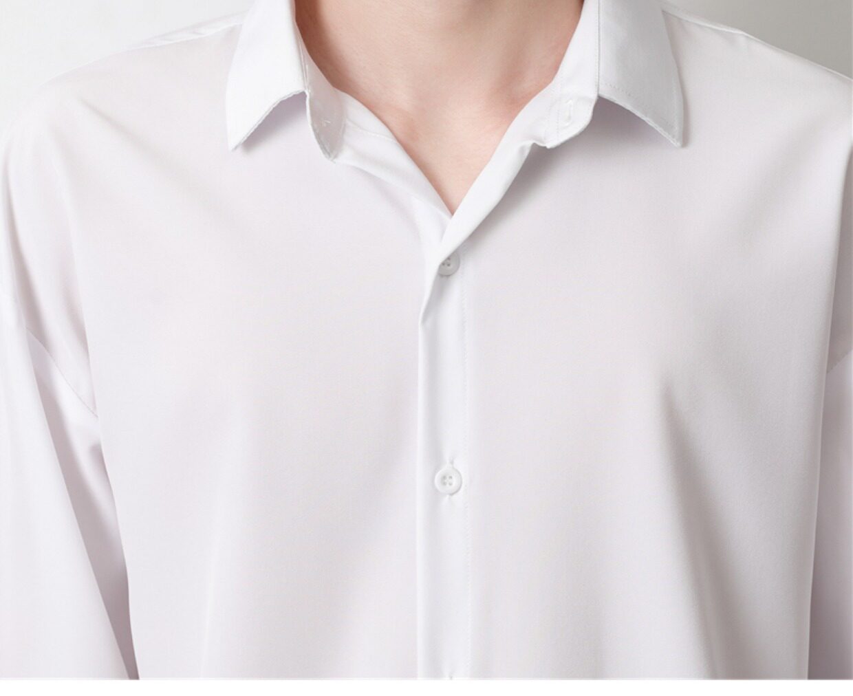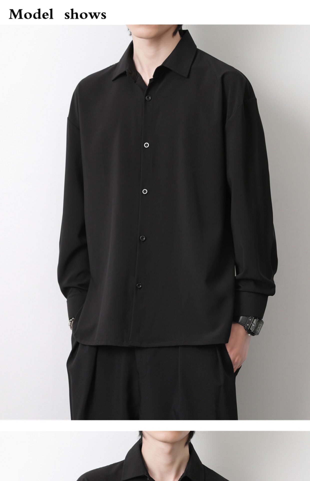港風襯衫男長袖春夏季寬鬆休閒高級垂感五分袖寸痞帥黑色襯衫外套
