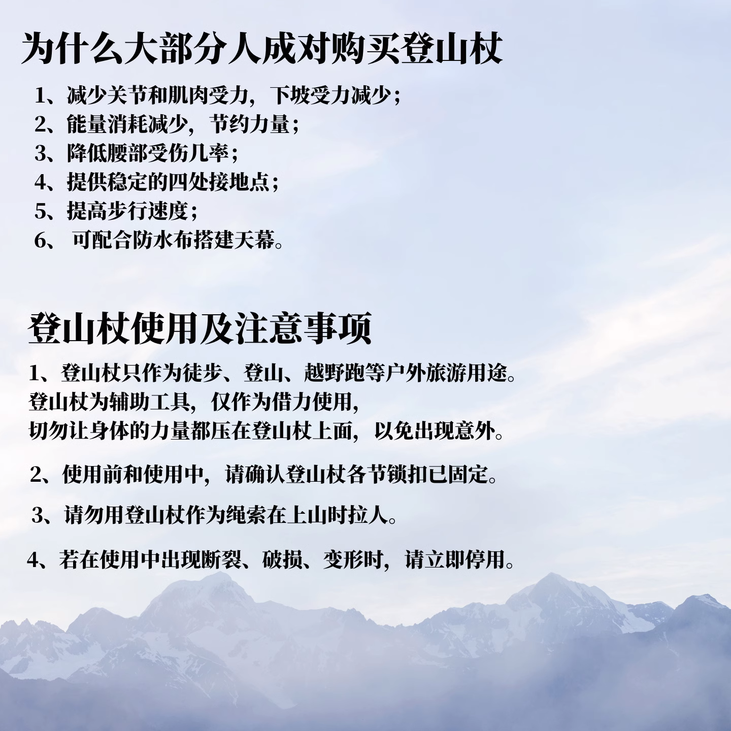轻量的长程徒步杖、z杖可折叠技术,带来折叠收纳的便利性和快速装配的实用性。我们的徒步杖,通用性强,坚韧耐久,伴你应对长日跋涉,对于野外活动的轻松性,起到至关紧要的作用。紧凑、轻量化。为切合快速行动的山地爱好者的需要而特定设计,为您精心制作!BD黑钻登山杖多项技术专利,品质稳定,性能可靠!使用放心!
