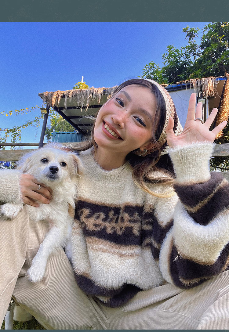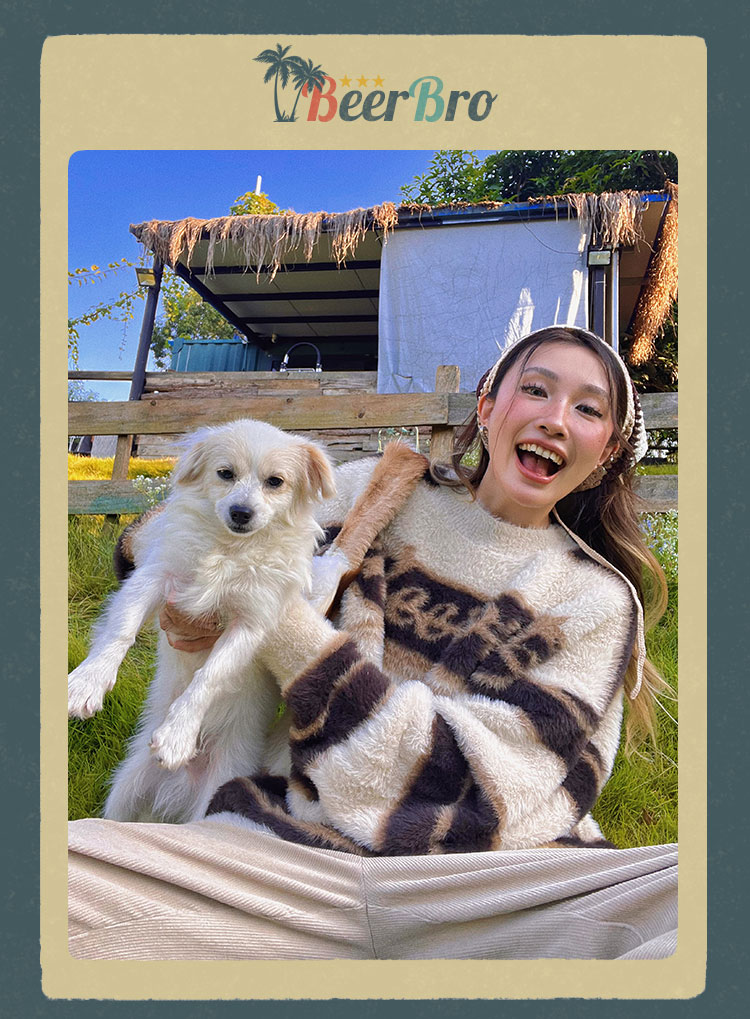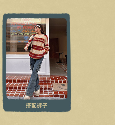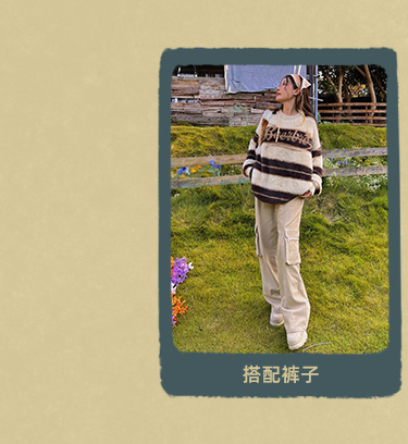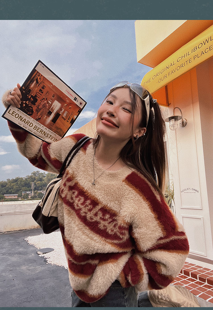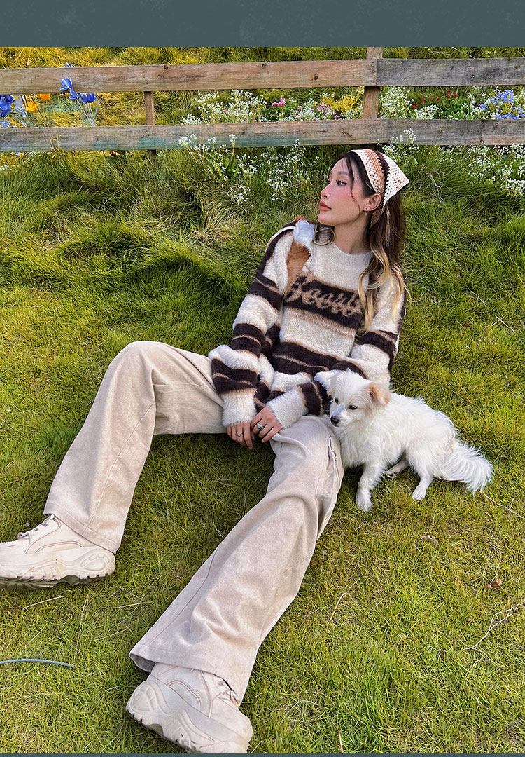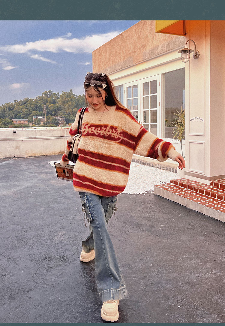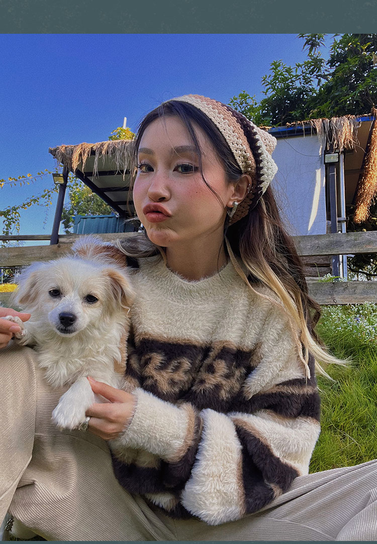 BeerBro 仿貂毛刷條紋毛衣女秋冬新款寬鬆顯瘦慵懶風毛針織衫外套潮