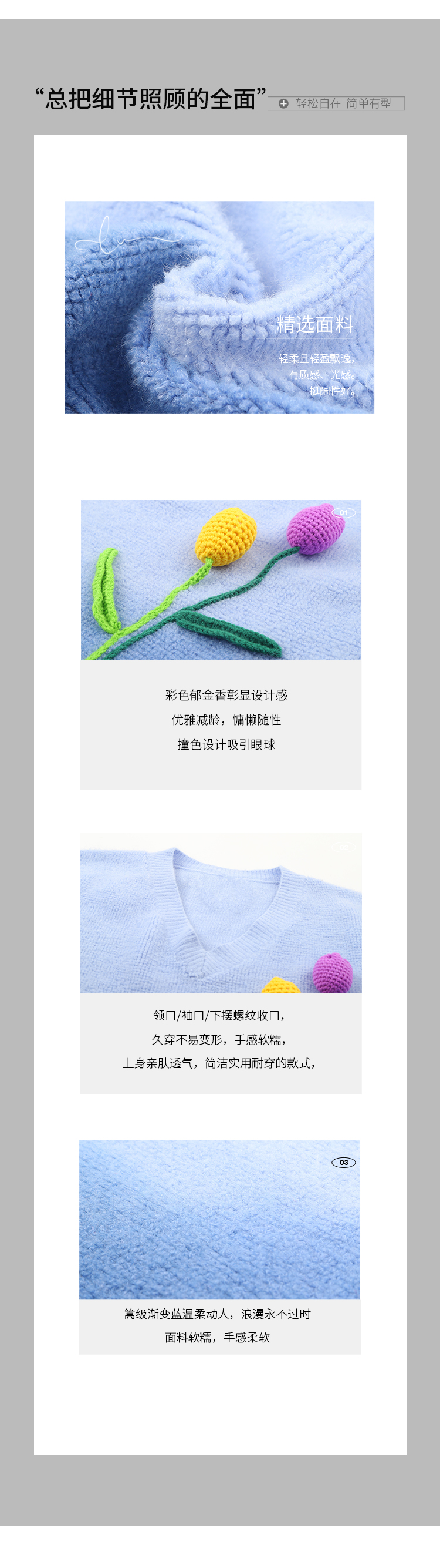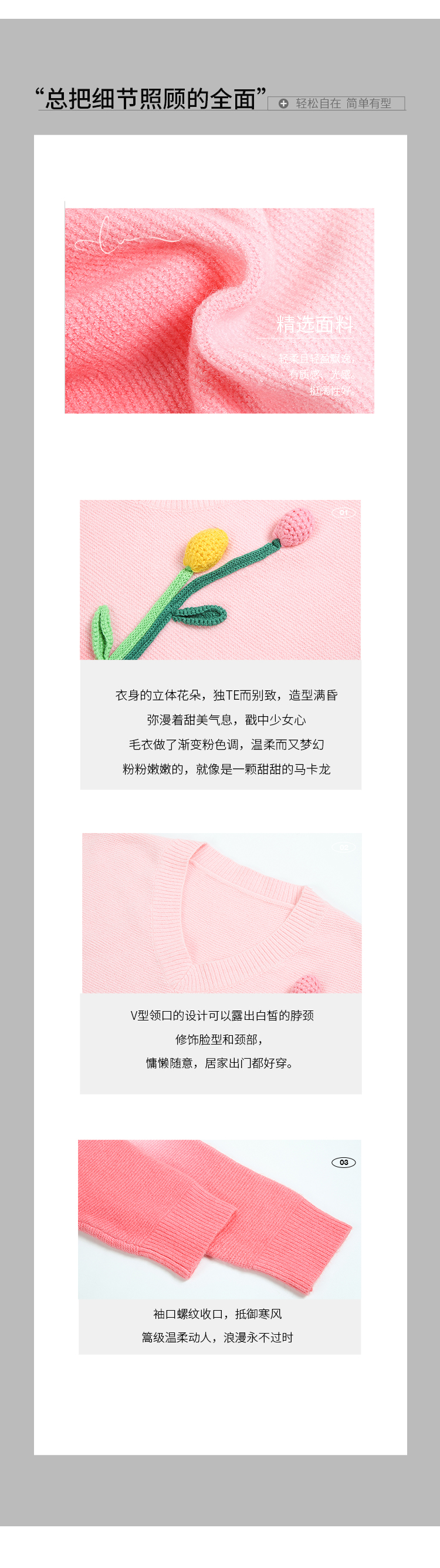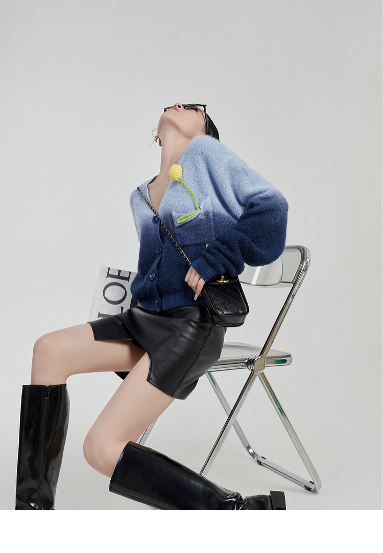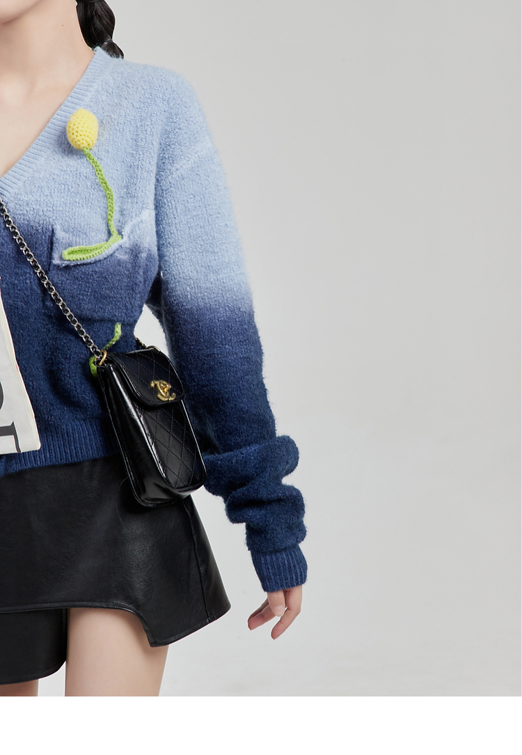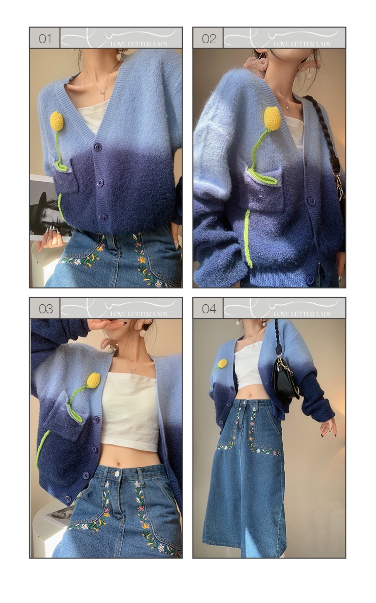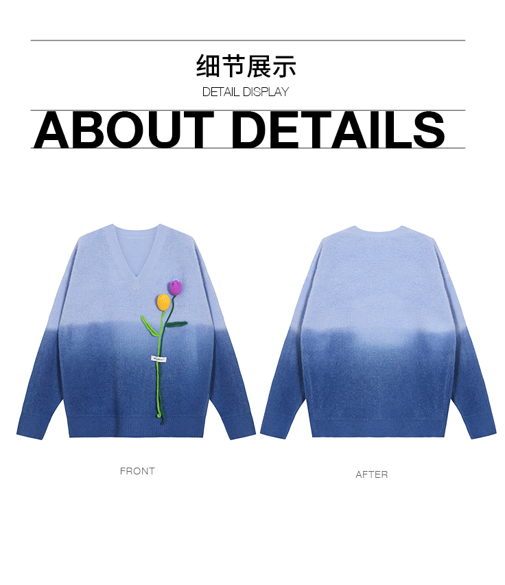 【現貨】高級感超好看毛衣法式鬱金香花朵漸層色寬鬆慵懶針織衫女