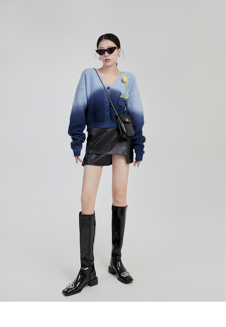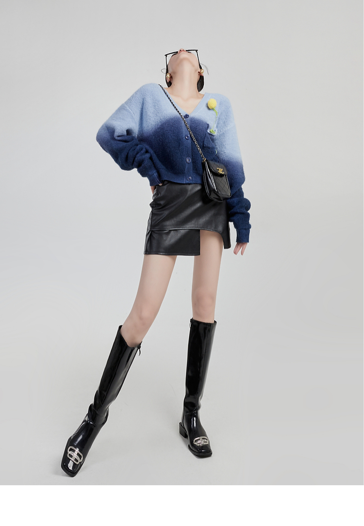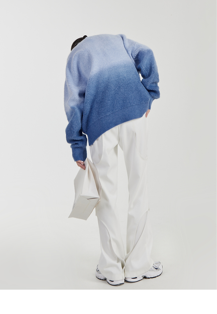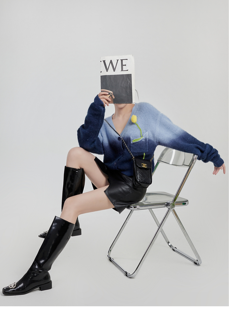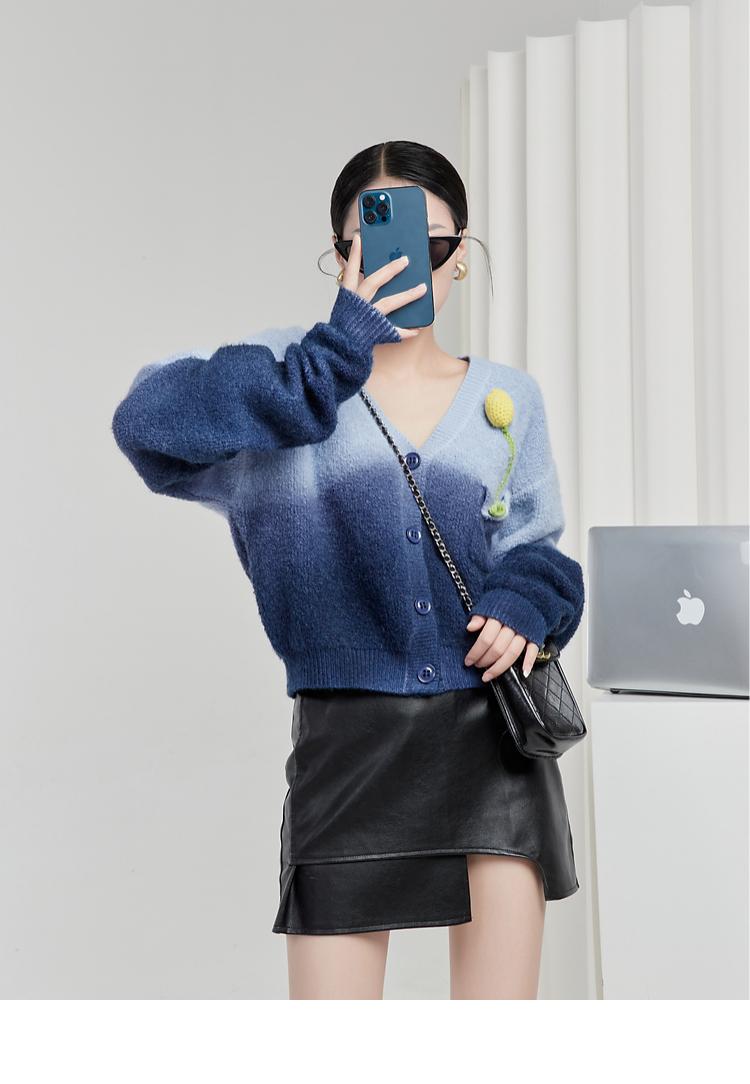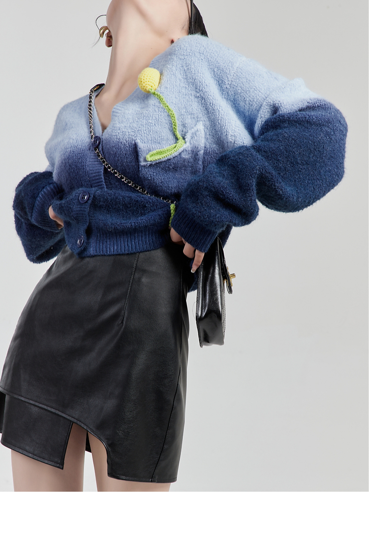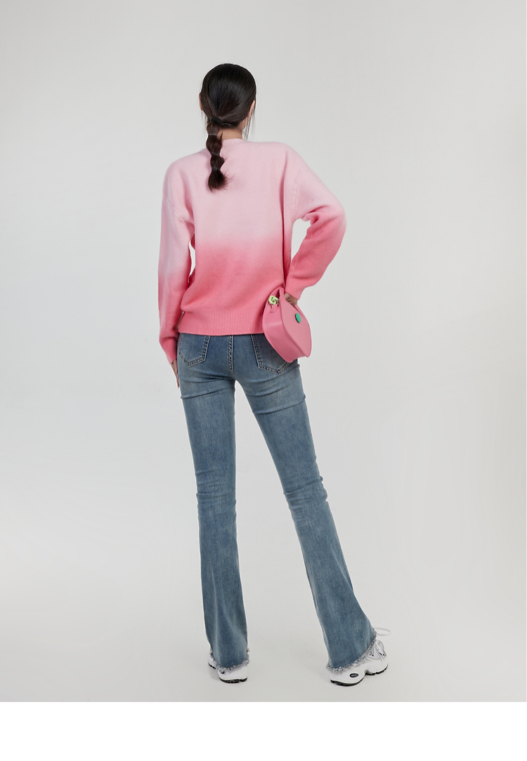 【現貨】高級感超好看毛衣法式鬱金香花朵漸層色寬鬆慵懶針織衫女