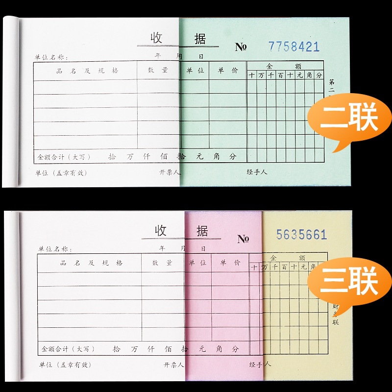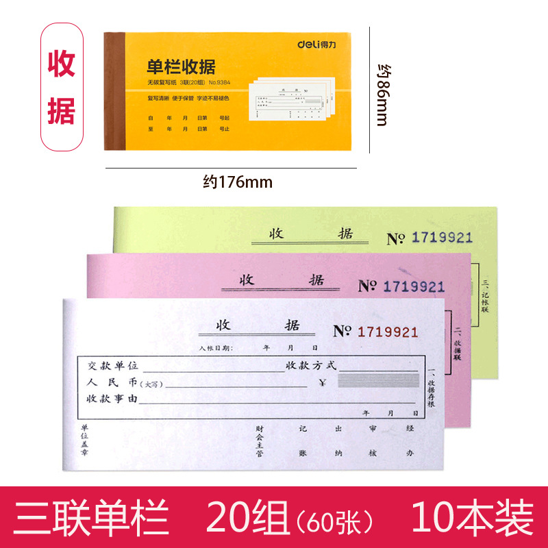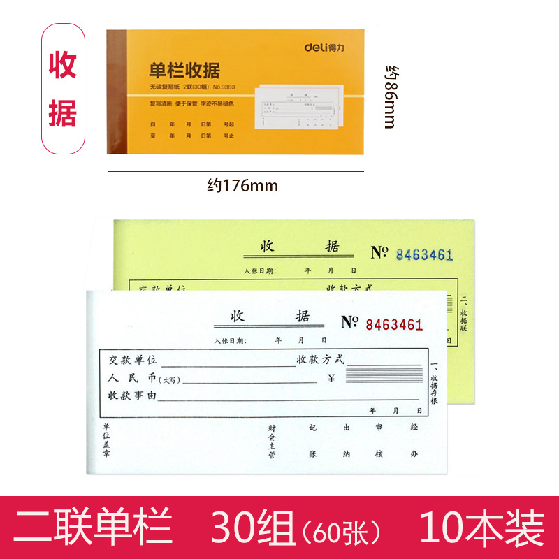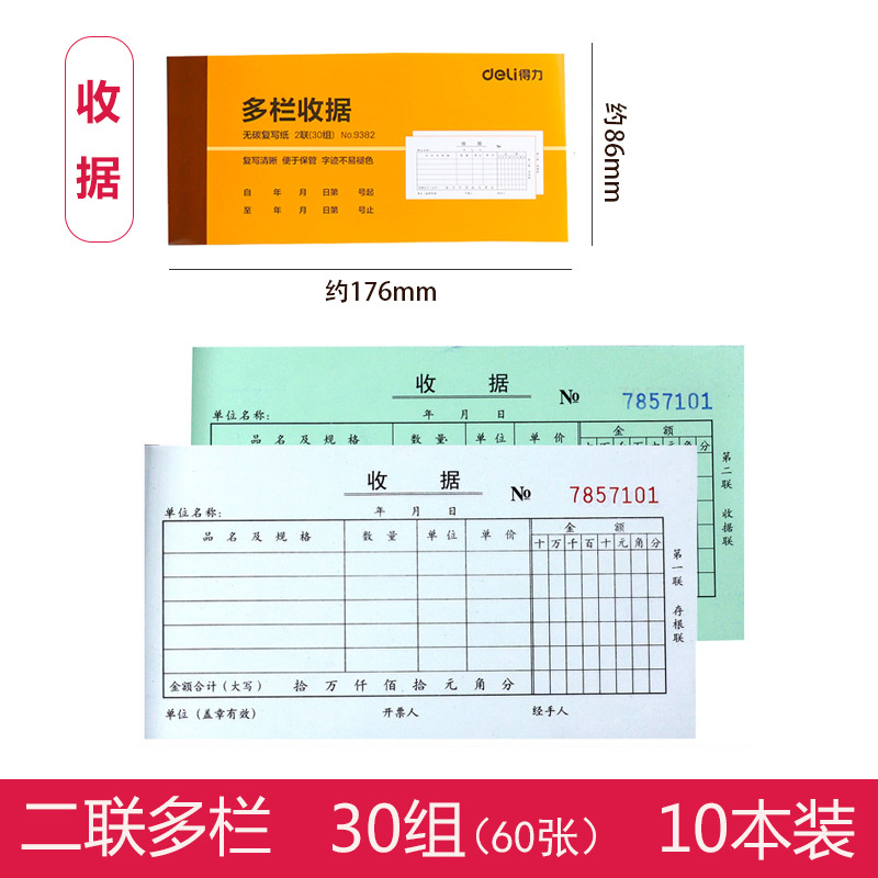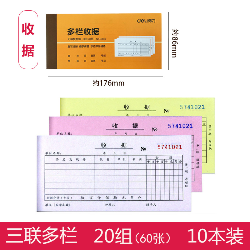 得力9384二联三联收据本无碳复写财务单栏多栏收据单据收款收据单
