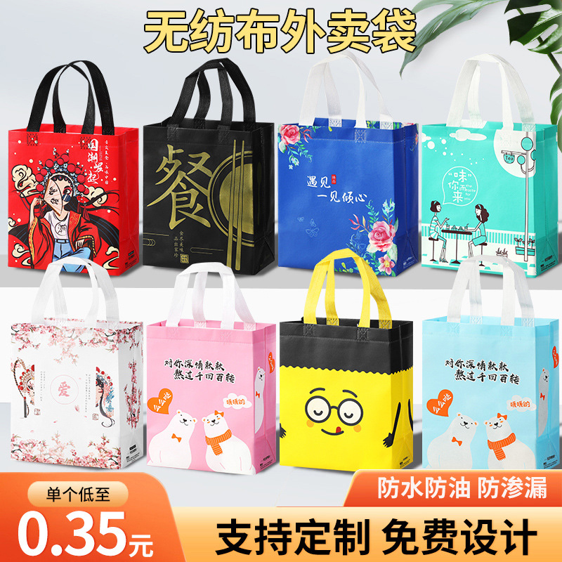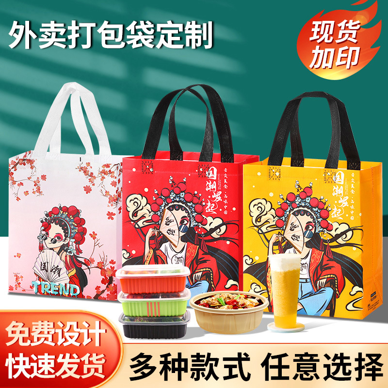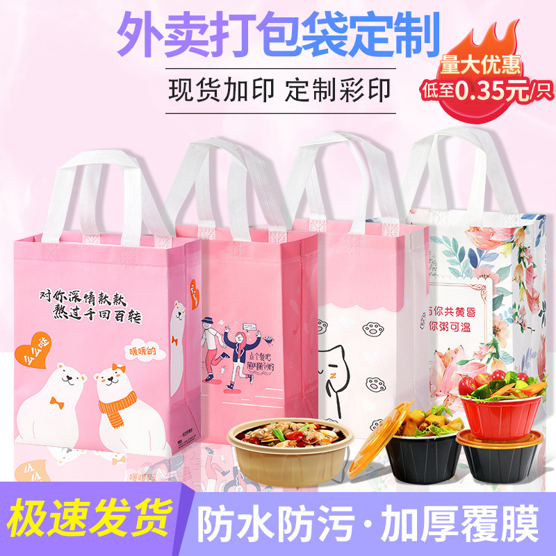 外卖打包袋LOGO保温覆膜无纺布包装袋烧烤餐饮防水粥手提铝箔