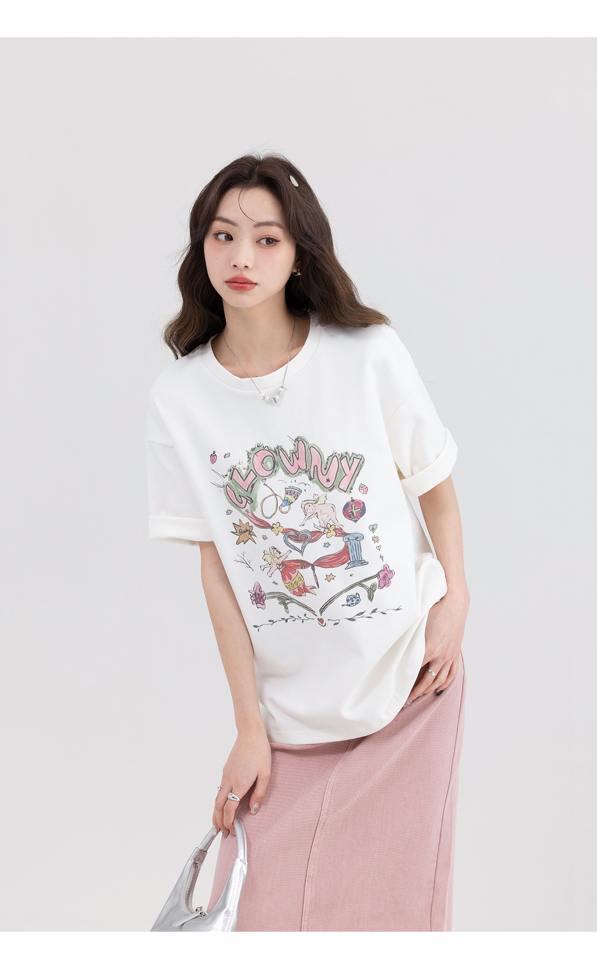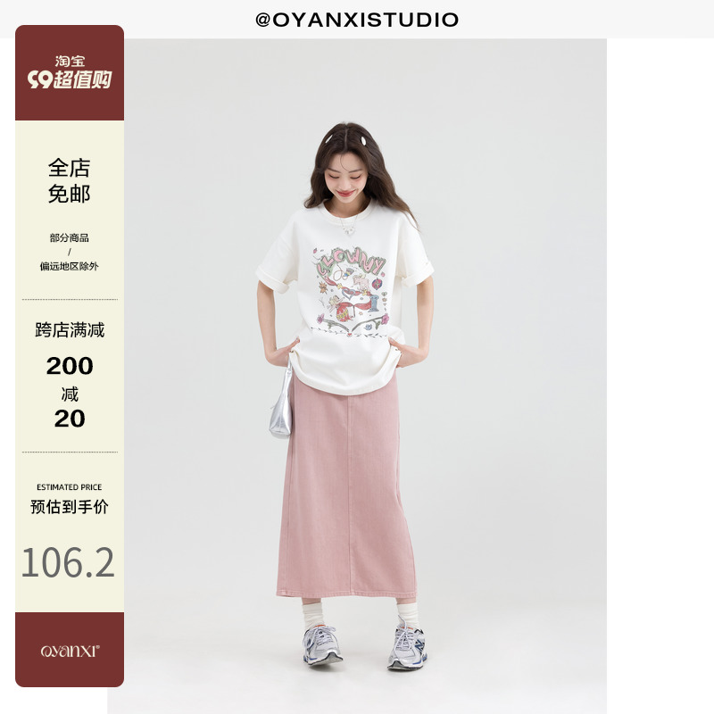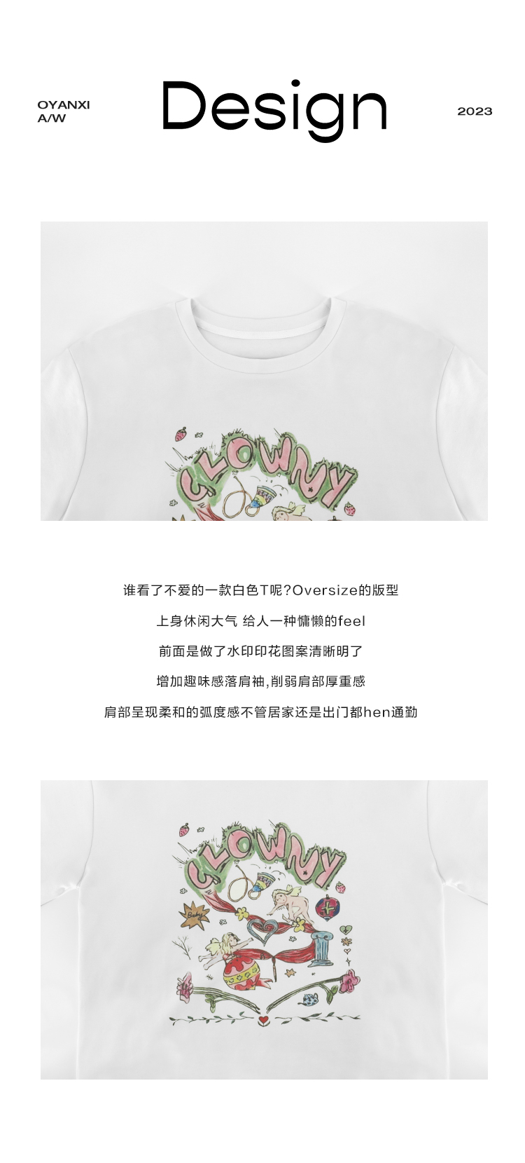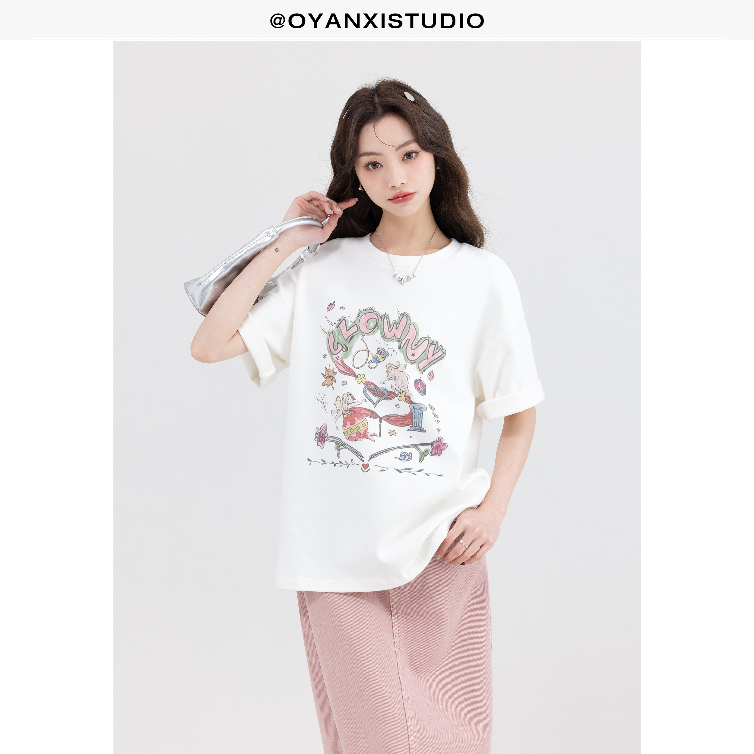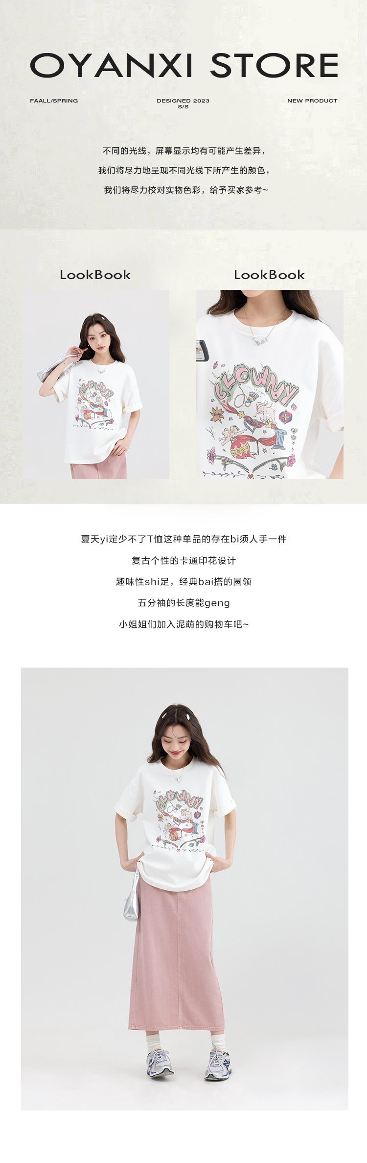 歐陽喜 春季慵懶休閒寬鬆印花上衣通勤百搭小個子時尚顯瘦T恤套裝