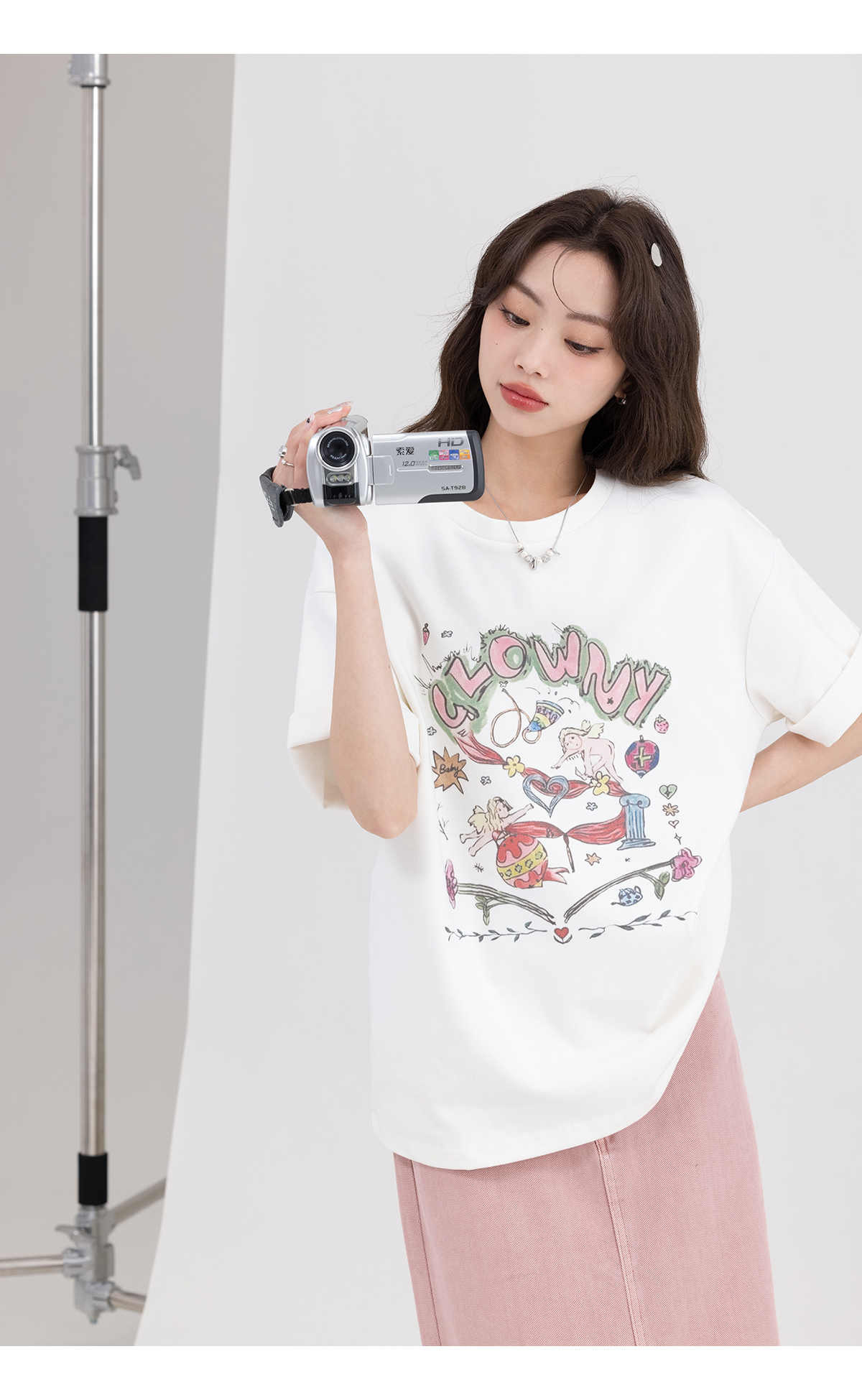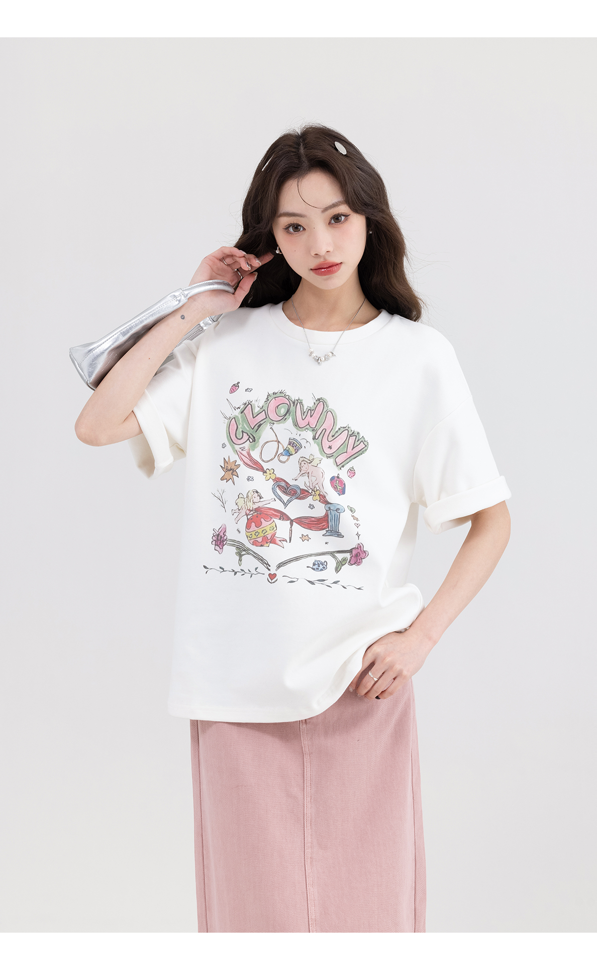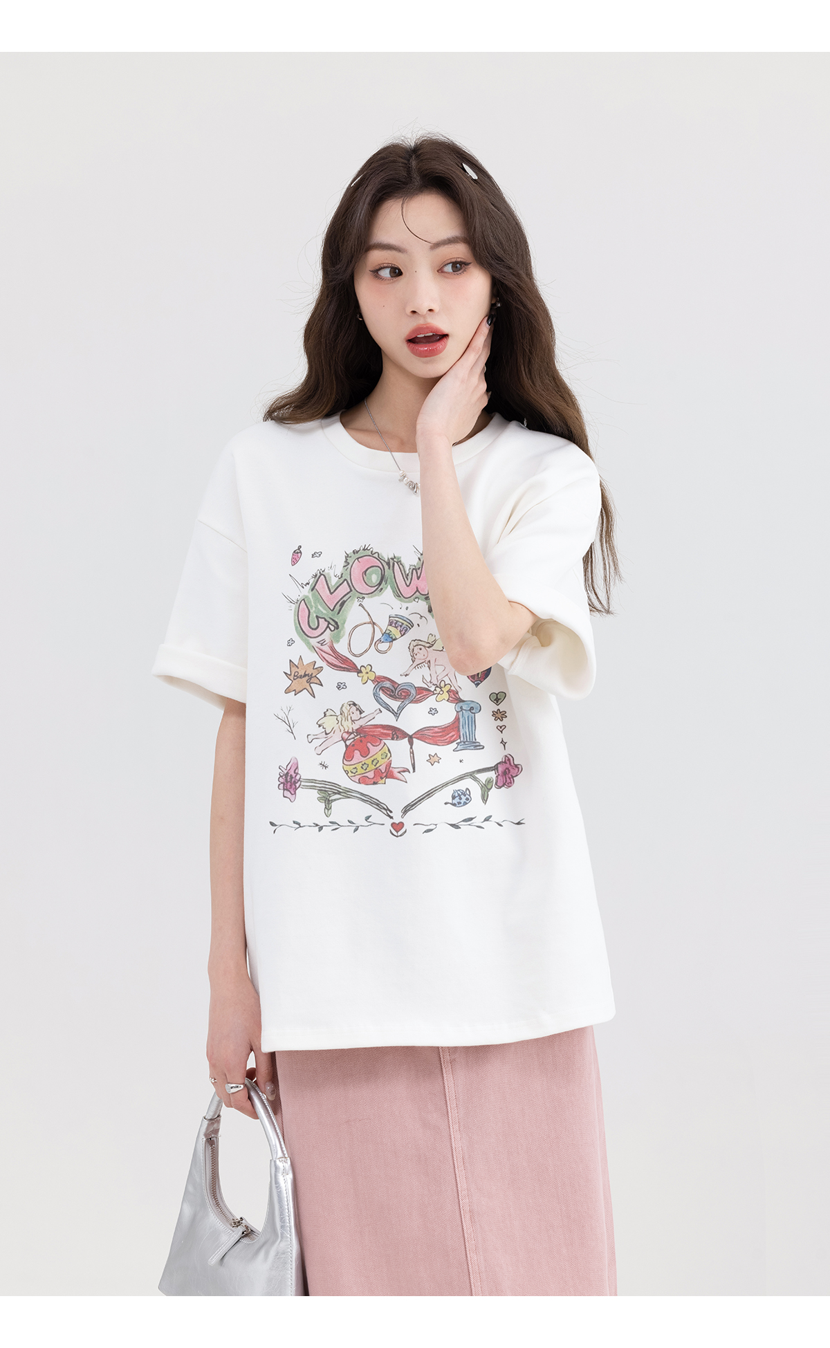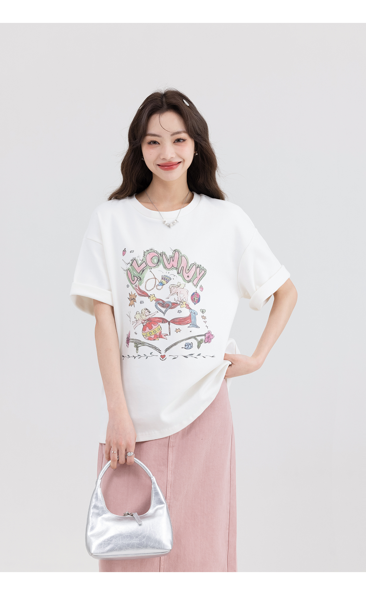 歐陽喜 春季慵懶休閒寬鬆印花上衣通勤百搭小個子時尚顯瘦T恤套裝