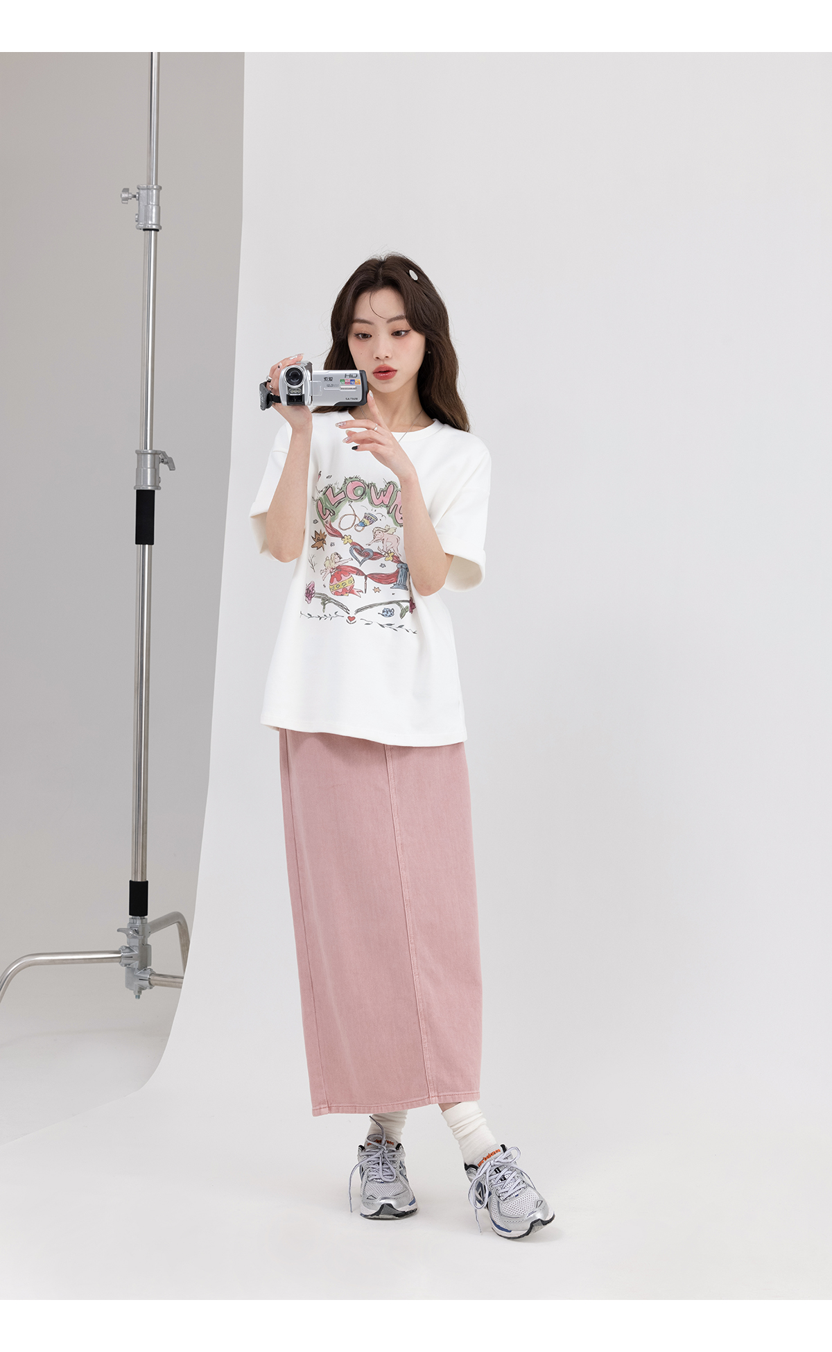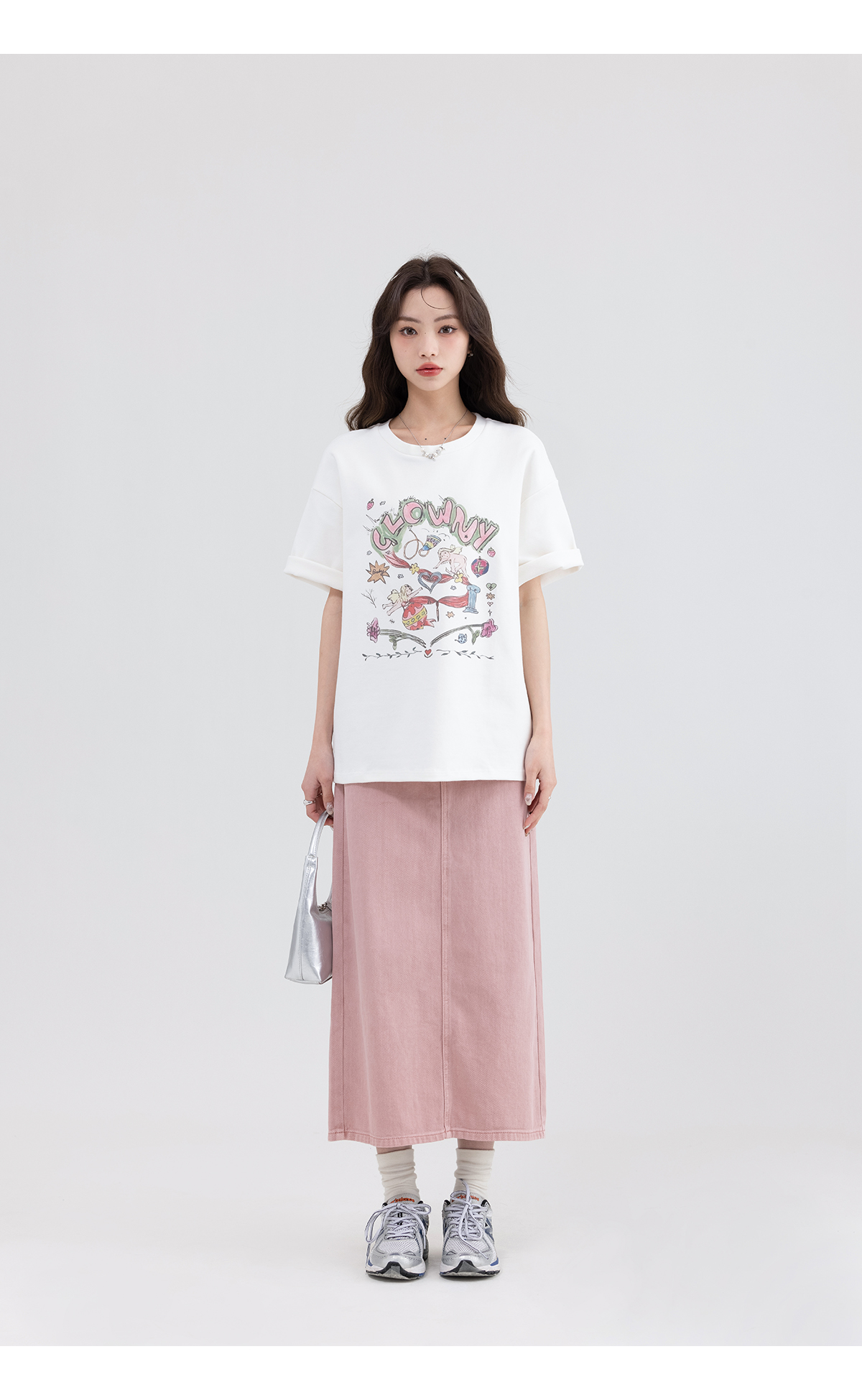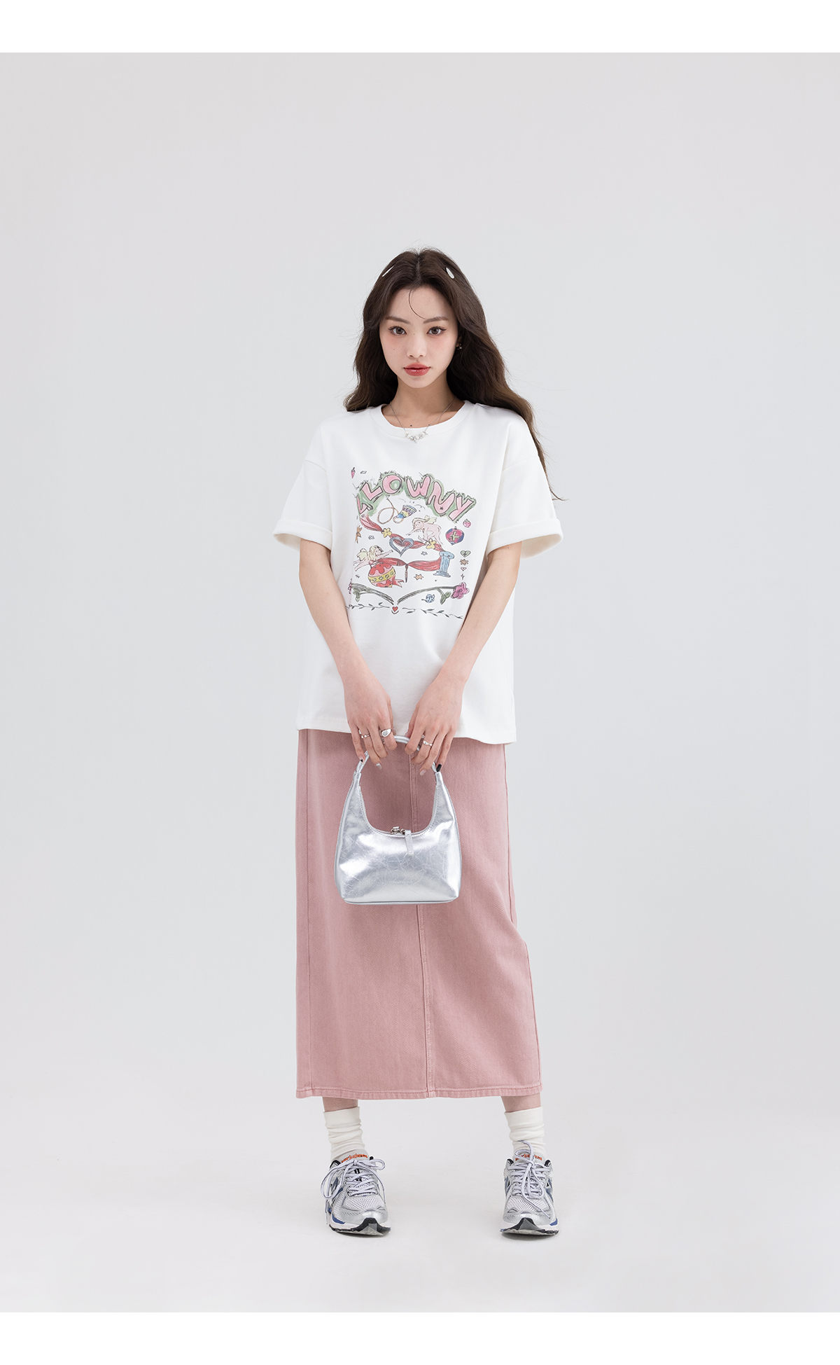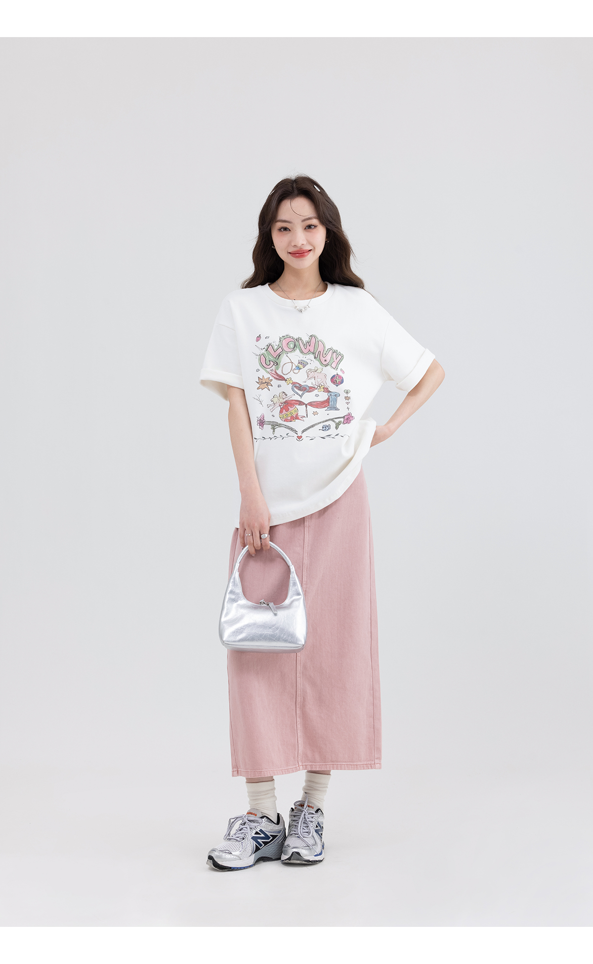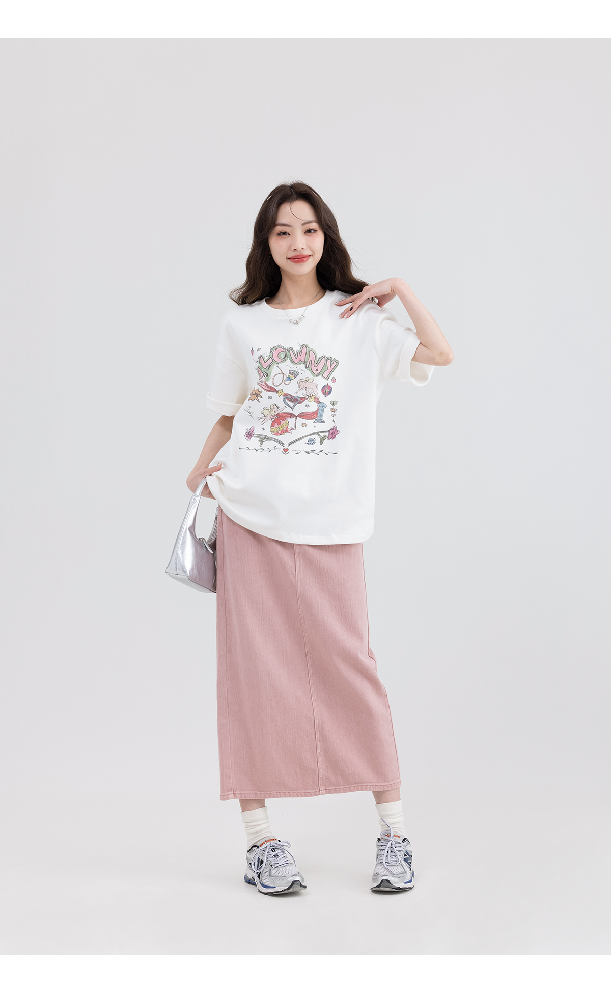 歐陽喜 春季慵懶休閒寬鬆印花上衣通勤百搭小個子時尚顯瘦T恤套裝