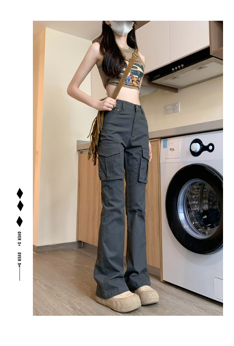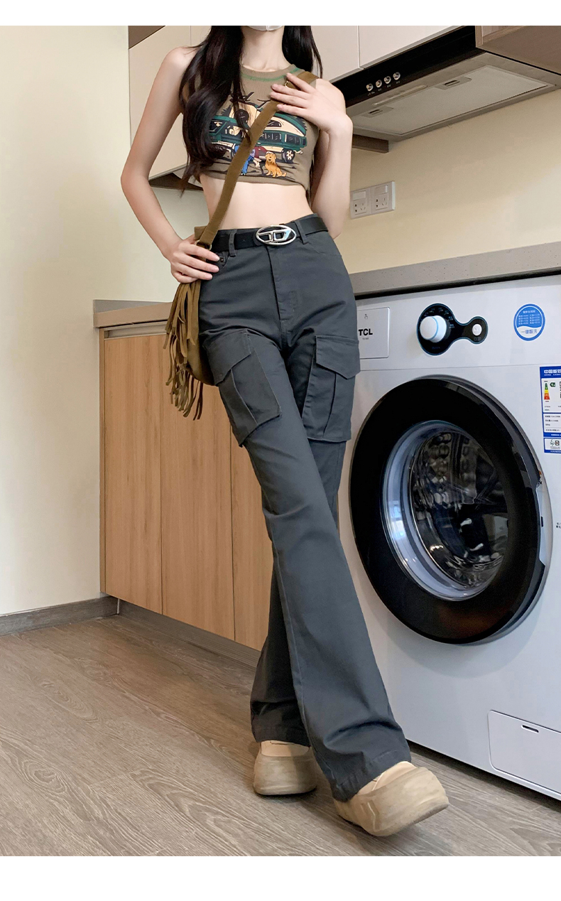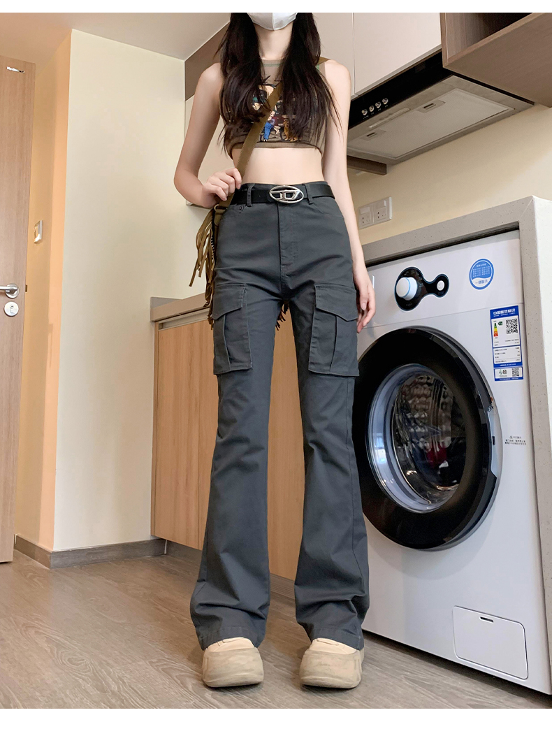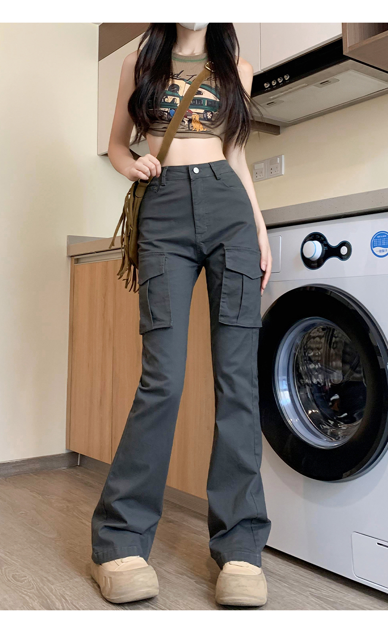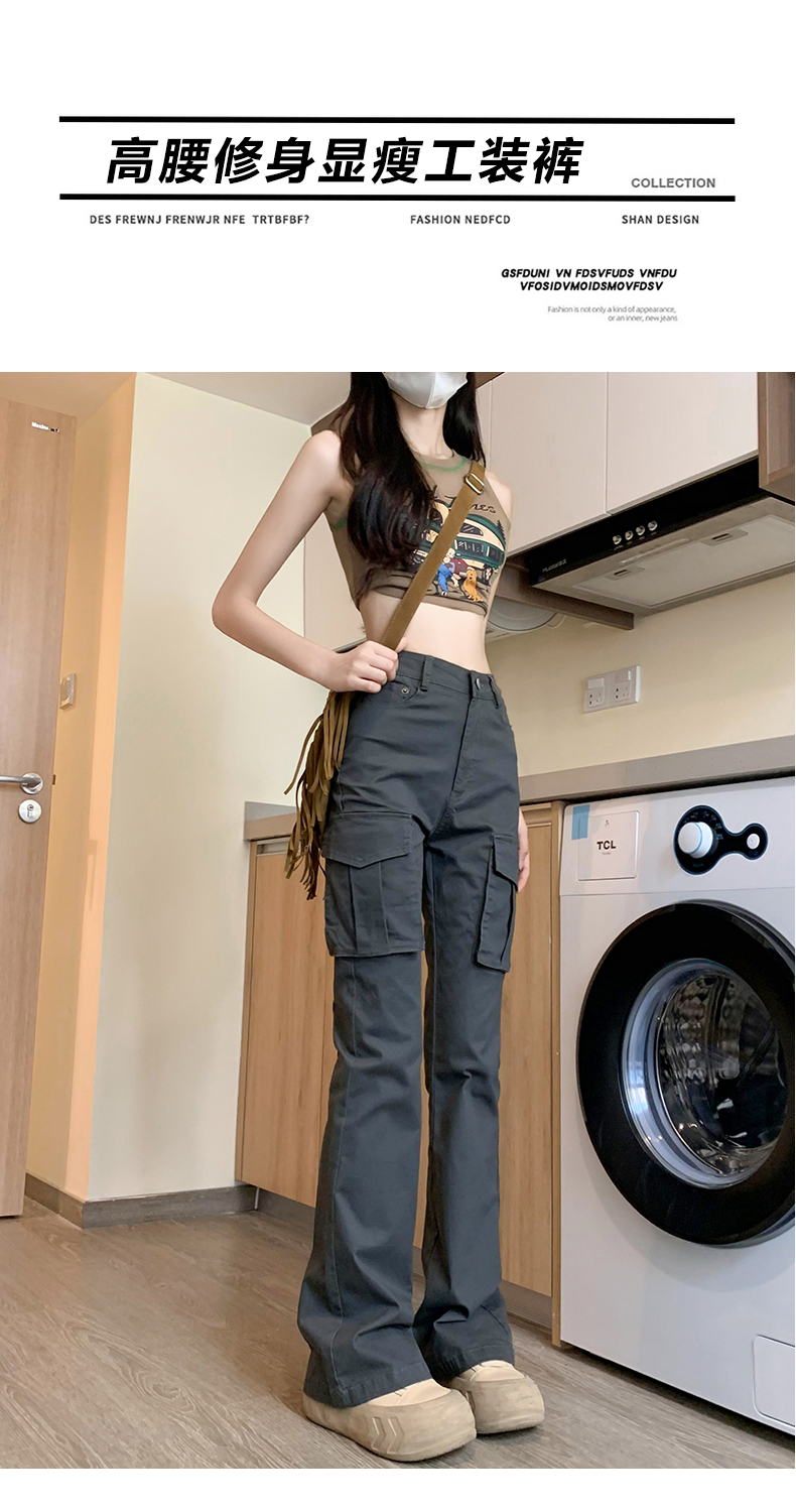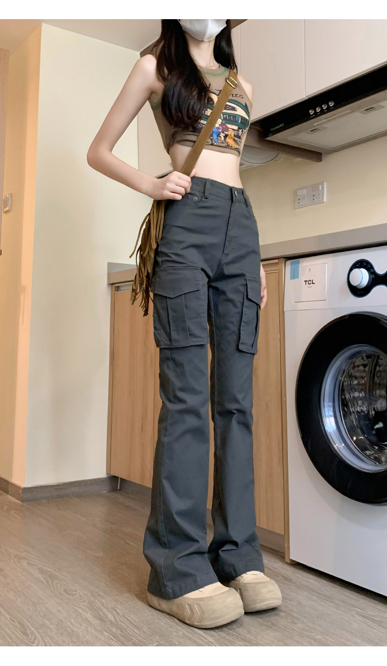 美式微喇叭工裝褲女夏季2023年新款高腰顯瘦復古辣妹垂感馬蹄褲子