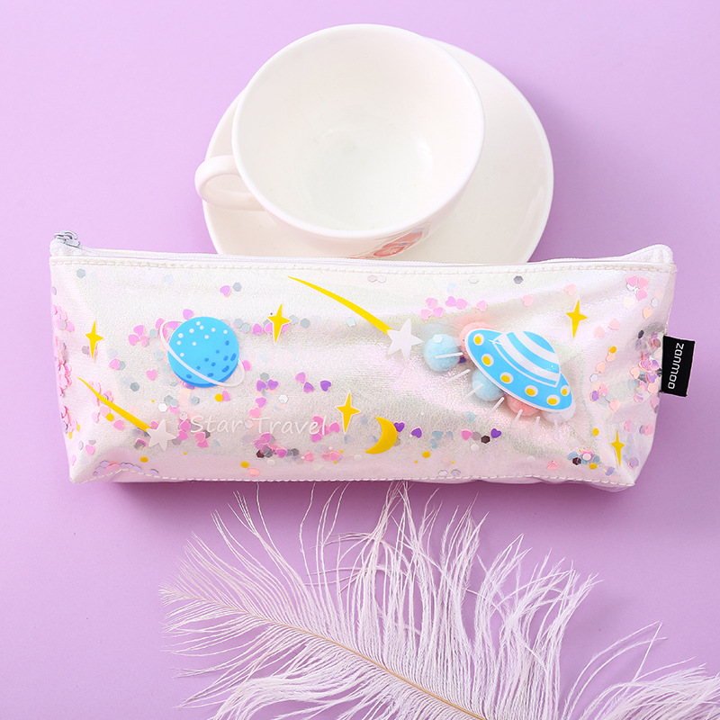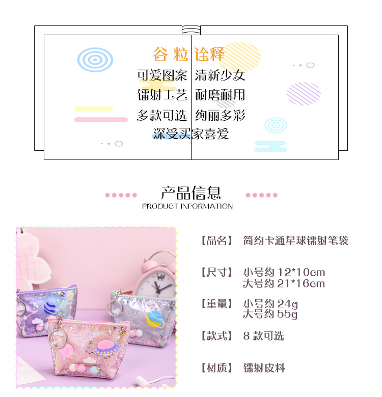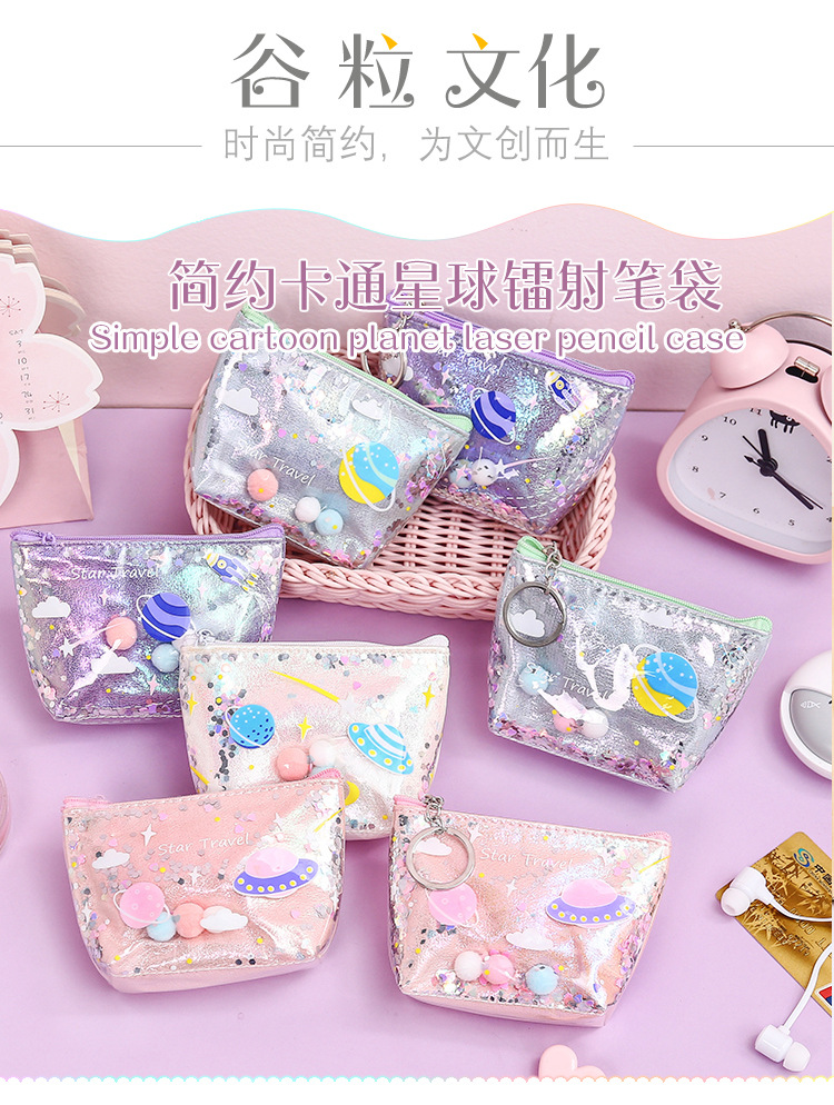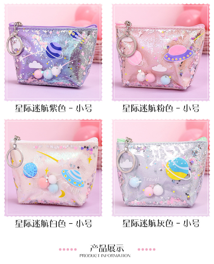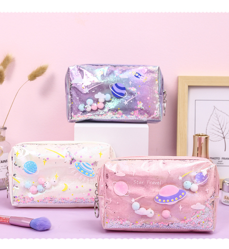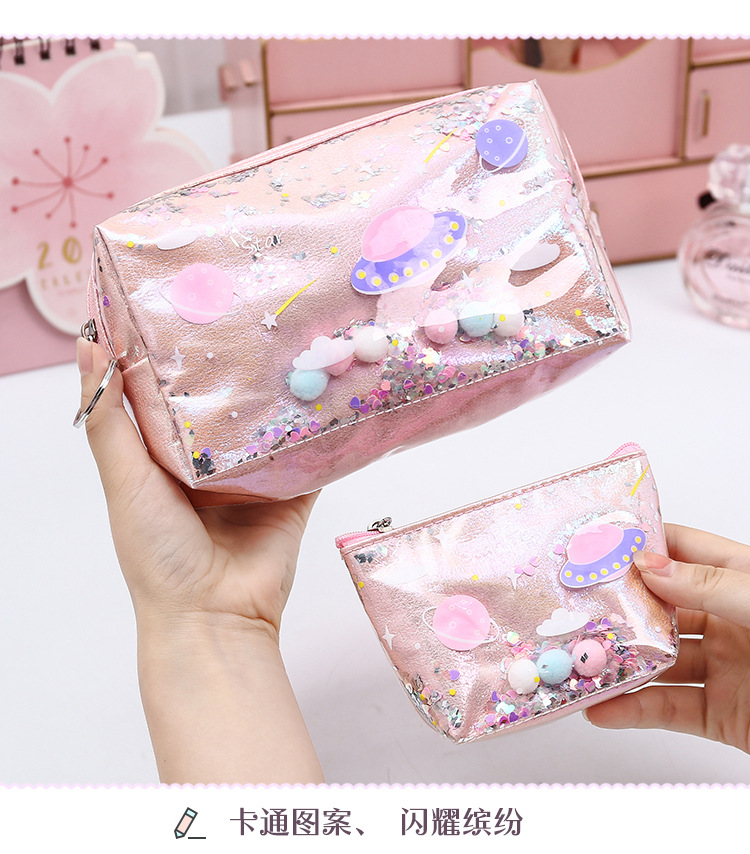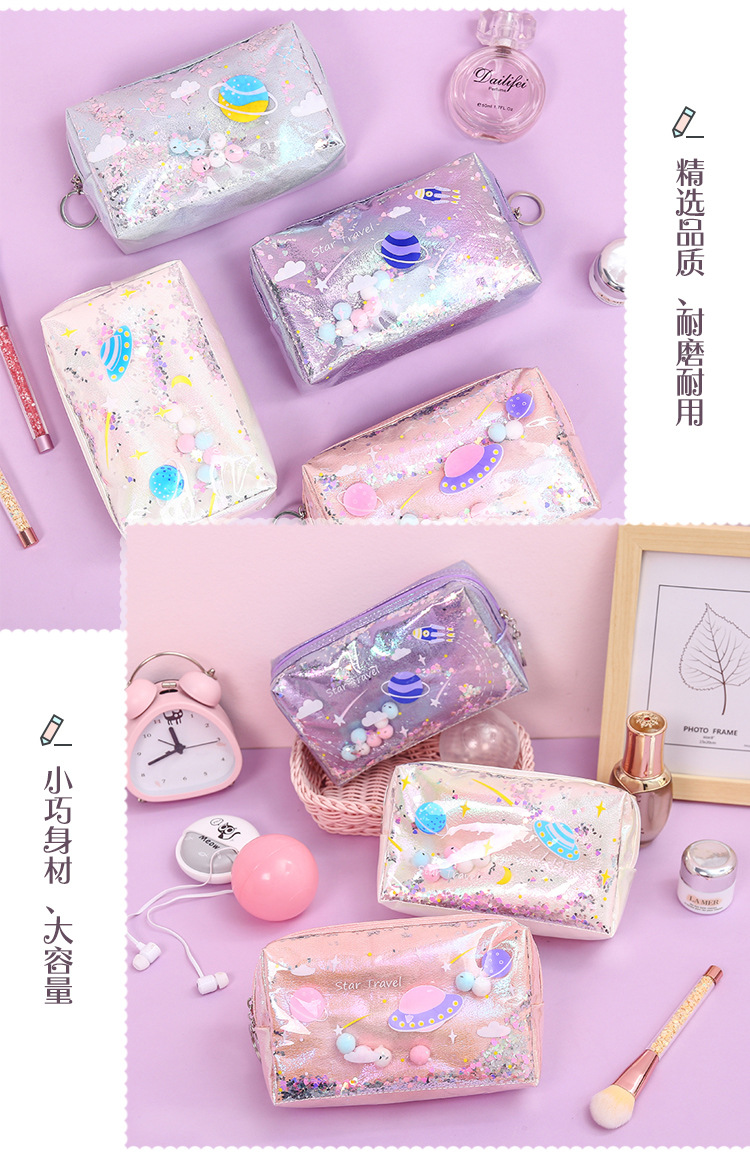 清新可爱简约时尚镭射化妆包流沙零钱包收纳包耐用防水便携手拿包