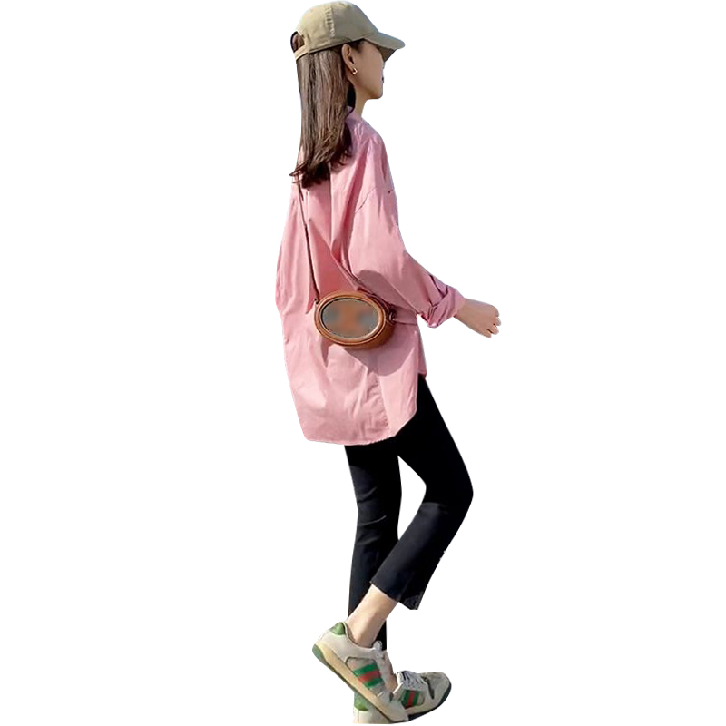甜妹風粉色長袖襯衫2023新款夏秋季女減齡洋派百搭防曬衣薄款外穿
