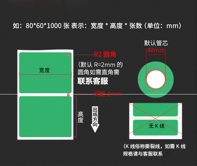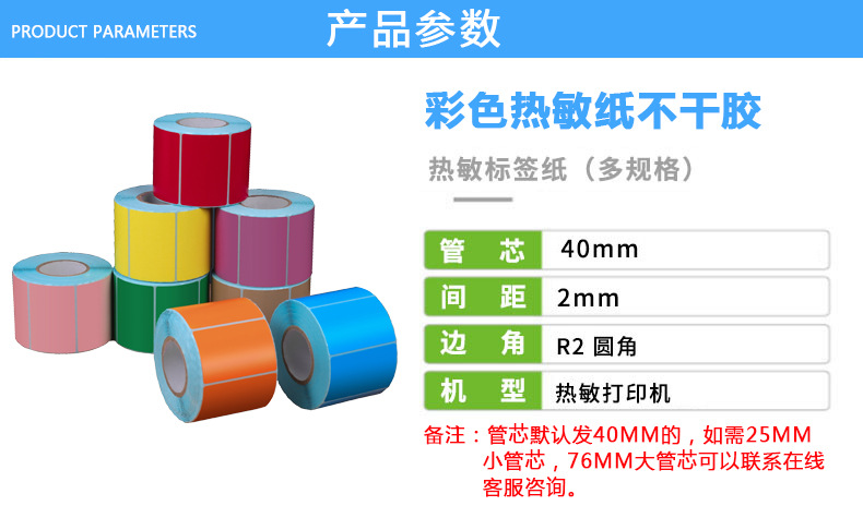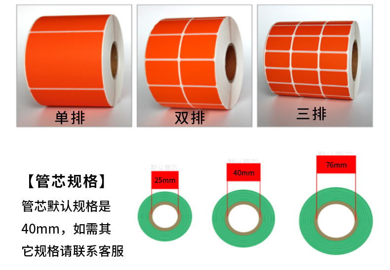 管芯:默认发中管芯40mm,如需小管芯25mm,大管芯76mm,或者其他规格的管芯,请联系在线客服咨询定制!