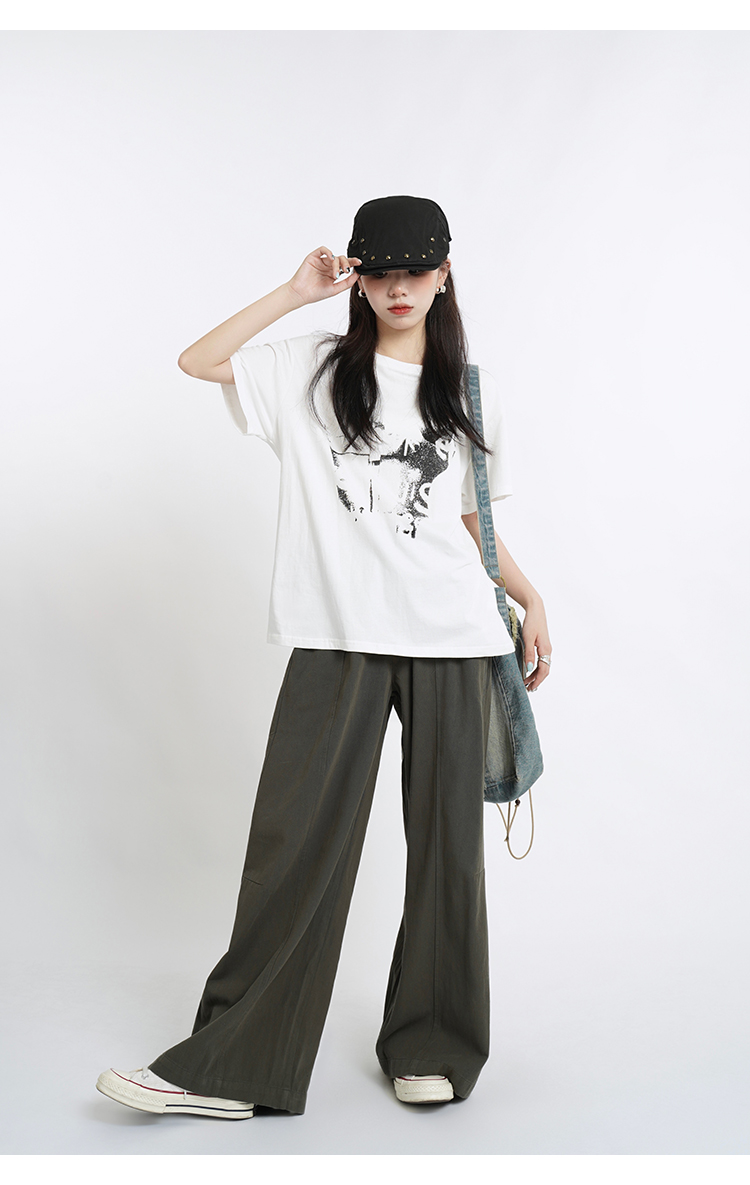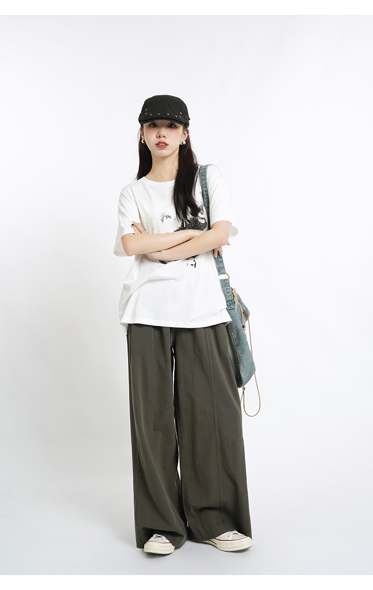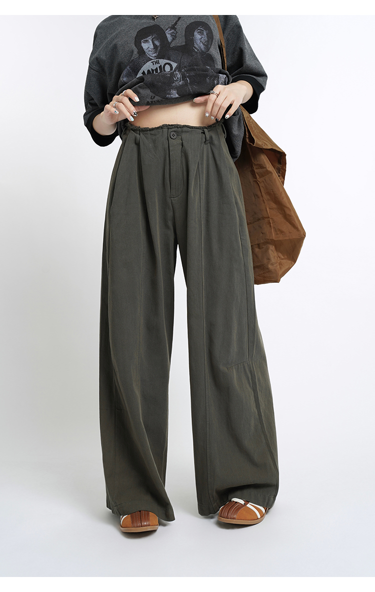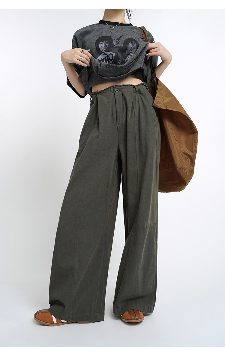 蘇菜羅蔔 小眾復古高腰直筒寬褲女夏季垂感長褲寬鬆顯瘦休閒褲