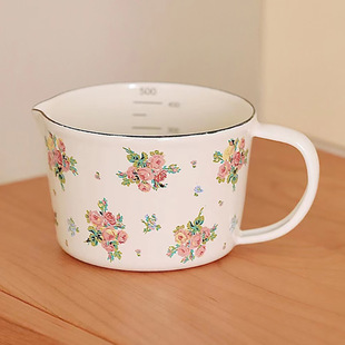 老麦【自制】法式复古小碎花搪瓷烘培量杯牛奶杯早餐杯水杯打蛋碗
