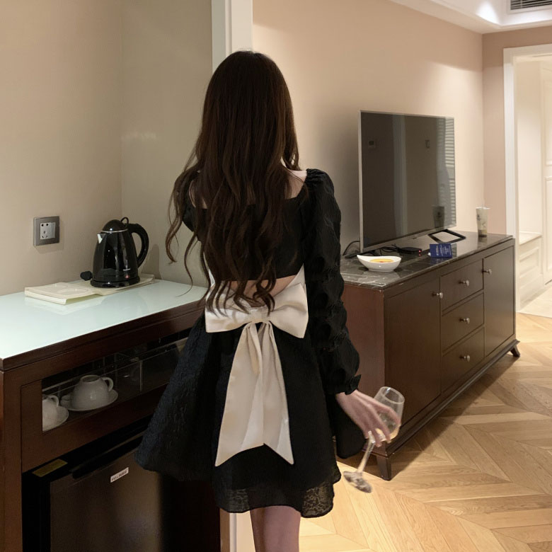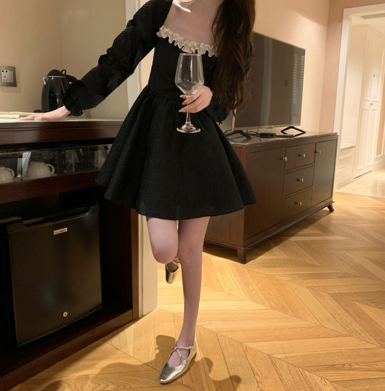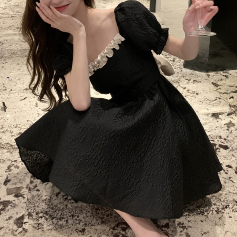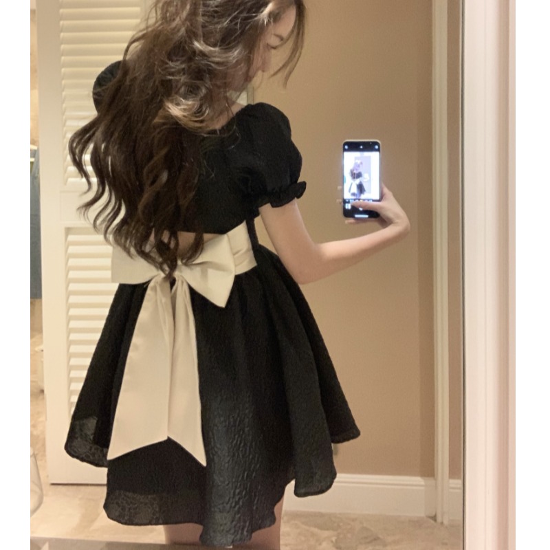 法式赫本風黑色洋裝凡爾賽生日小禮服在逃公主裙秋小個子短裙夏