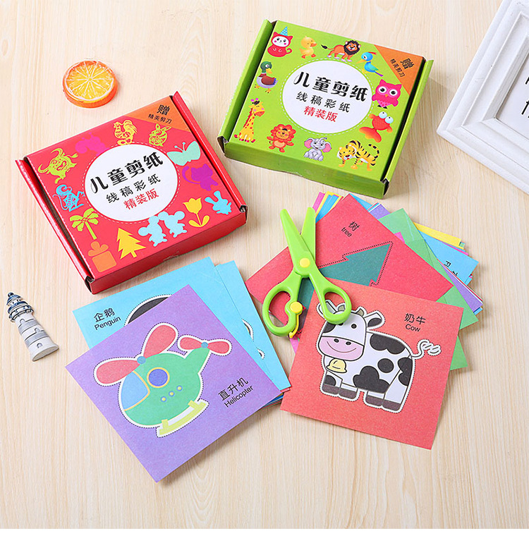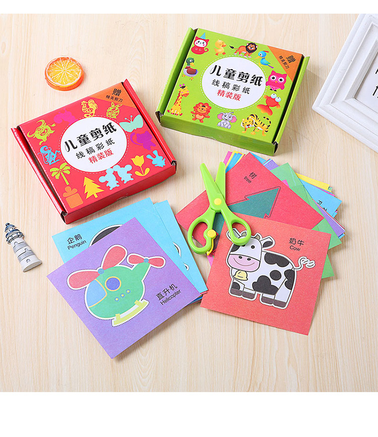 1:盒装96张彩印.送剪刀一把.全部彩色图案.沿线剪成图案