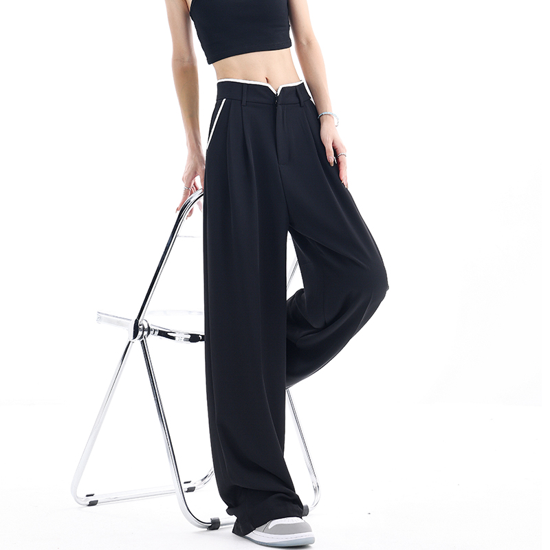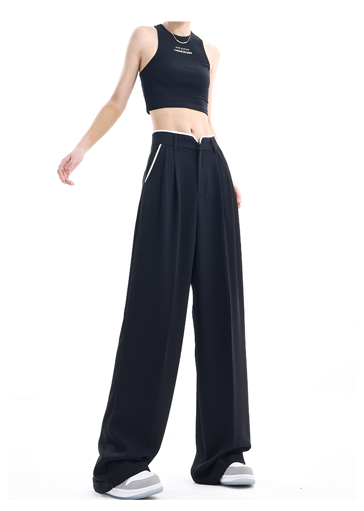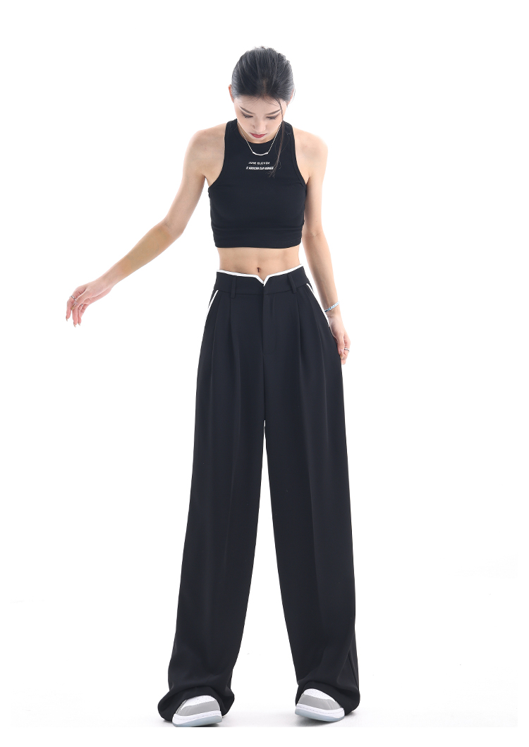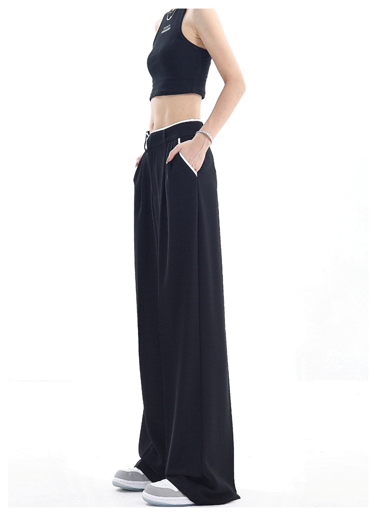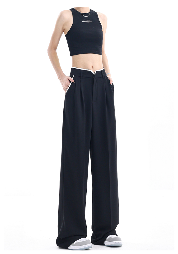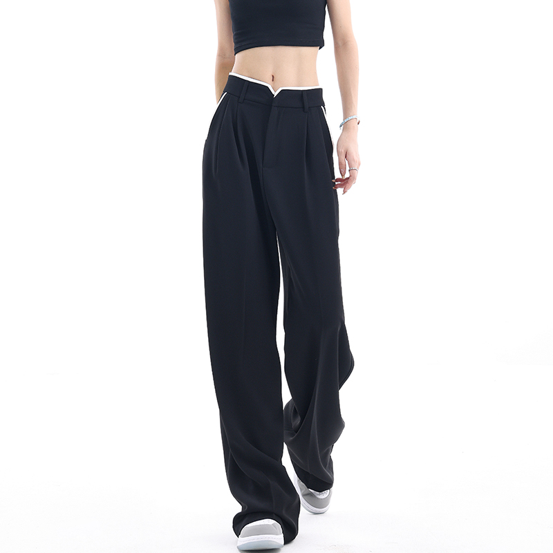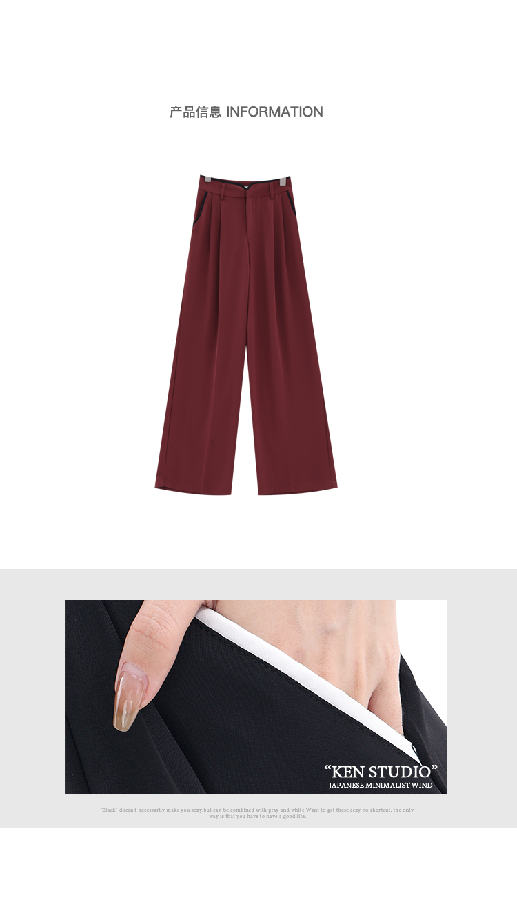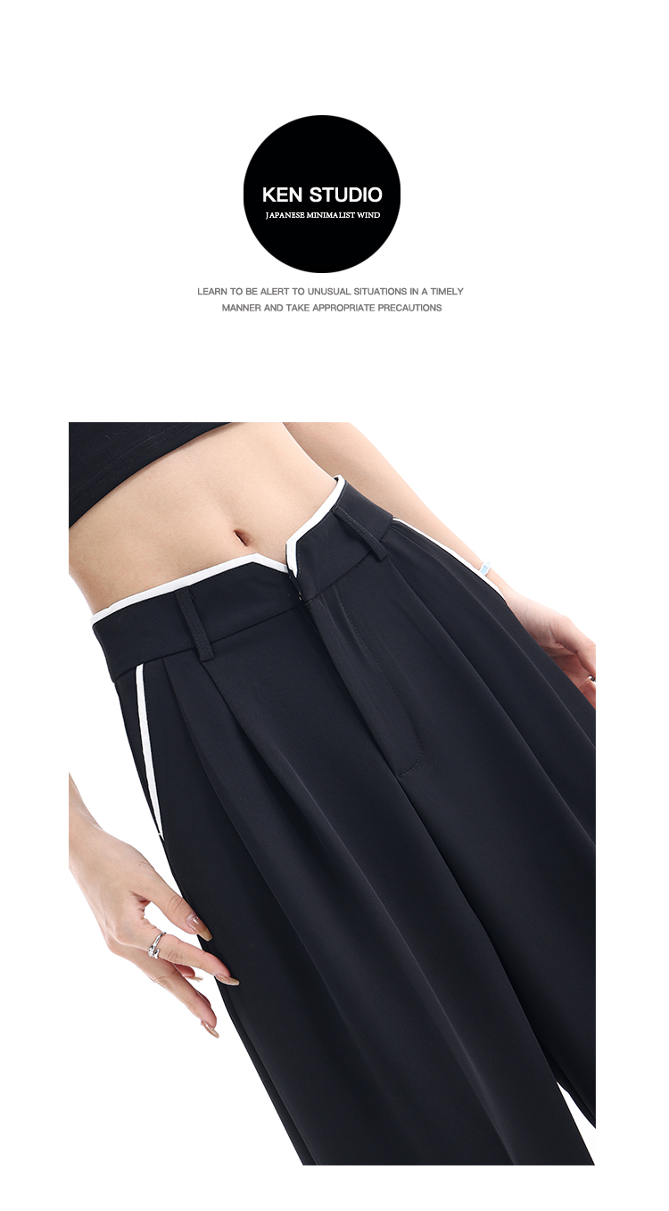 KEN STUDIO夏季新款闊腿西裝褲女拼接撞色設計感寬鬆休閒長褲褲子