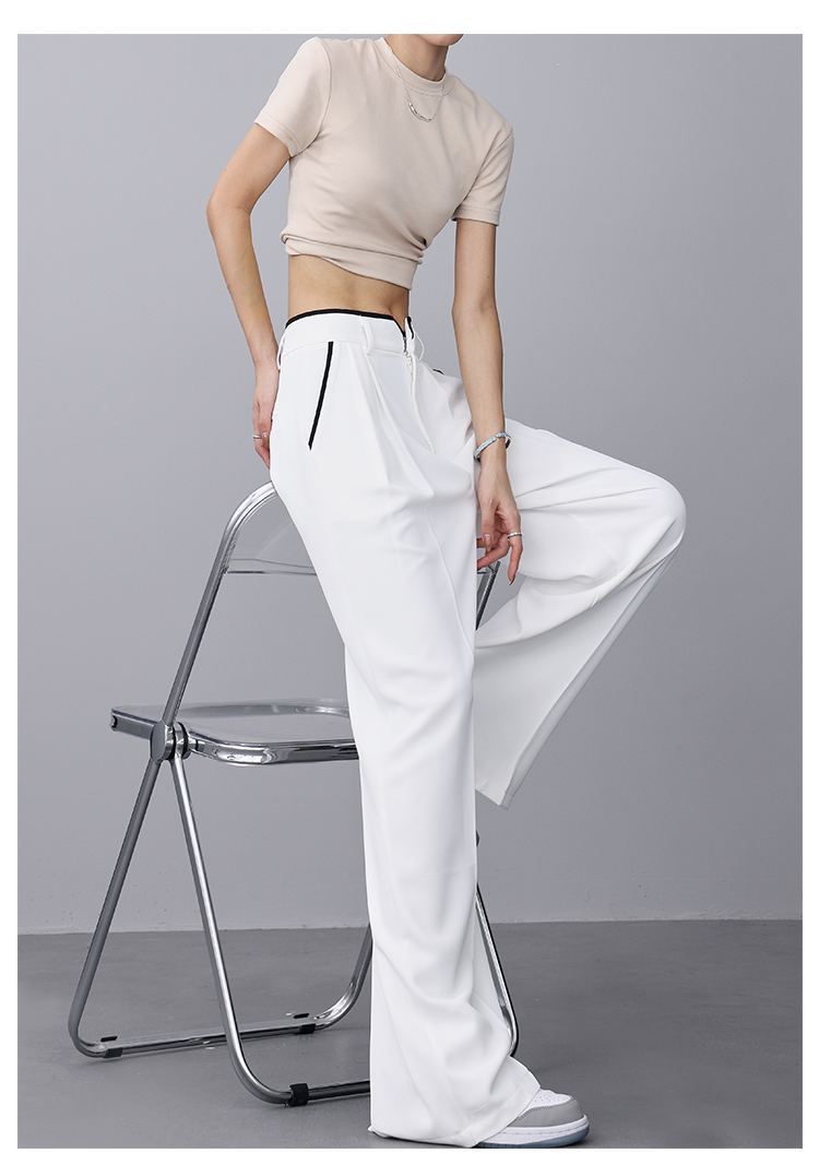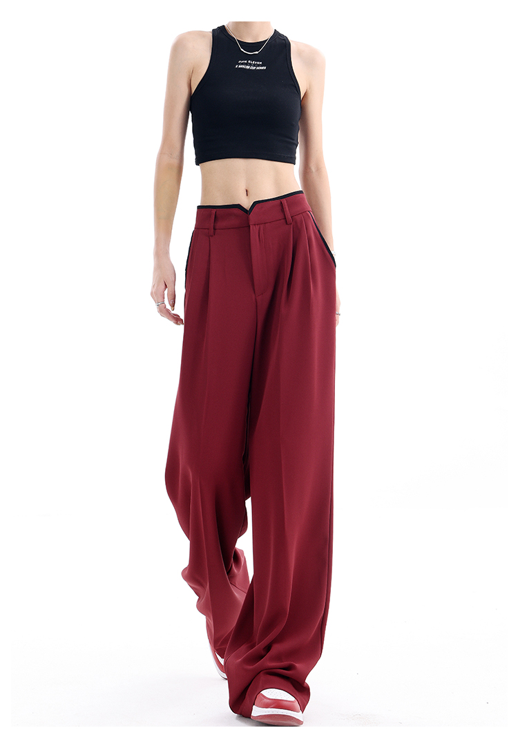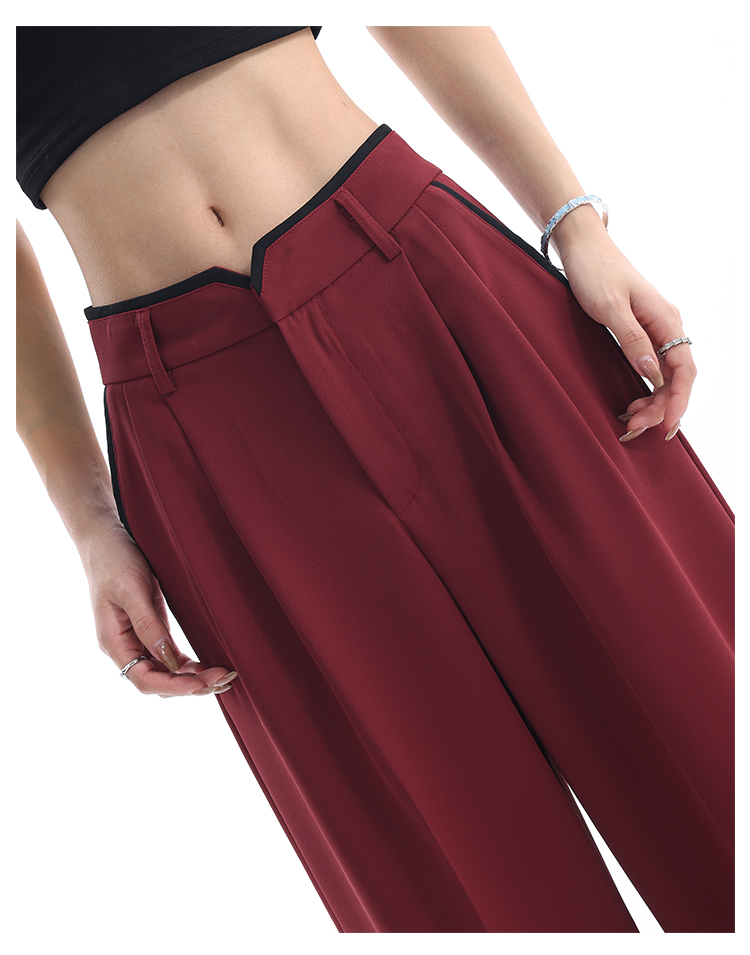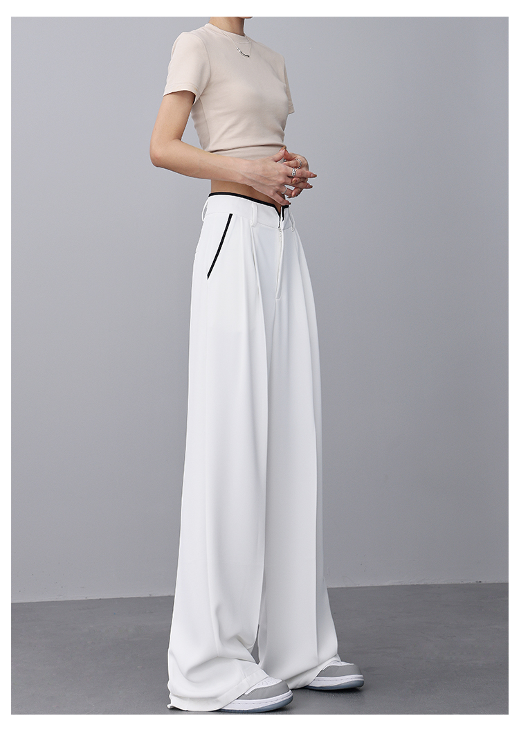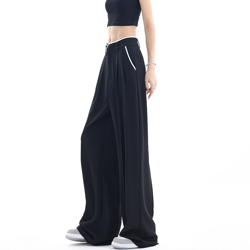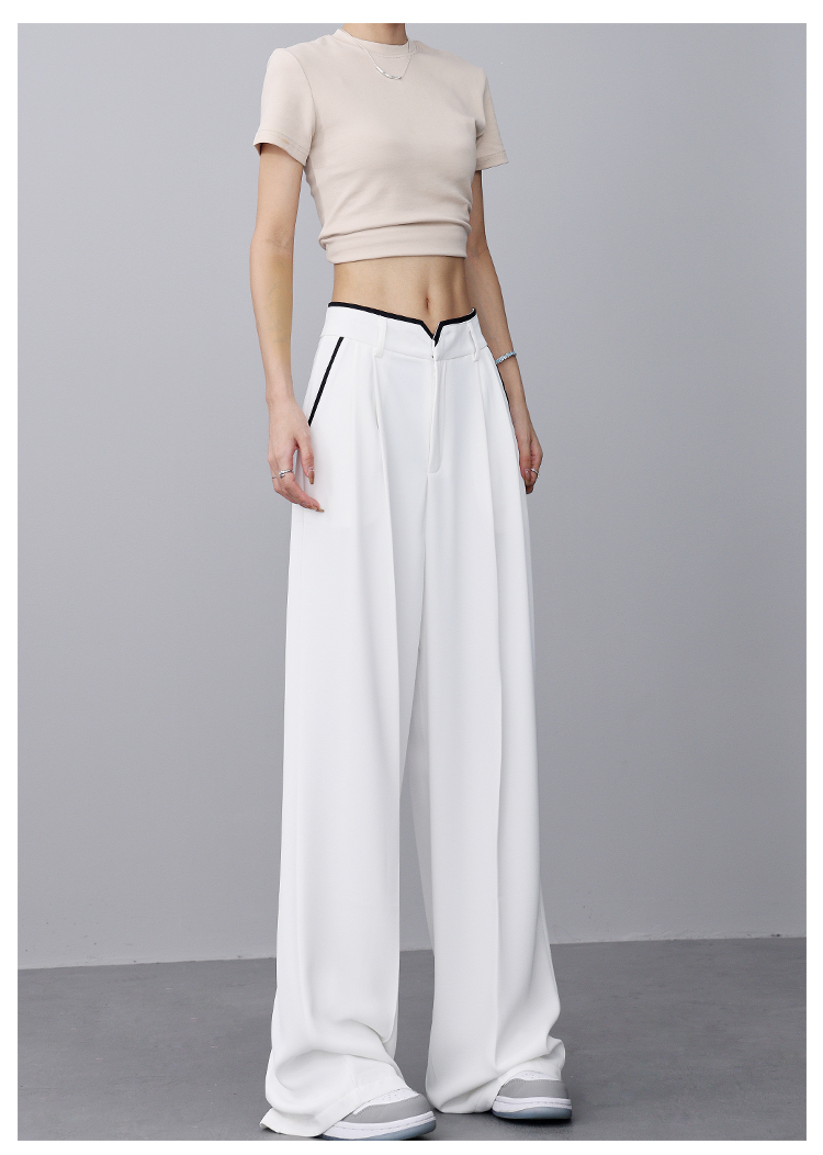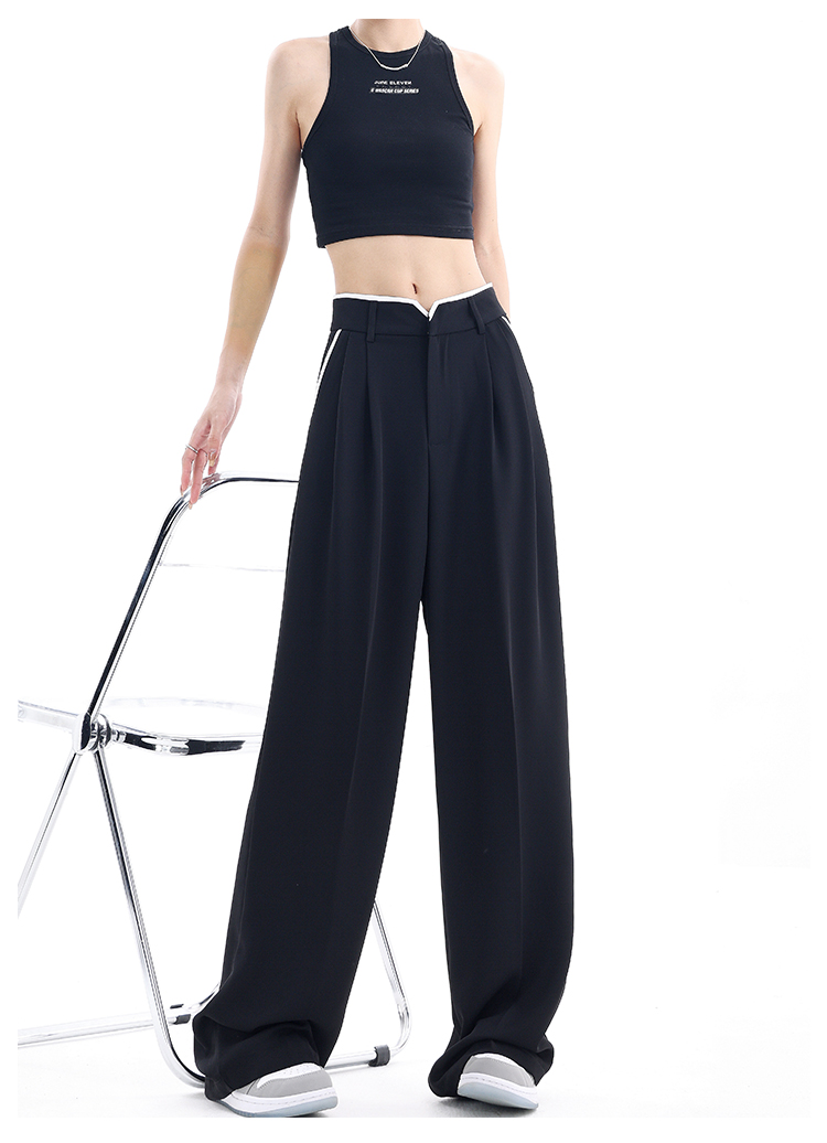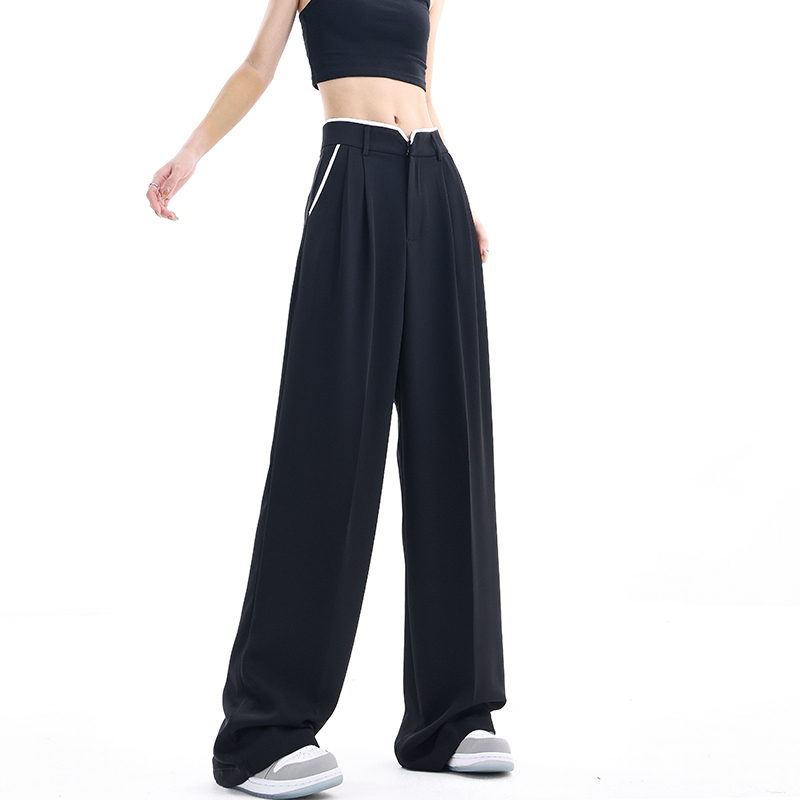KEN STUDIO夏季新款闊腿西裝褲女拼接撞色設計感寬鬆休閒長褲褲子