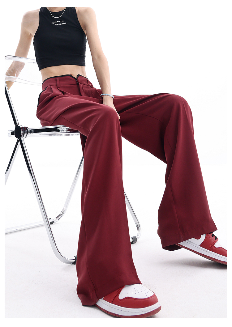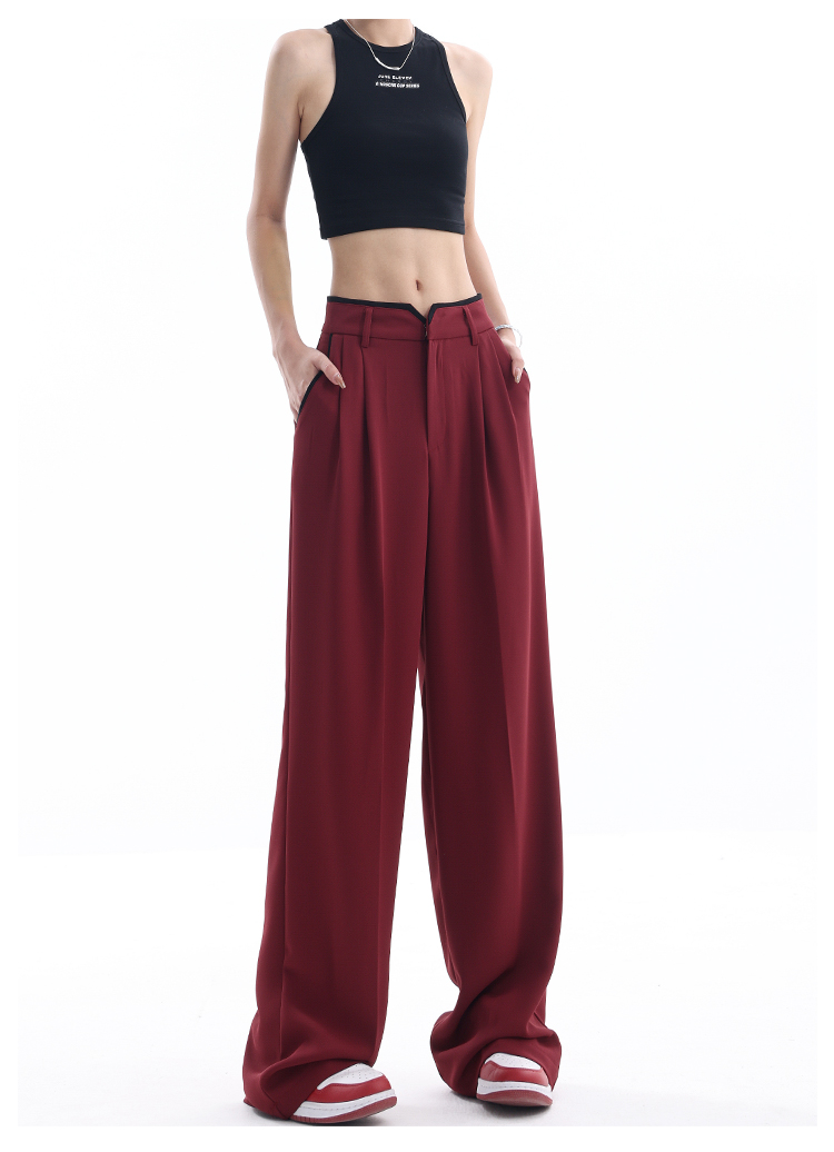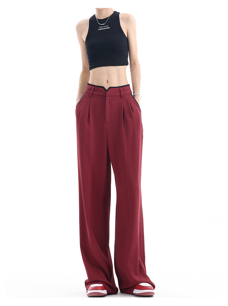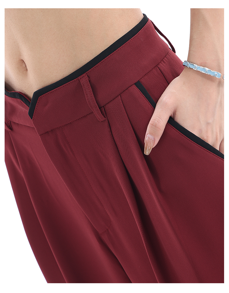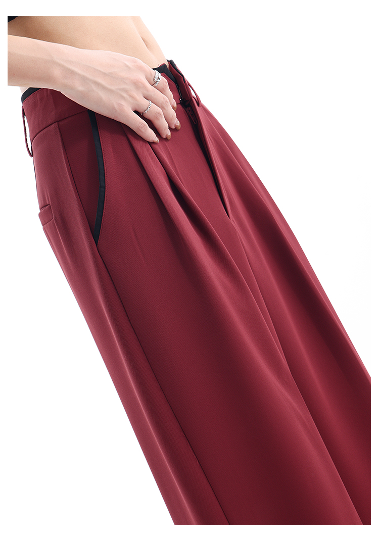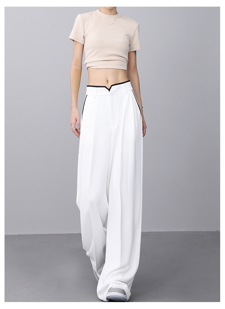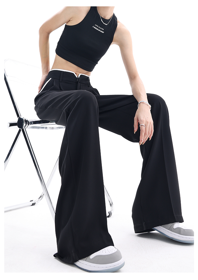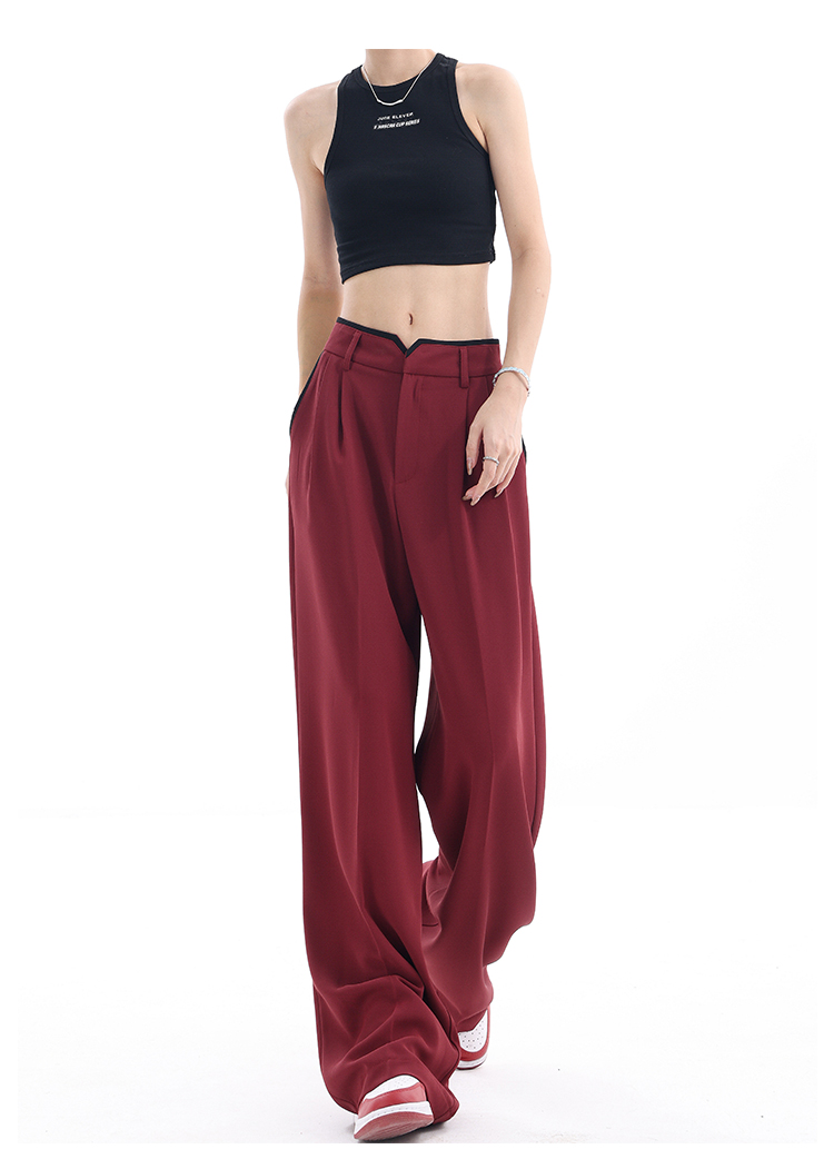 KEN STUDIO夏季新款闊腿西裝褲女拼接撞色設計感寬鬆休閒長褲褲子