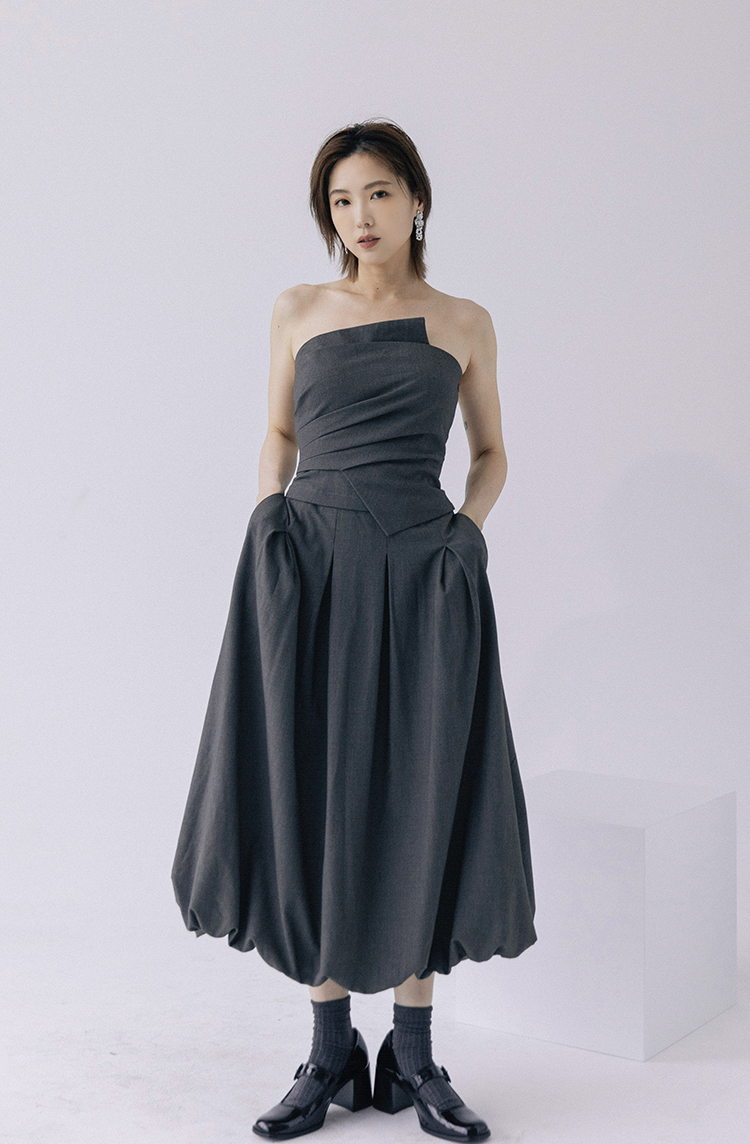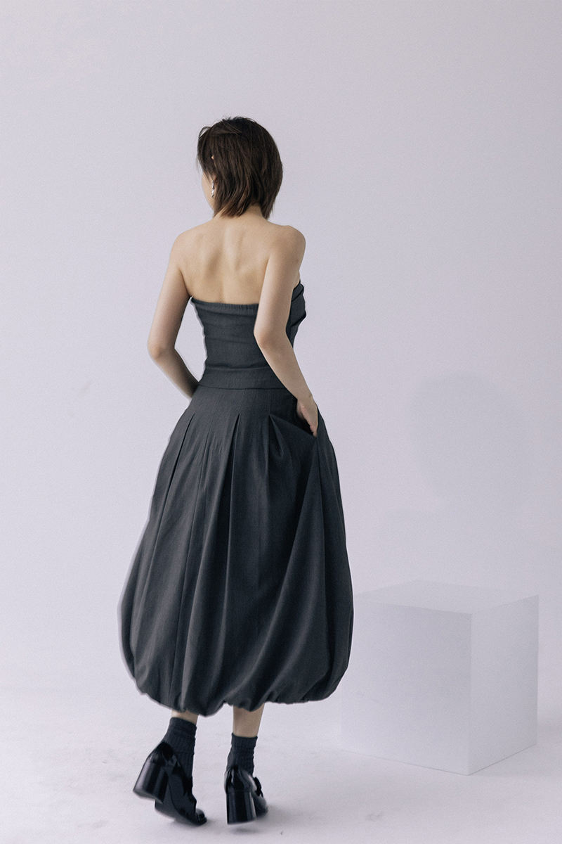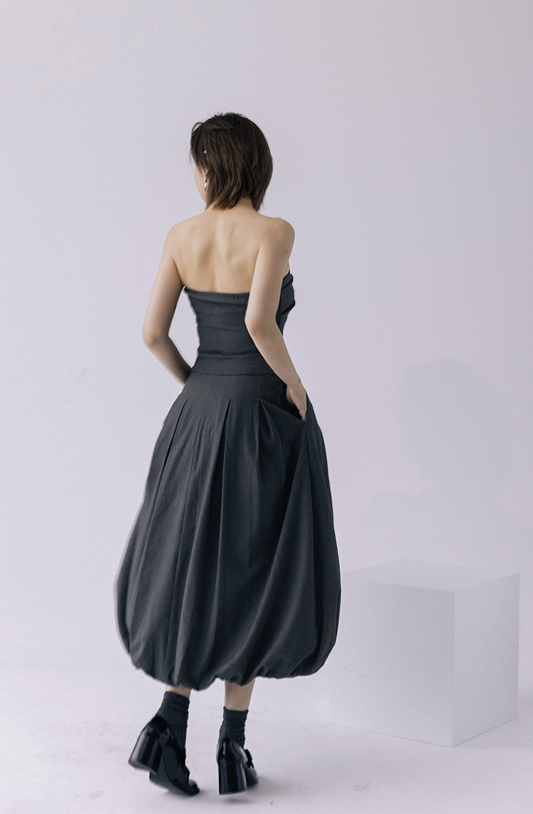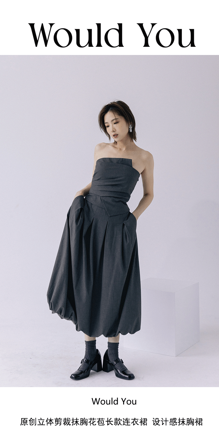 Would You原創立體剪裁抹胸花苞長版洋裝 設計感抹胸裙