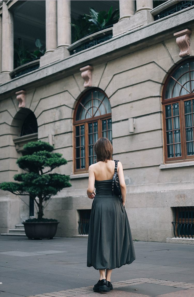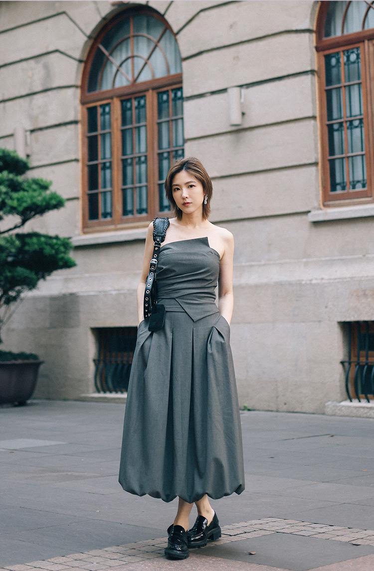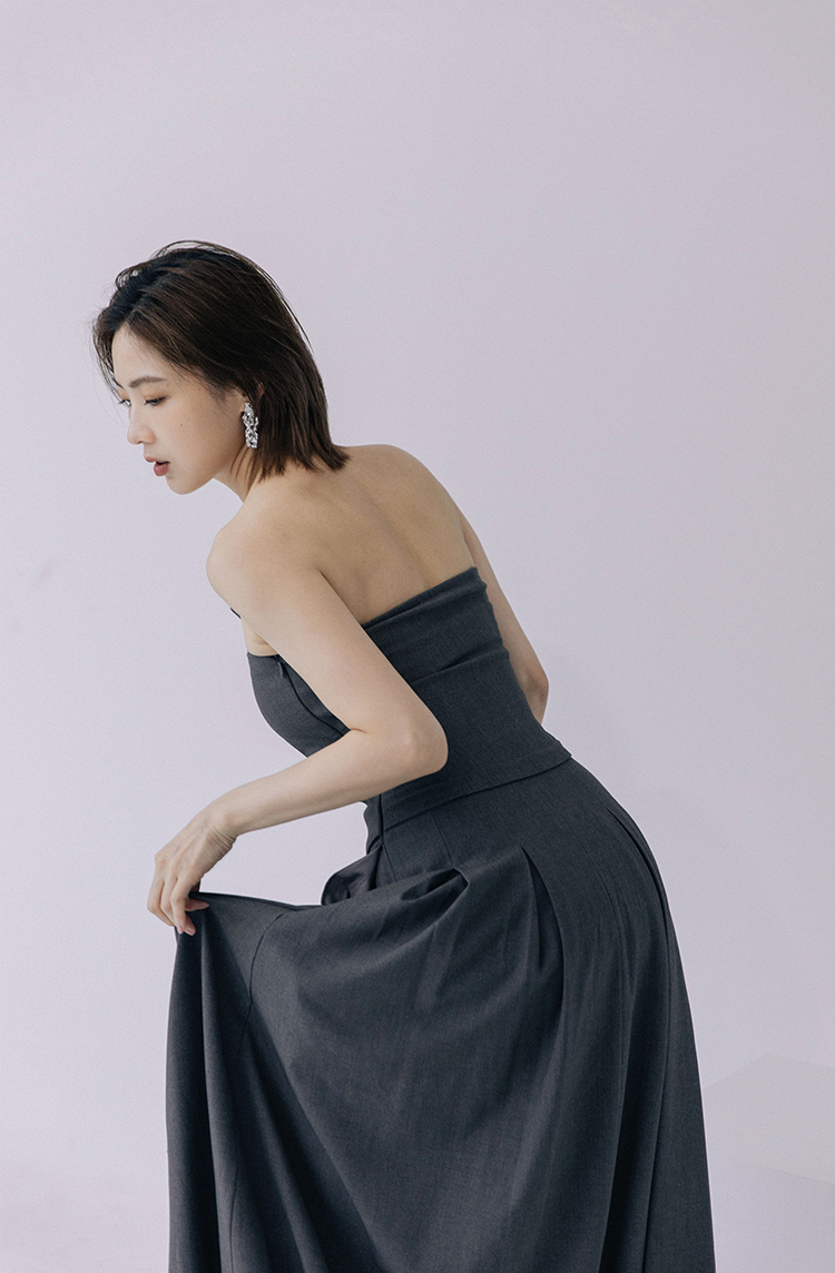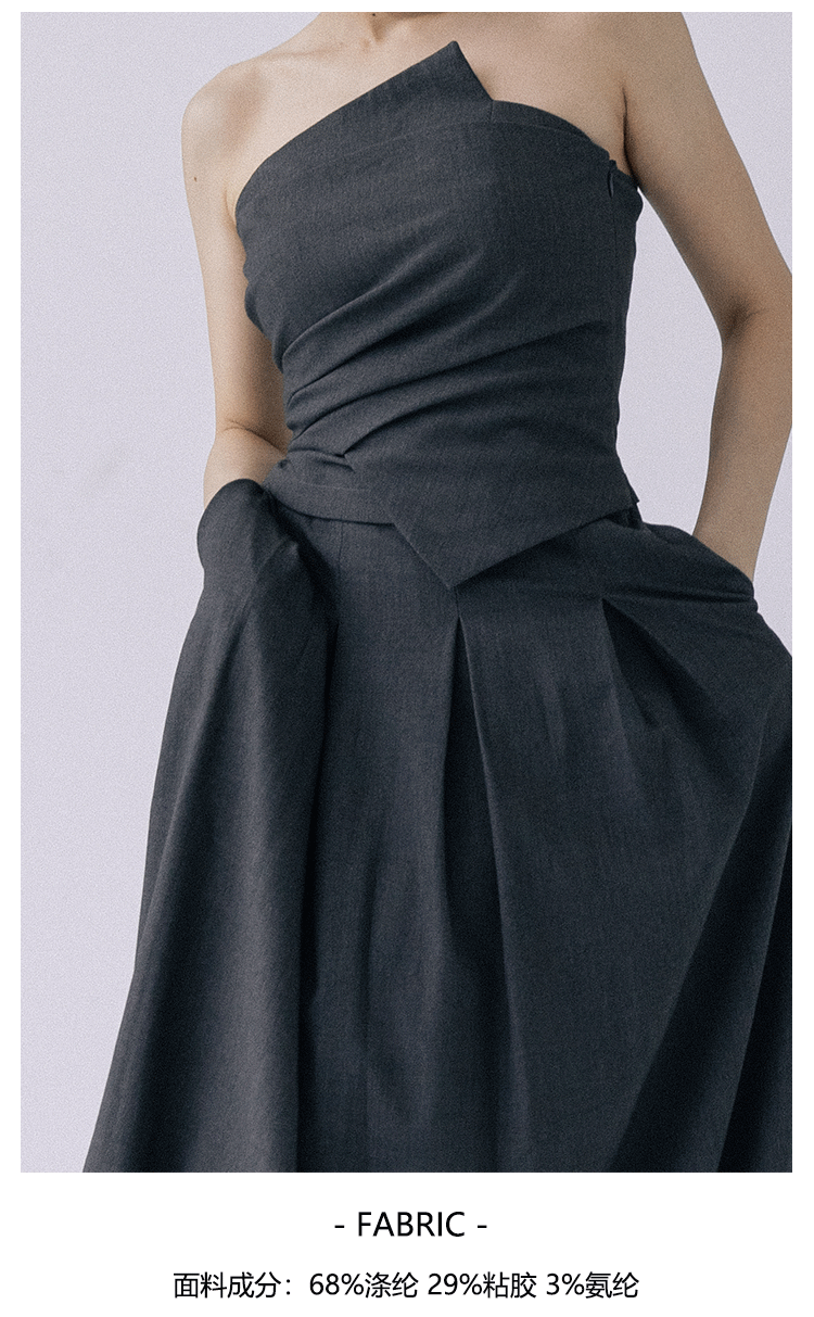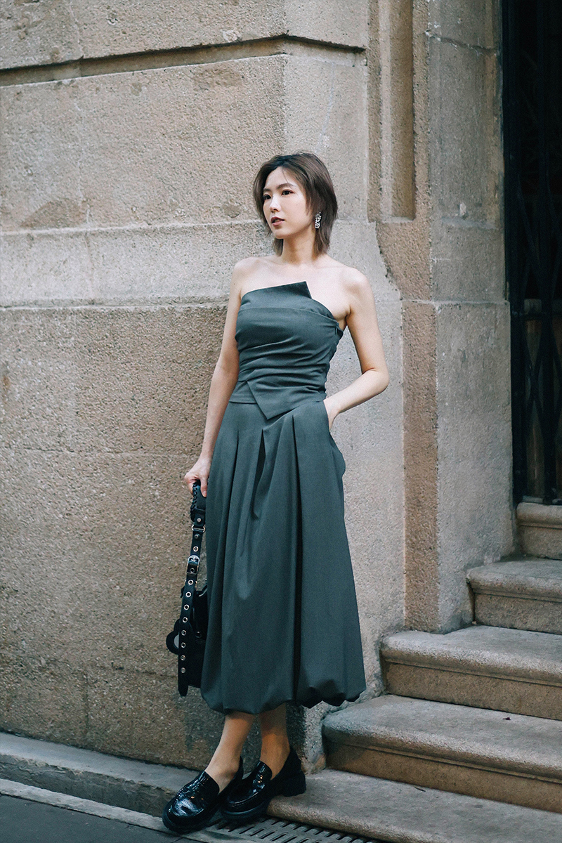 Would You原創立體剪裁抹胸花苞長版洋裝 設計感抹胸裙