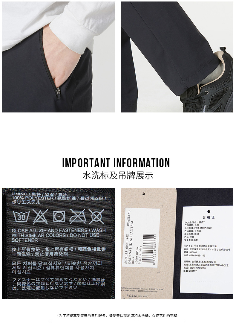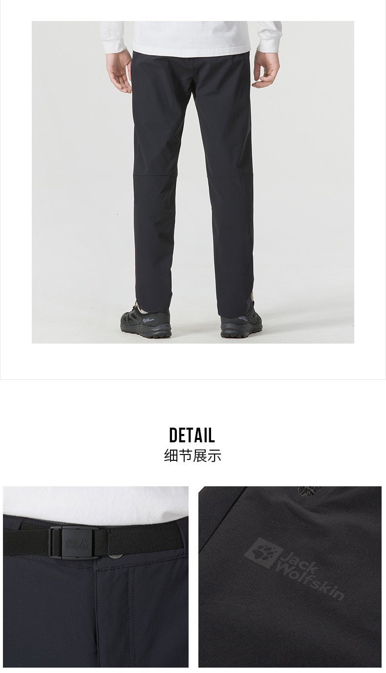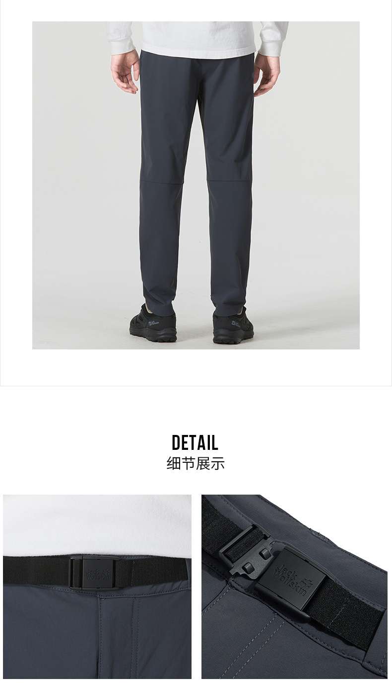 JackWolfskin狼爪男褲23春夏戶外防風舒適直筒帶腰帶長褲5521033