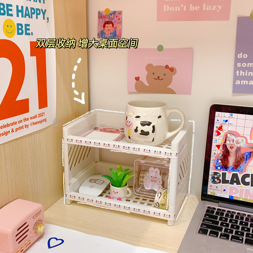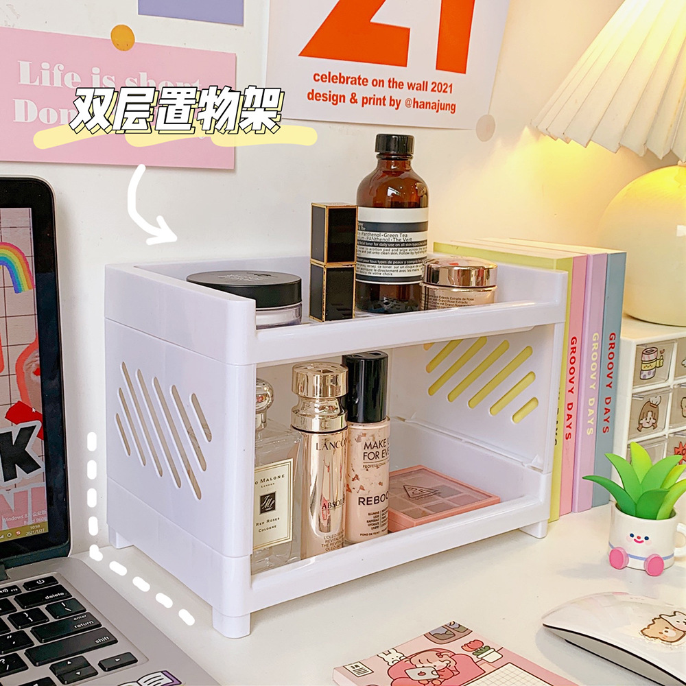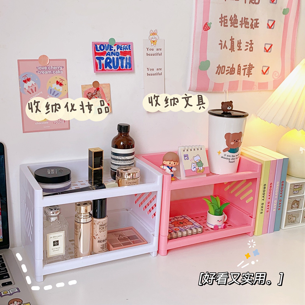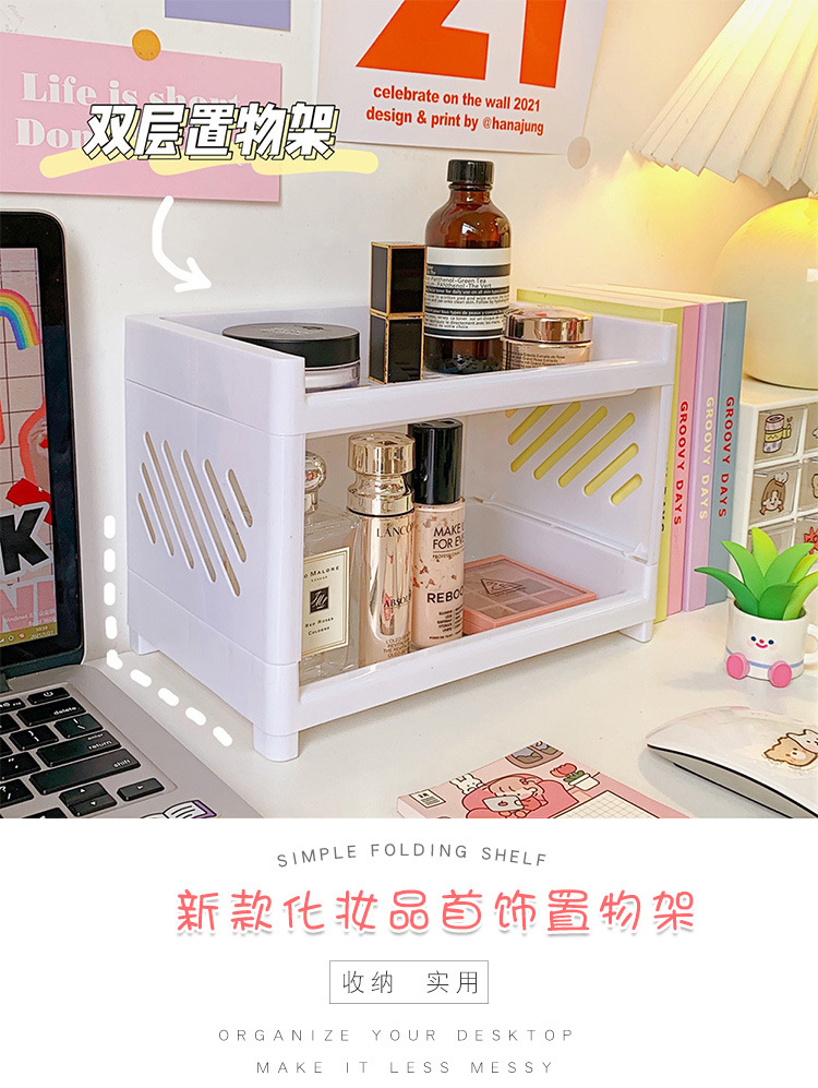 新ins化妆品首饰双层折叠收纳架简约家用桌面浴室置物架收纳架子