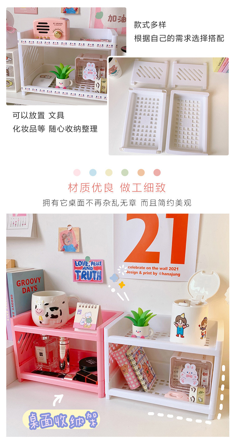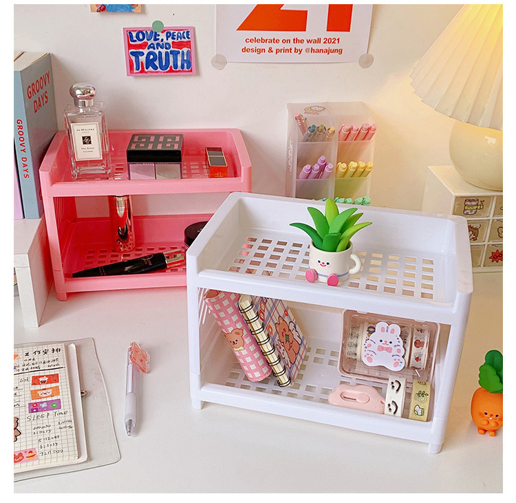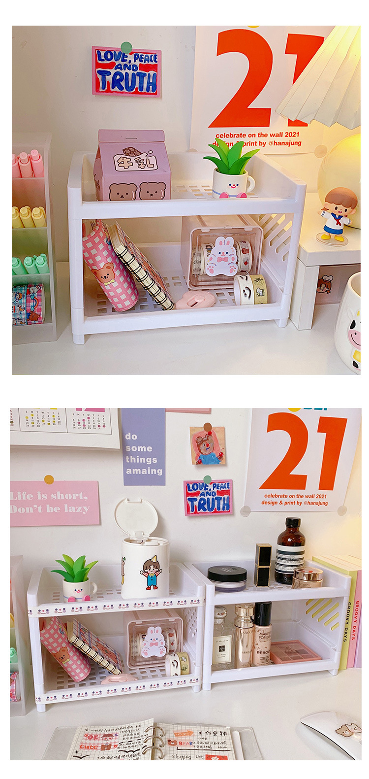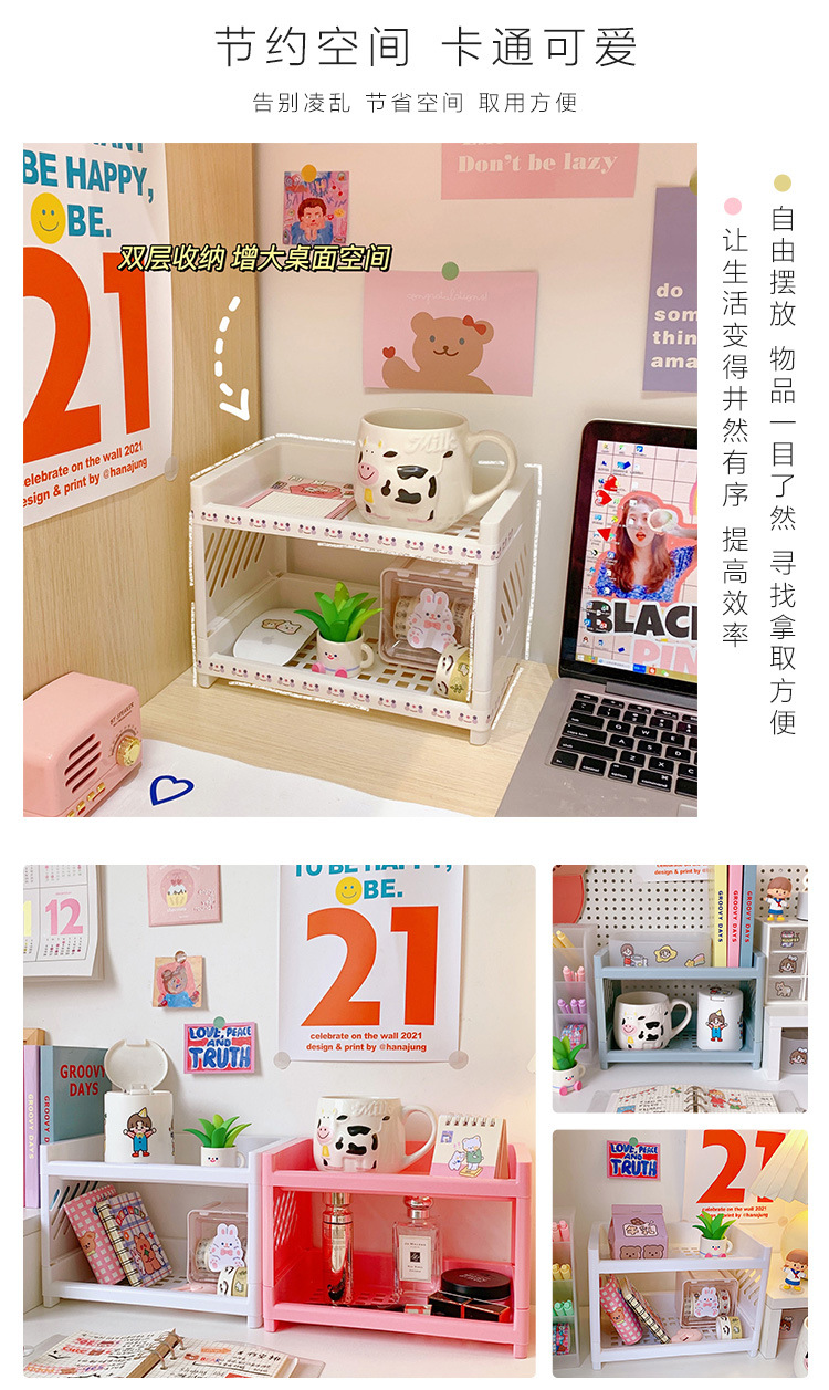 新ins化妆品首饰双层折叠收纳架简约家用桌面浴室置物架收纳架子