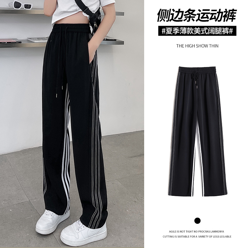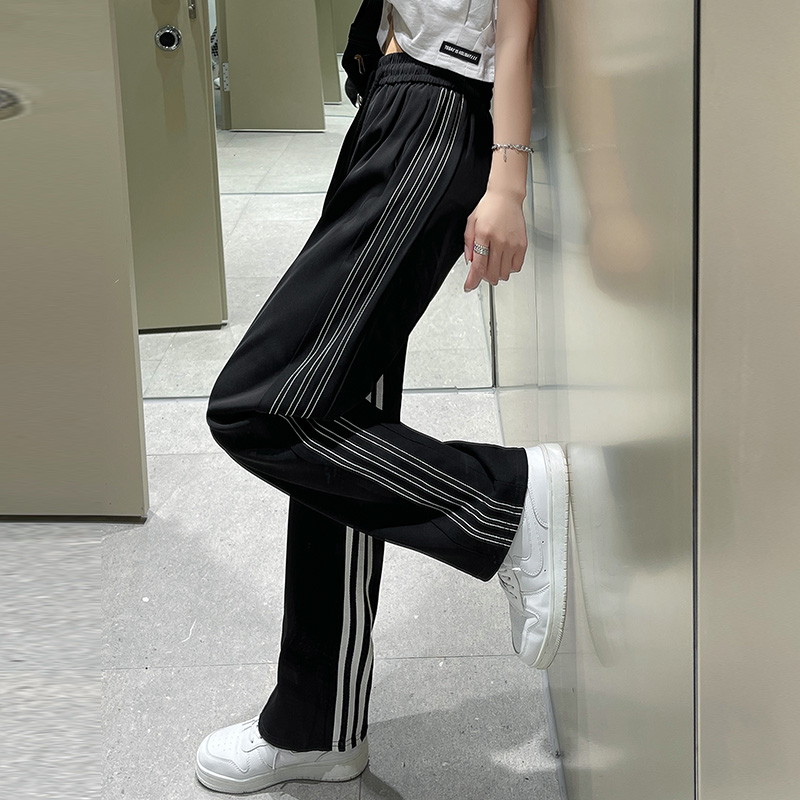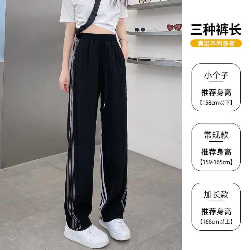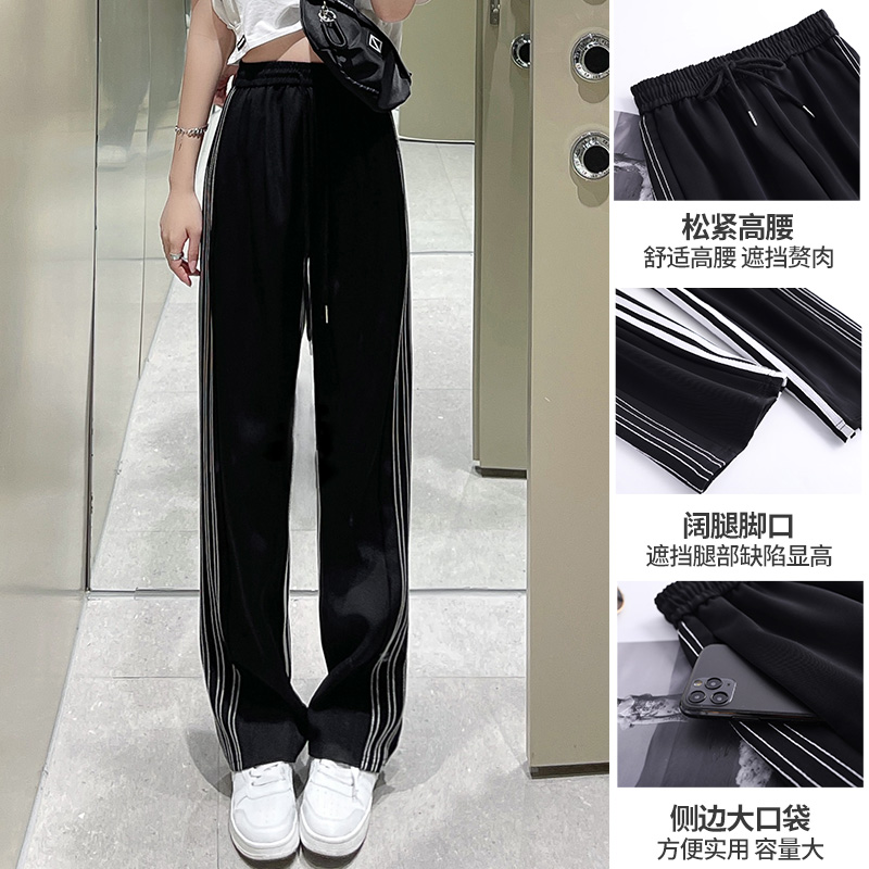 美式運動褲女潮ins春秋2023新款休閒厚棉褲高腰垂感直筒西裝闊腿褲