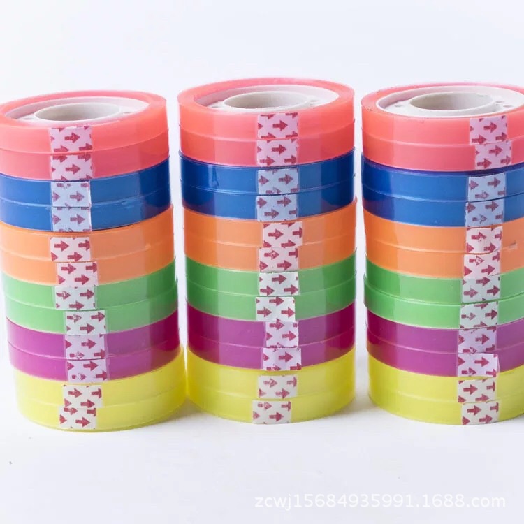 彩虹文具胶 彩色小胶带学生手工胶条DIY透明胶带办公文具胶带批发